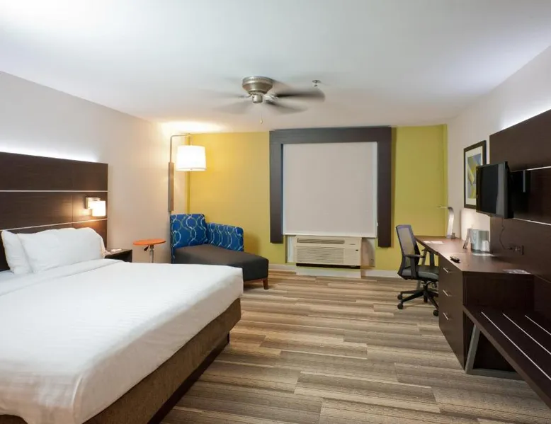 Comfortable Accommodations: Holiday Inn Express Hotel & Suites Scott-Lafayette West by IHG in Scott offers air-conditioned rooms with private bathrooms, tea and coffee makers, hairdryers, refrigerators, work desks, seating areas, microwaves, showers, carpeted floors, and TVs. Essential Facilities: Guests enjoy a sun terrace and free WiFi. The hotel features a 24-hour front desk, free on-site parking, and a variety of amenities to enhance the stay. Convenient Location: Located 9.3 mi from Lafayette Airport, the hotel is near attractions such as Cajun Field Football Stadium (5 mi), M.L. Tigue Moore Field (5 mi), and Cajundome Convention Center (5.6 mi). Highly rated for its attentive staff, convenient location, and room cleanliness. The unit has 1 bed.