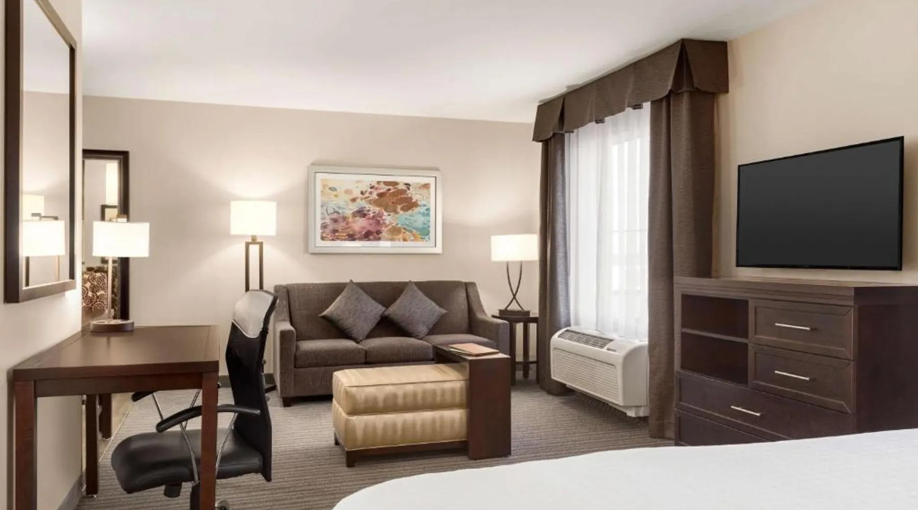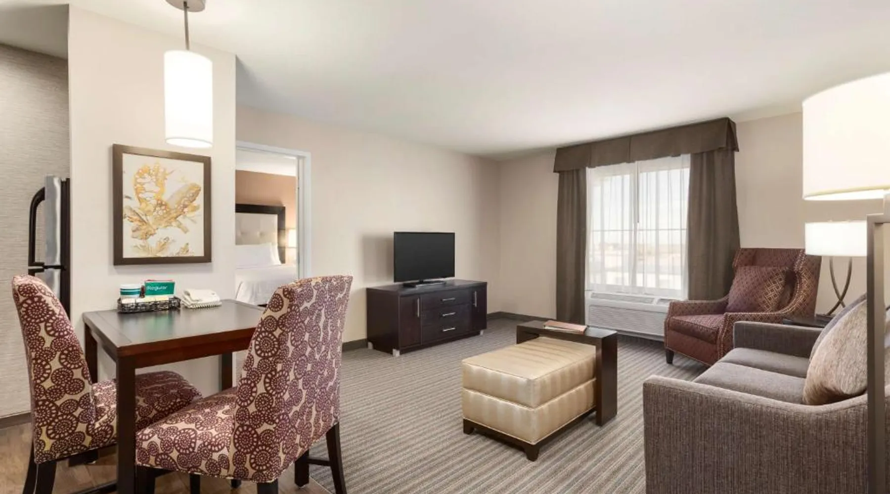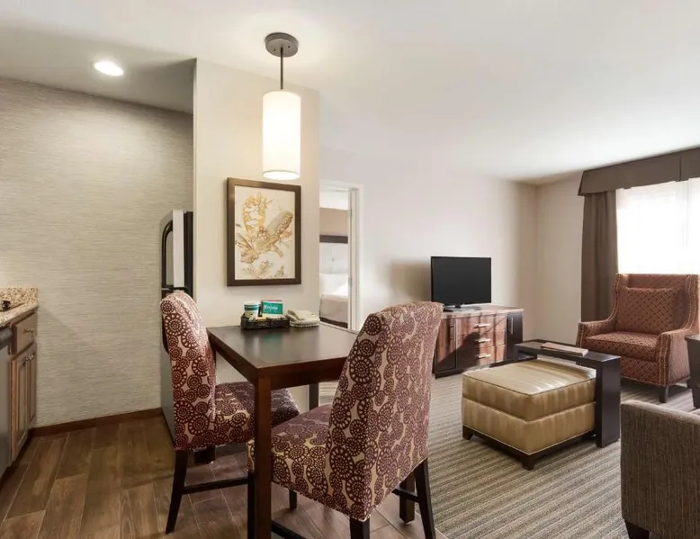 Comfortable Accommodations: Homewood Suites by Hilton Fargo in Fargo offers spacious rooms with air-conditioning, kitchen facilities, and free WiFi. Guests appreciate the room comfort, cleanliness, and size. Leisure Facilities: The hotel features a saltwater swimming pool, indoor pool, fitness center, and hot tub. Additional amenities include a 24-hour front desk, business area, and outdoor seating. Convenient Services: Free on-site parking, a free airport shuttle, and a daily housekeeping service enhance the stay. The property also offers a child-friendly buffet and luggage storage. Local Attractions: Located a few steps from Hector International Airport, the hotel is a 6-minute walk from FargoDome and 2.8 mi from Fargo Civic Center. An ice-skating rink is nearby. Guests can make meals in the kitchen that features a stovetop, a refrigerator, a dishwasher and kitchenware. The spacious suite features air conditioning, a tea and coffee maker, a seating area, heating, as well as a flat-screen TV with cable channels. The unit has 2 beds.