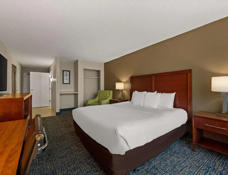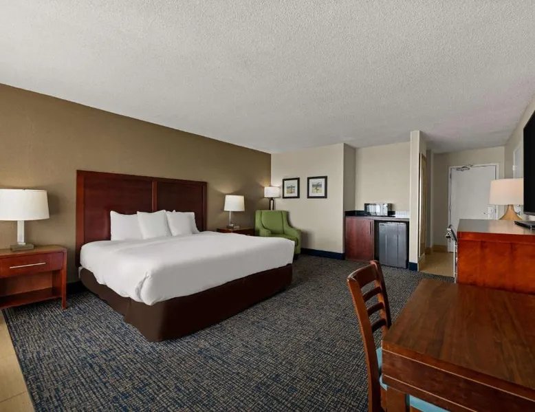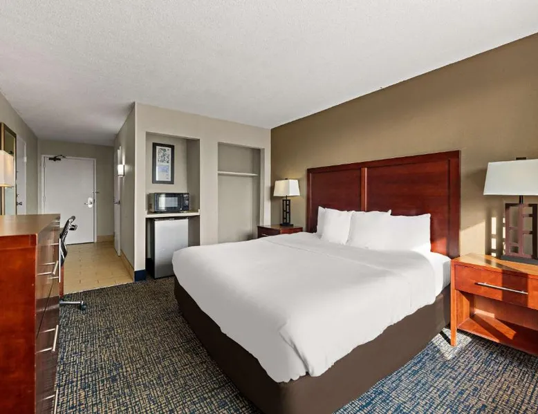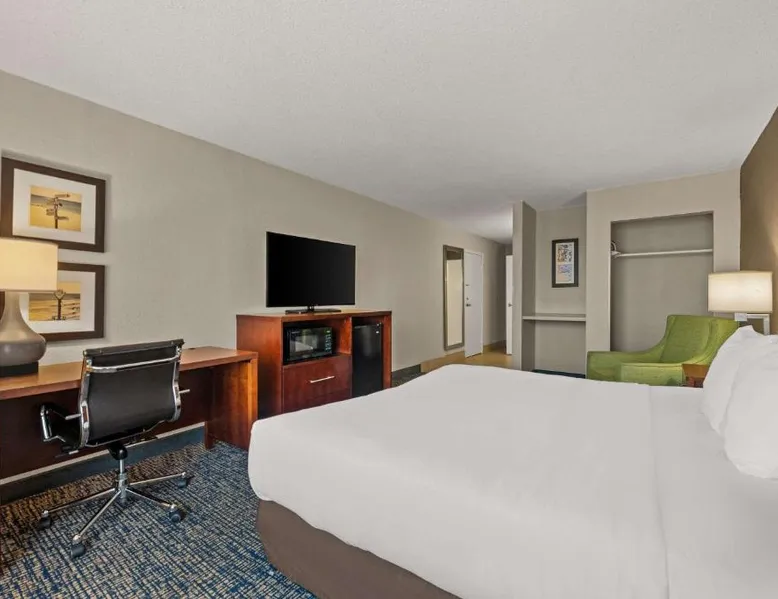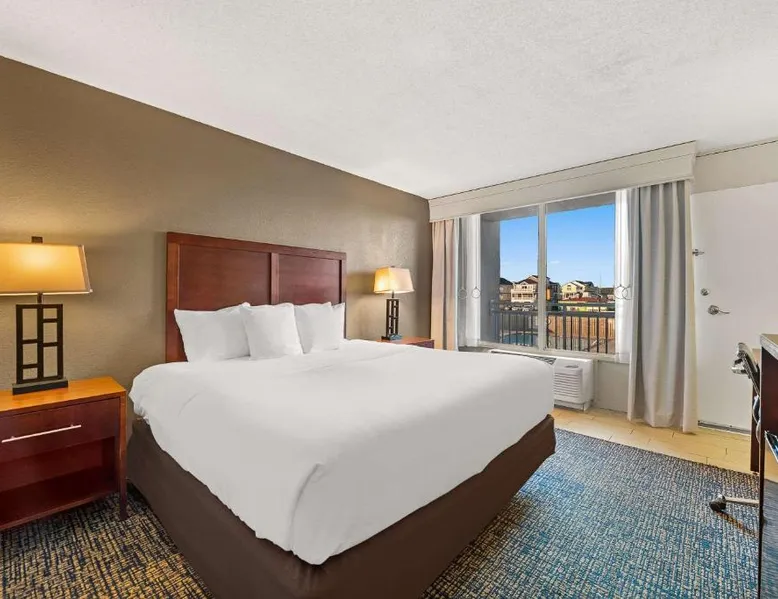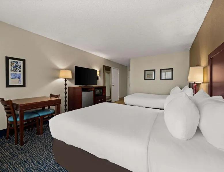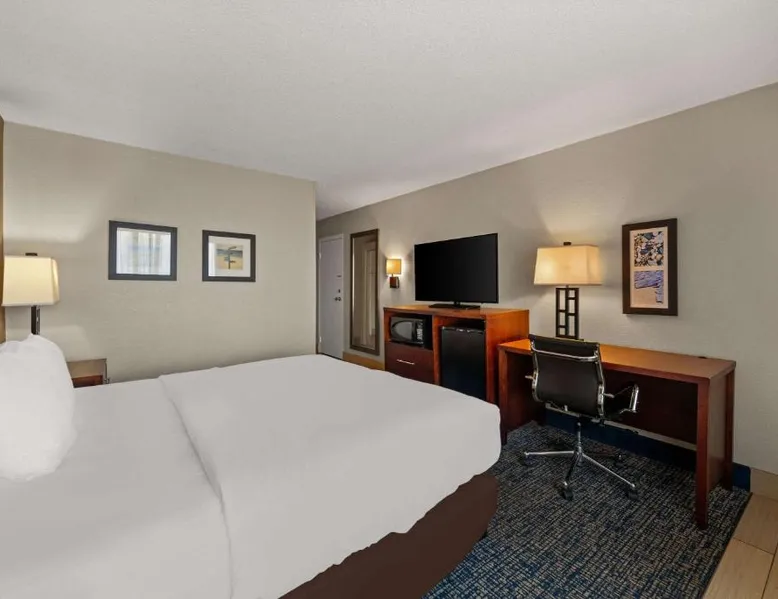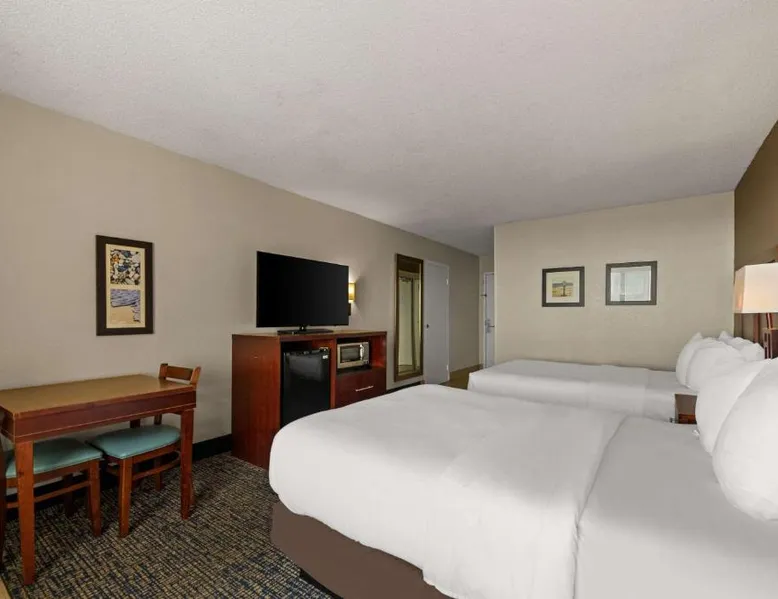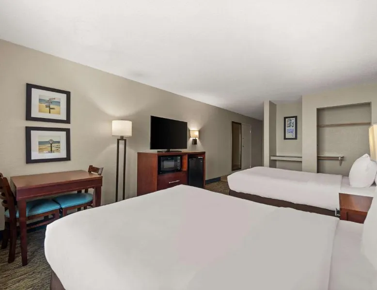Comfort Inn on the Ocean is located in Kill Devil Hills and provides access to the beach and the Atlantic Ocean. The hotel features an outdoor pool. Rooms at the Comfort Inn on the Ocean are equipped with free WiFi and a cable TV. An in-room coffee maker, a microwave and a refrigerator are included. Some rooms offer a private balcony or patio overlooking the ocean. A breakfast buffet, including hot waffles, is served at the Comfort Inn each morning. An exercise room is open to all guests and a business center provides a public computer and printer. The Comfort Inn on the Ocean is 13 miles from Roanoke Sound and less than 3 miles from the Wright Brothers National Memorial Park. This room features a microwave, refrigerator, and tea- and coffee-making facilities.