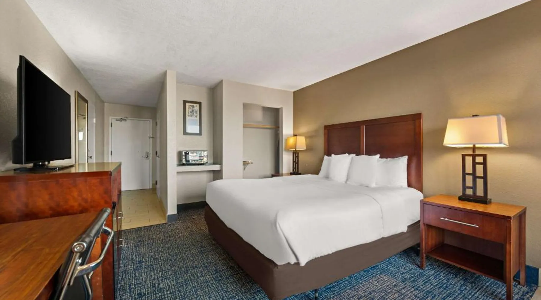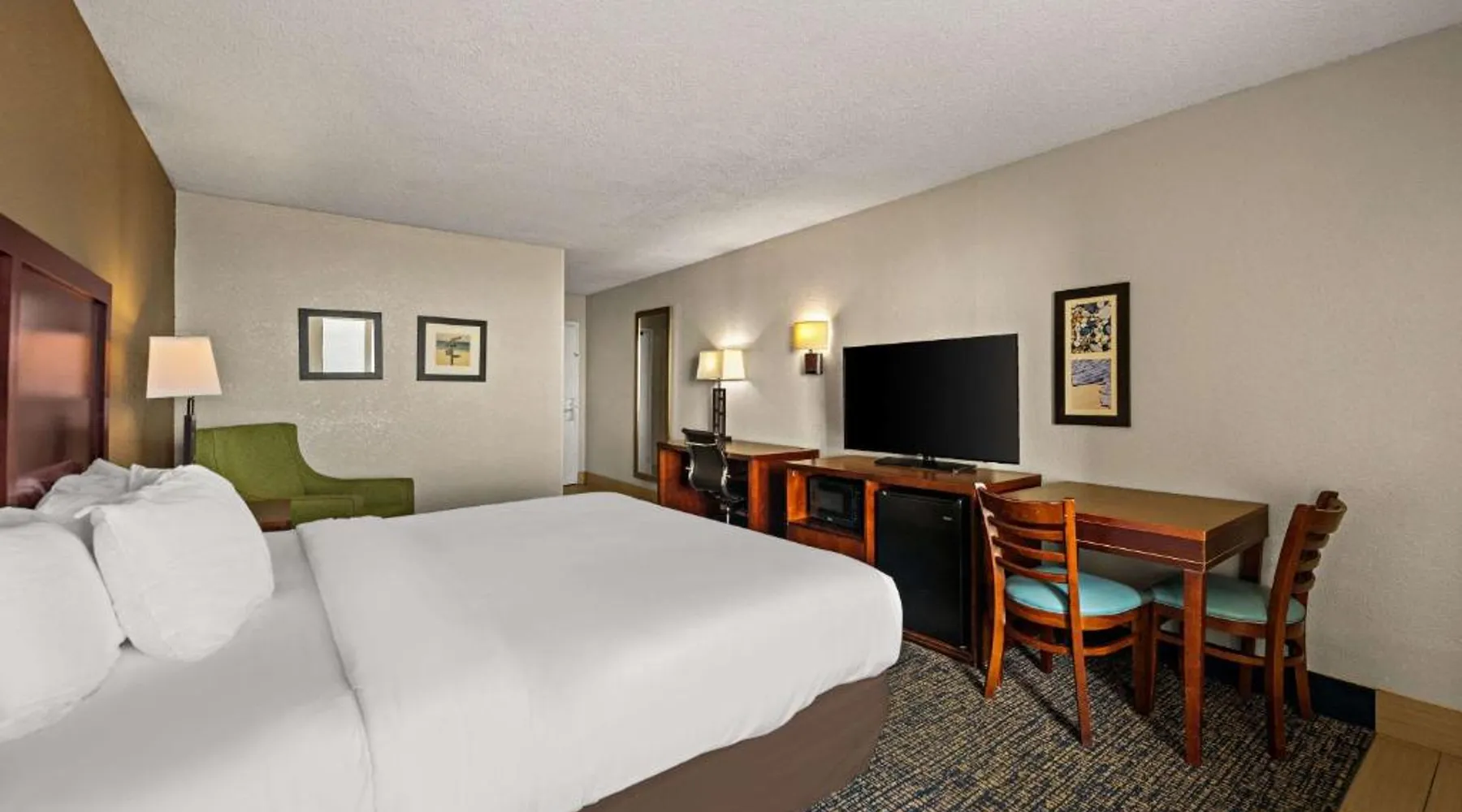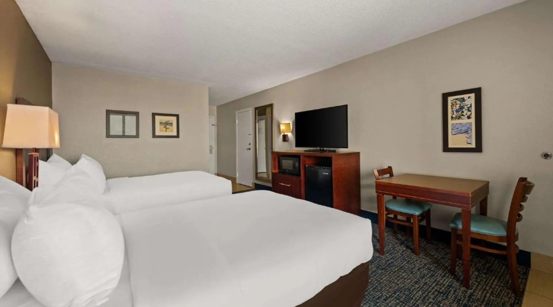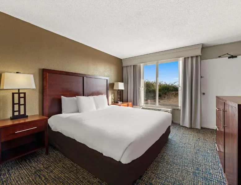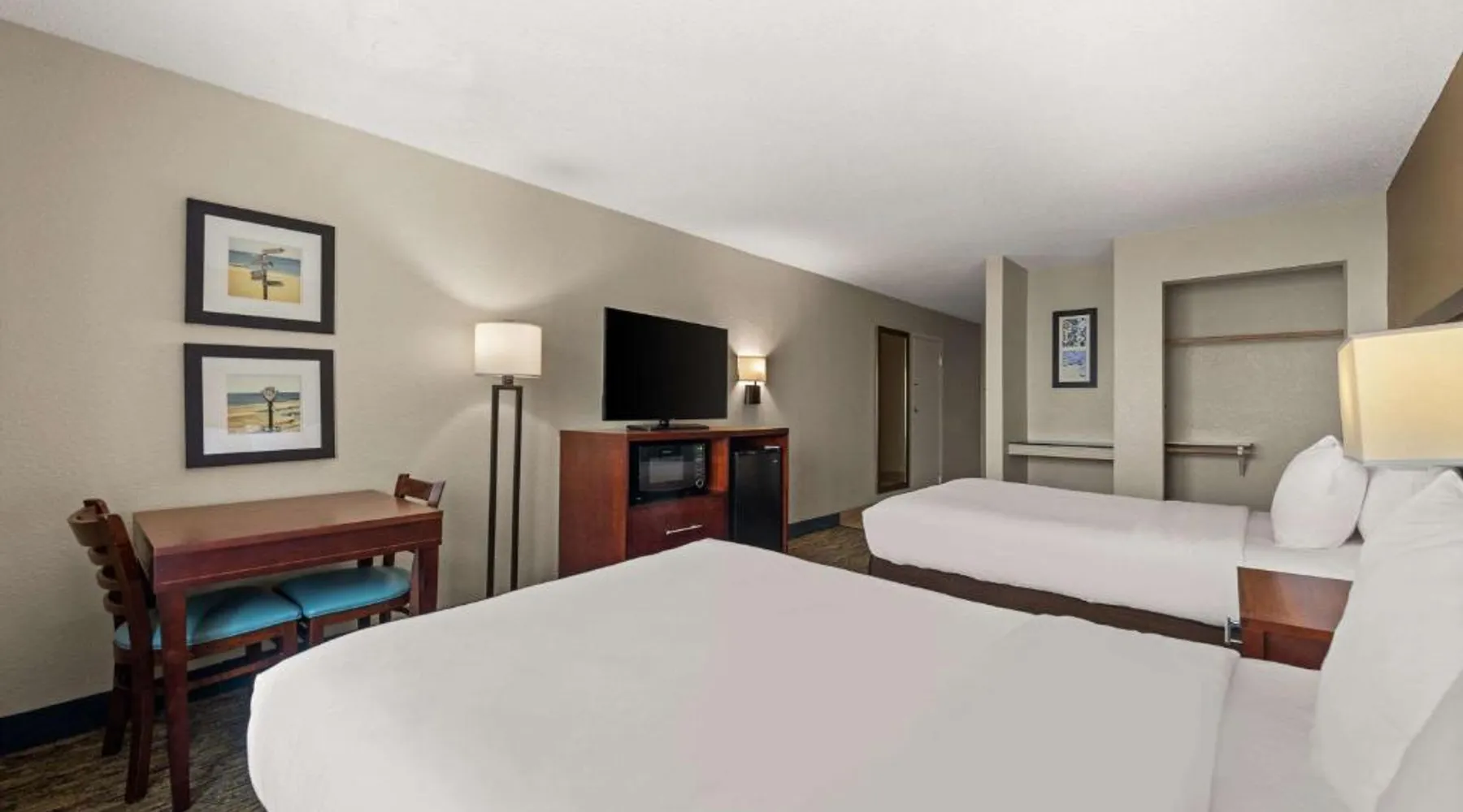Comfort Inn on the Ocean is located in Kill Devil Hills and provides access to the beach and the Atlantic Ocean. The hotel features an outdoor pool. Rooms at the Comfort Inn on the Ocean are equipped with free WiFi and a cable TV. An in-room coffee maker, a microwave and a refrigerator are included. Some rooms offer a private balcony or patio overlooking the ocean. A breakfast buffet, including hot waffles, is served at the Comfort Inn each morning. An exercise room is open to all guests and a business center provides a public computer and printer. The Comfort Inn on the Ocean is 13 miles from Roanoke Sound and less than 3 miles from the Wright Brothers National Memorial Park. This room features a microwave, refrigerator, and tea- and coffee-making facilities.