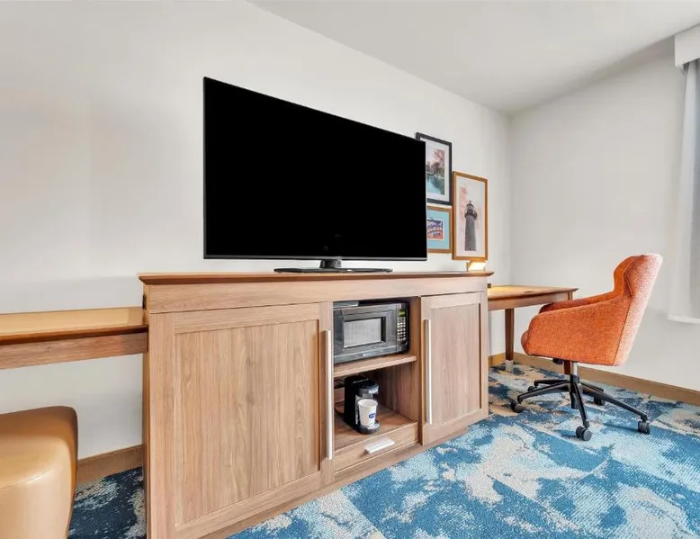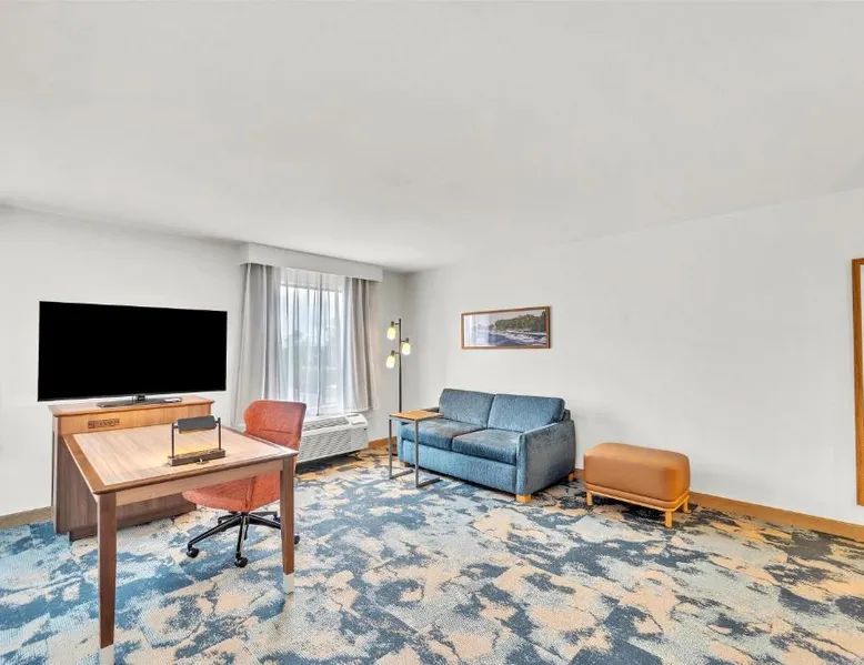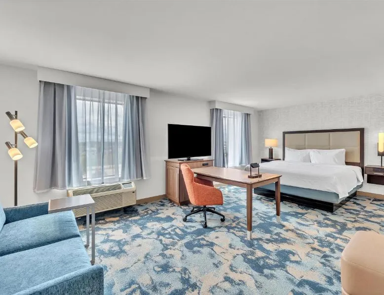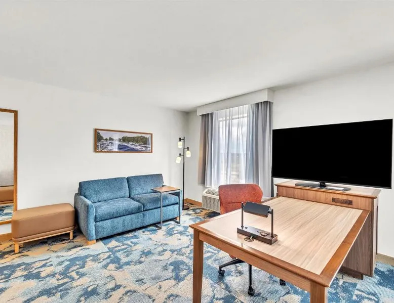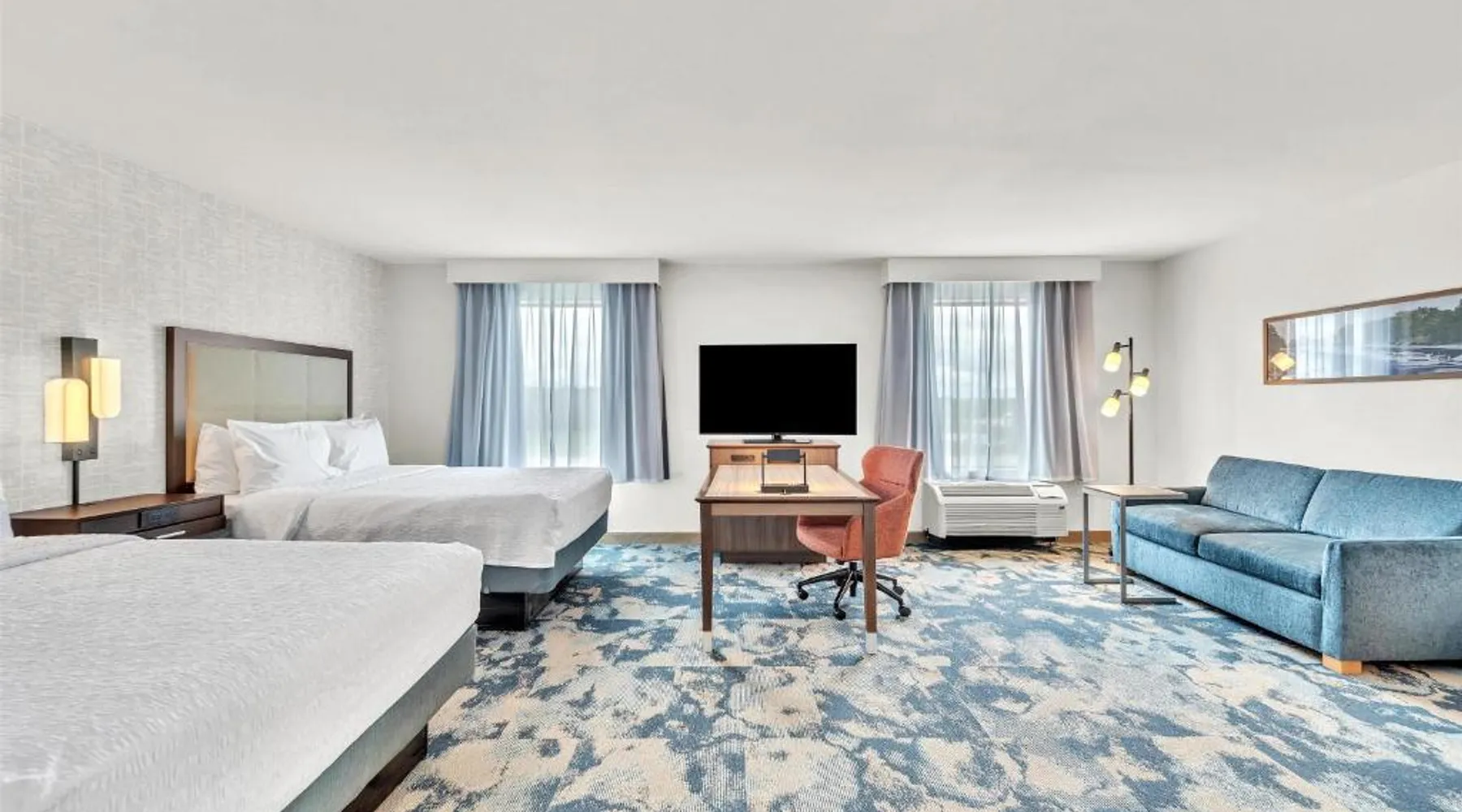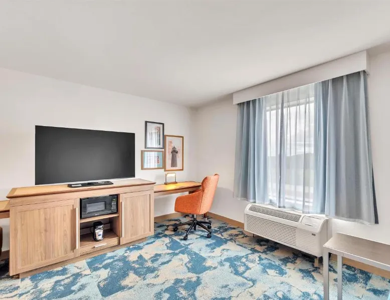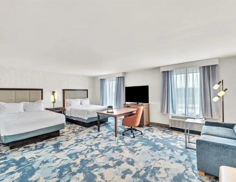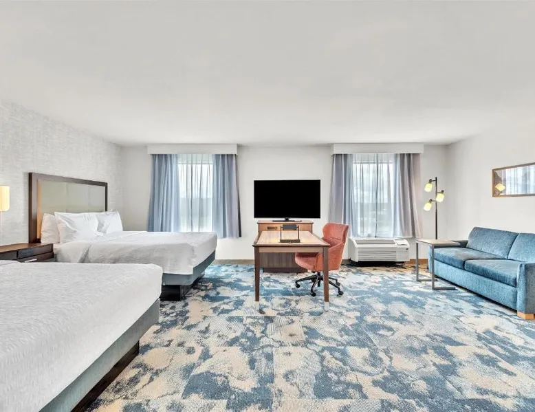 Comfortable Accommodations: Rooms feature air-conditioning, free WiFi, and amenities such as a tea and coffee maker, hairdryer, refrigerator, microwave, and TV. Additional comforts include sofa beds, work desks, and seating areas. Facilities and Services: Guests can enjoy a fitness center, indoor swimming pool, and free on-site private parking. The hotel offers a 24-hour front desk, business area, laundry service, bicycle parking, and express check-in and check-out. Dining Options: A child-friendly buffet provides American breakfast, while the property also offers a variety of dining options. Location and Attractions: Located in Kenosha, the hotel is 27 mi from Milwaukee Mitchell International Airport. Nearby attractions include Six Flags Great America (16 mi), Dinosaur Discovery Museum (8.1 mi), and Carthage College (11 mi). Guests appreciate the room cleanliness, convenient location, and breakfast provided by the property. This studio has a tea and coffee maker, a seating area and a flat-screen TV. The unit has 3 beds.