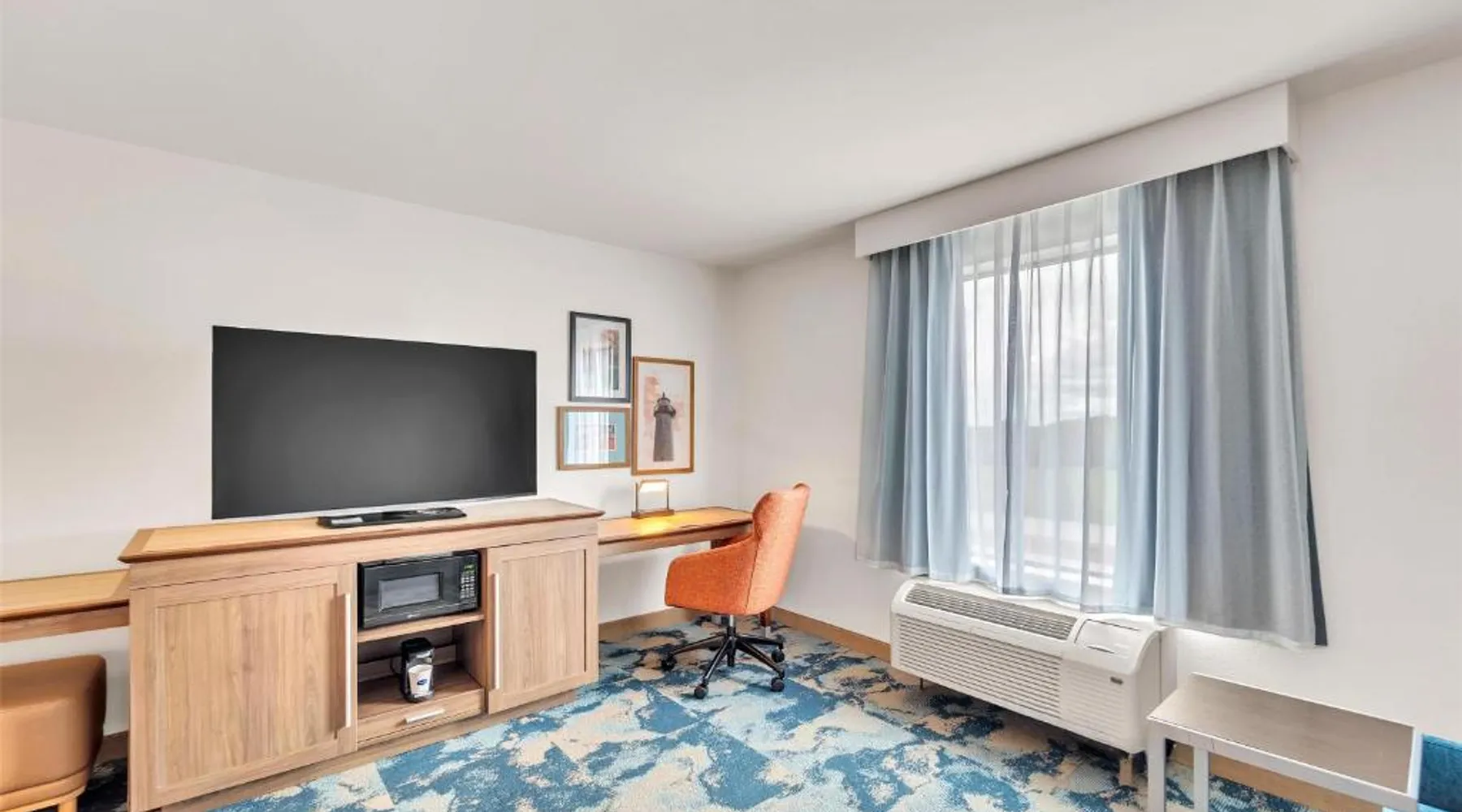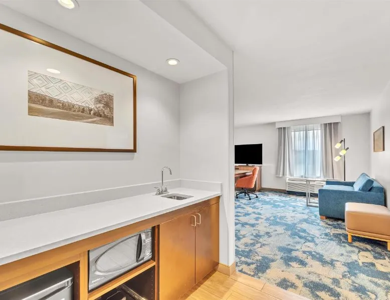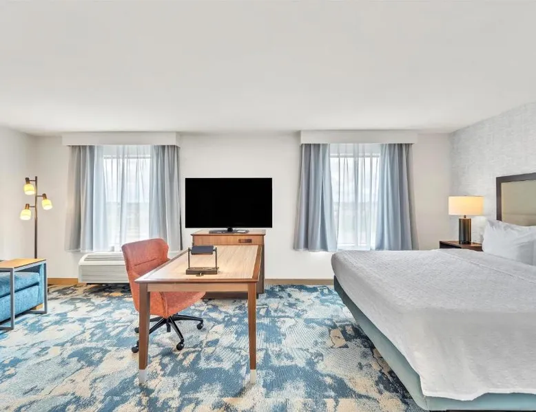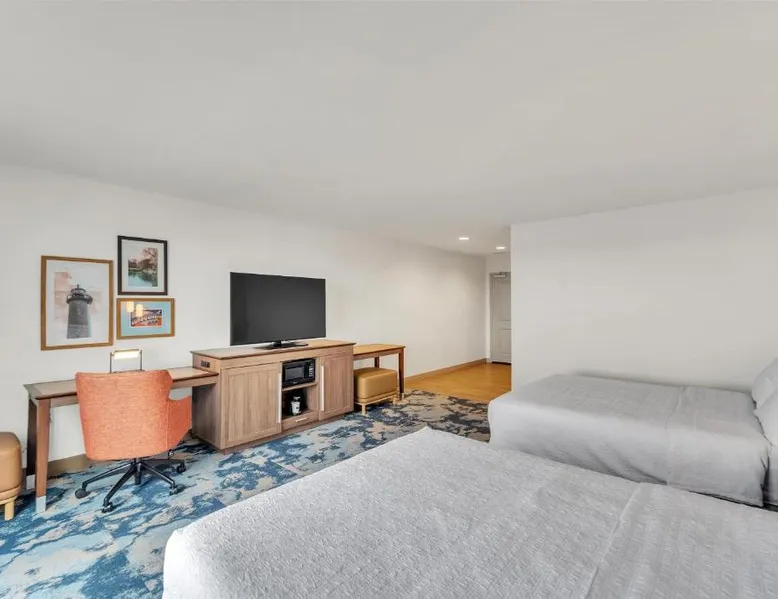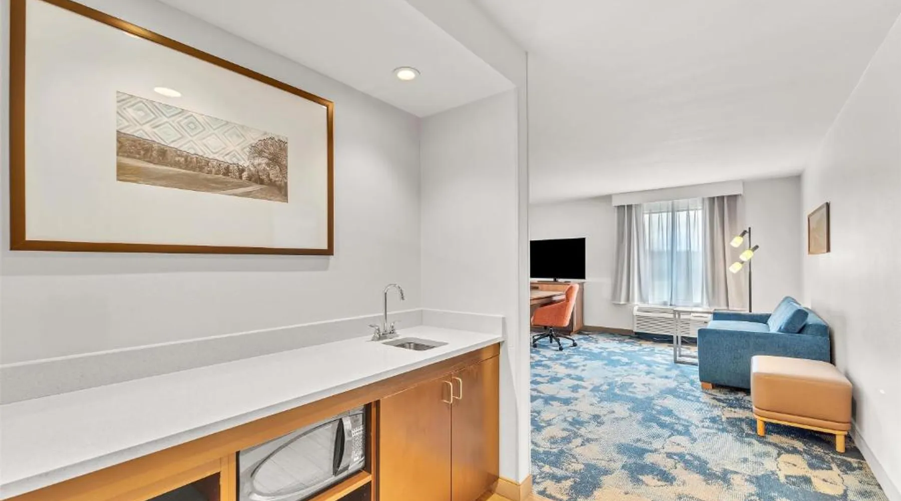 Comfortable Accommodations: Rooms feature air-conditioning, free WiFi, and amenities such as a tea and coffee maker, hairdryer, refrigerator, microwave, and TV. Additional comforts include sofa beds, work desks, and seating areas. Facilities and Services: Guests can enjoy a fitness center, indoor swimming pool, and free on-site private parking. The hotel offers a 24-hour front desk, business area, laundry service, bicycle parking, and express check-in and check-out. Dining Options: A child-friendly buffet provides American breakfast, while the property also offers a variety of dining options. Location and Attractions: Located in Kenosha, the hotel is 27 mi from Milwaukee Mitchell International Airport. Nearby attractions include Six Flags Great America (16 mi), Dinosaur Discovery Museum (8.1 mi), and Carthage College (11 mi). Guests appreciate the room cleanliness, convenient location, and breakfast provided by the property. This studio has a tea and coffee maker, a seating area and a flat-screen TV. The unit has 3 beds.