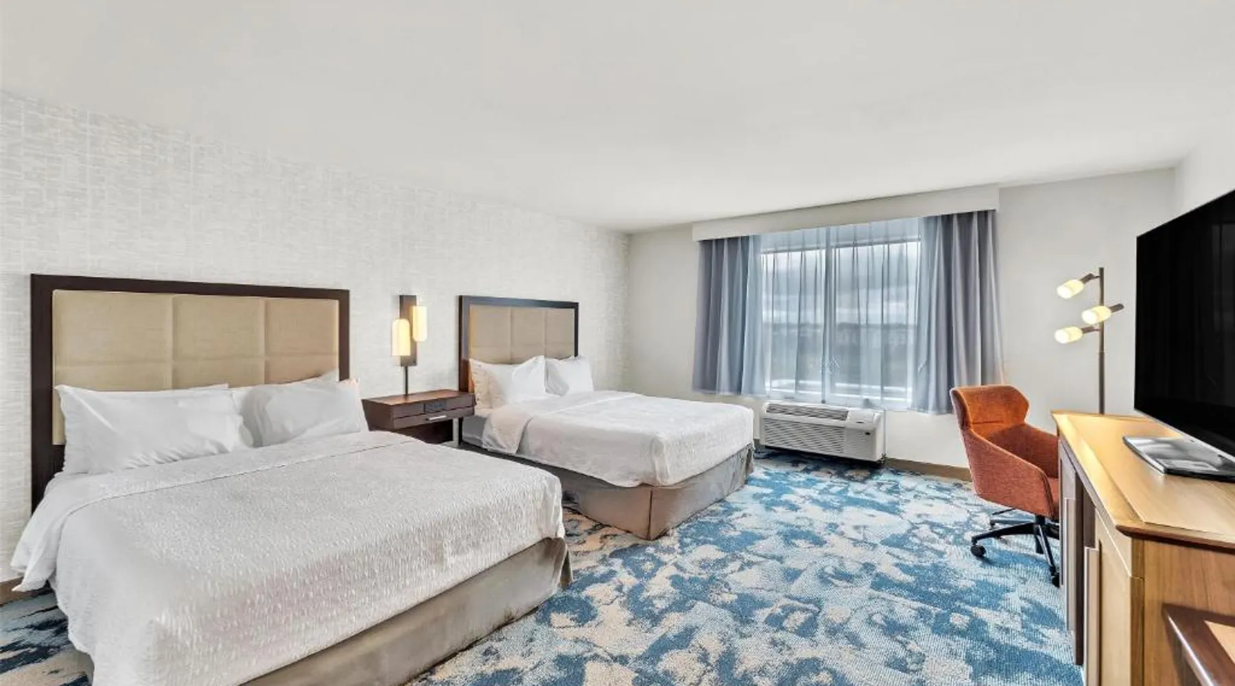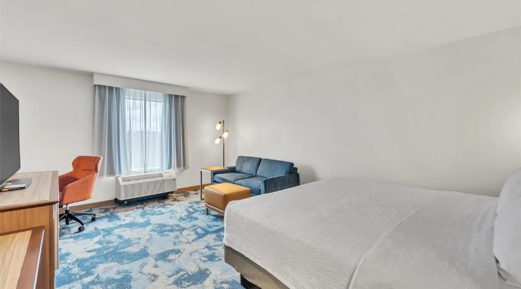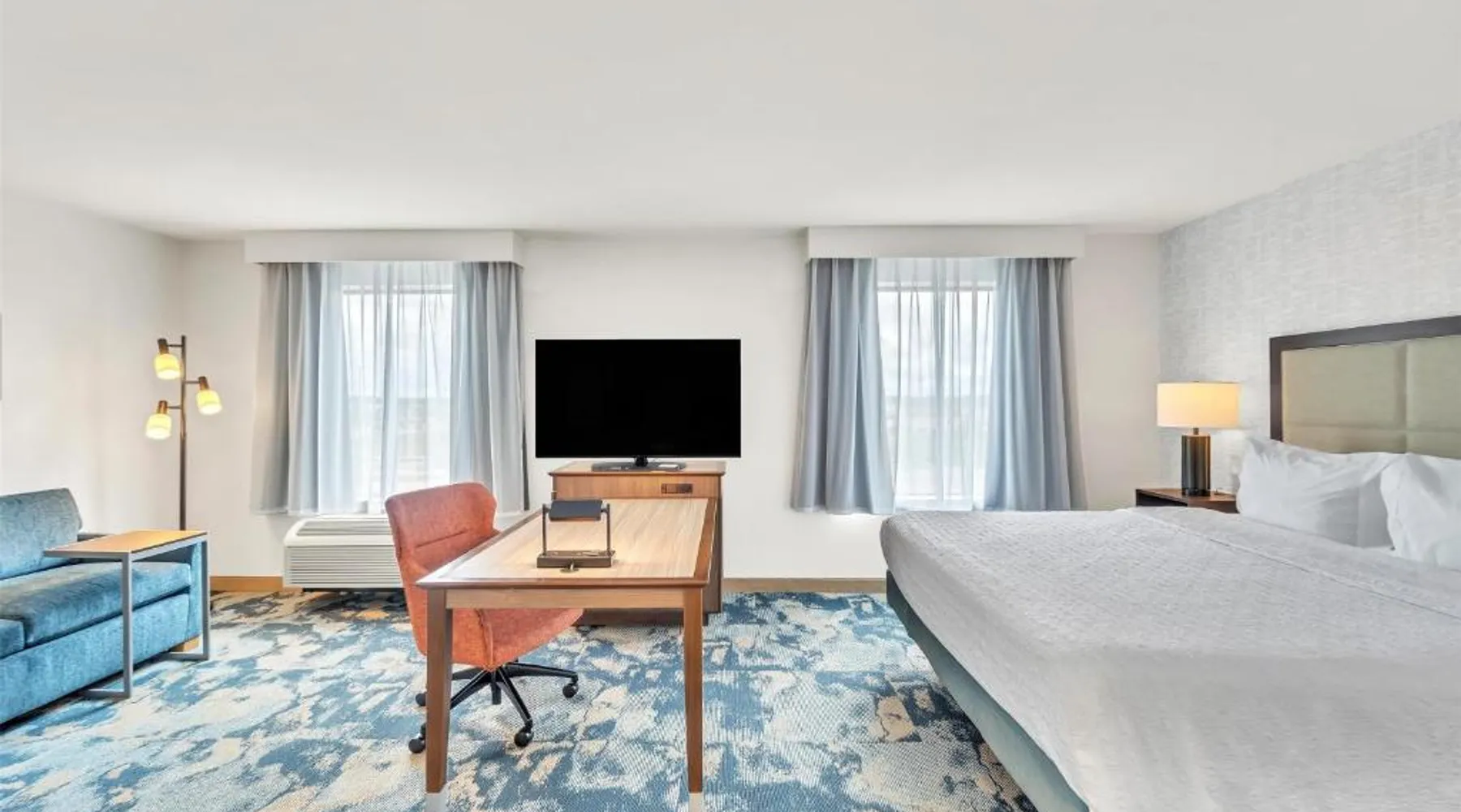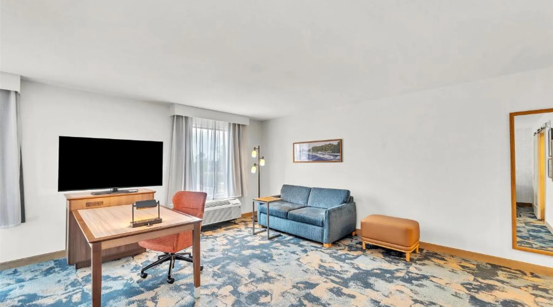 Comfortable Accommodations: Rooms feature air-conditioning, free WiFi, and amenities such as a tea and coffee maker, hairdryer, refrigerator, microwave, and TV. Additional comforts include sofa beds, work desks, and seating areas. Facilities and Services: Guests can enjoy a fitness center, indoor swimming pool, and free on-site private parking. The hotel offers a 24-hour front desk, business area, laundry service, bicycle parking, and express check-in and check-out. Dining Options: A child-friendly buffet provides American breakfast, while the property also offers a variety of dining options. Location and Attractions: Located in Kenosha, the hotel is 27 mi from Milwaukee Mitchell International Airport. Nearby attractions include Six Flags Great America (16 mi), Dinosaur Discovery Museum (8.1 mi), and Carthage College (11 mi). Guests appreciate the room cleanliness, convenient location, and breakfast provided by the property. This studio has a tea and coffee maker, a seating area and a flat-screen TV. The unit has 3 beds.