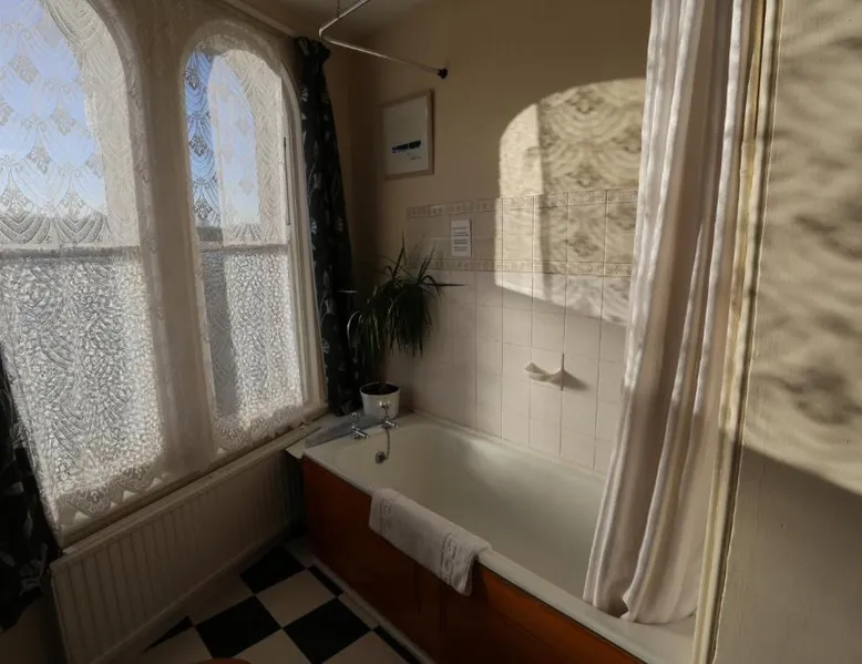 Historic Setting: Bridge Guest House in Tiverton is housed in a historic building, offering a unique and charming environment. Comfortable Accommodations: Rooms feature carpeted floors, private bathrooms with walk-in showers, and river views. Additional amenities include free WiFi, streaming services, and a work desk. Convenient Facilities: Guests benefit from free on-site private parking, housekeeping service, and a seating area with a sofa. Local Attractions: Tiverton Castle is a 5-minute walk away, while Exeter International Airport is 15 mi distant. Nearby attractions include Dunster Castle (27 mi) and Killerton House (11 mi). Guest Satisfaction: Highly rated for its breakfast, friendly host, and convenient location. Offering free toiletries, this double room includes a private bathroom with a walk-in shower and a hairdryer. This double room has a wardrobe, an electric kettle, flat-screen TV with streaming services, as well as chocolate for guests. The unit has 1 bed.