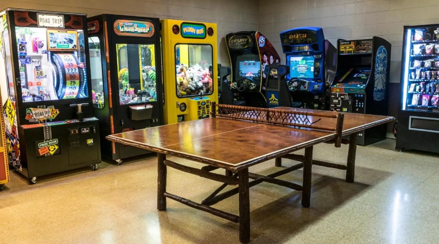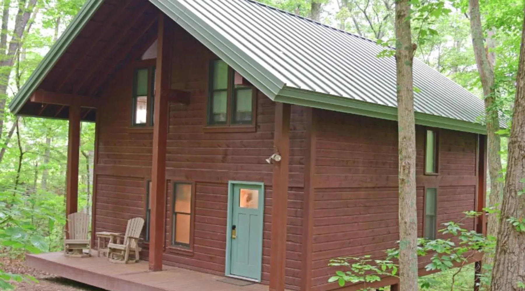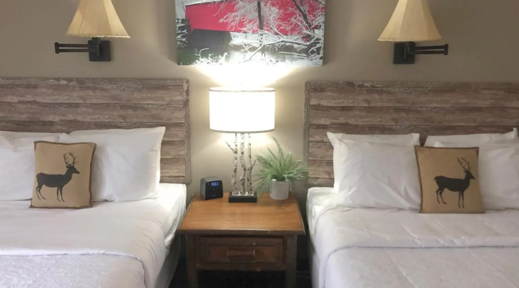 Comfortable Accommodations: Abe Martin Lodge & Cabins in Nashville offers family rooms with air-conditioning, private bathrooms, and modern amenities. Each room includes a balcony or terrace, kitchenette, and free WiFi. Dining and Leisure: The family-friendly restaurant serves American cuisine for lunch and dinner in a traditional ambiance. Guests can relax on the sun terrace, enjoy the garden, or unwind in the hot tub. Additional facilities include a waterpark, outdoor fireplace, and games room. Location and Attractions: Located 50 mi from Indianapolis International Airport, the hotel is near attractions such as Indiana University (16 mi) and Bloomington Memorial Stadium (17 mi). Guests appreciate the proximity to theme parks and swimming pools. The spacious double room features air conditioning, a tea and coffee maker, as well as a private bathroom boasting a bath and a hairdryer. Featuring a terrace, this double room also provides a wardrobe, a carpeted floor and a flat-screen TV. The unit has 2 beds.