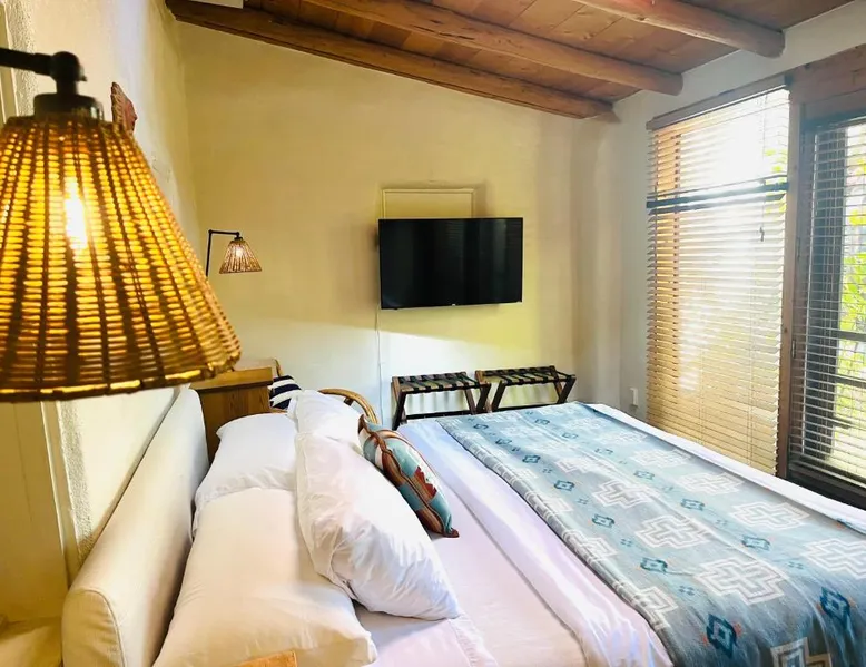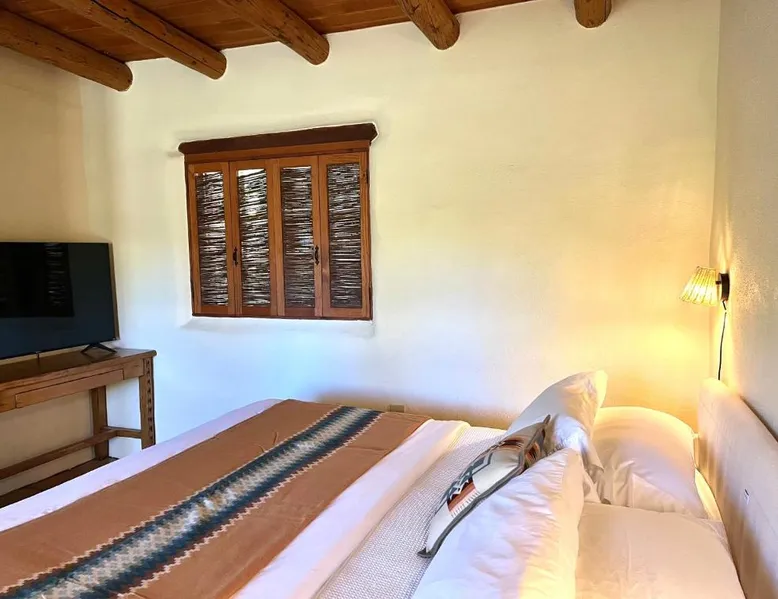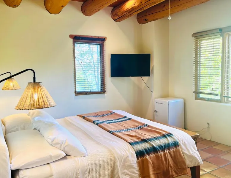 Historic Charm: Hacienda Del Sol Historic B&B in Taos offers a unique stay within a historic building. Guests enjoy a sun terrace, lush garden, and free WiFi throughout the property. Comfortable Accommodations: Rooms feature private bathrooms, garden or inner courtyard views, and modern amenities such as flat-screen TVs and private entrances. Family rooms and interconnected rooms cater to all travelers. Delicious Breakfast: A variety of breakfast options are available, including continental, American, buffet, vegetarian, vegan, and gluten-free. Local specialties, fresh pastries, and warm dishes enhance the morning experience. Leisure Facilities: The property offers a hot tub, lounge, and outdoor seating areas. Additional amenities include a sauna, spa bath, and hiking and cycling activities nearby. Convenient Location: Located 8.7 mi from Taos Regional Airport and 11 mi from Rio Grande Gorge Bridge, the B&B provides easy access to local attractions. Offering free toiletries and bathrobes, this double room includes a private bathroom with a bath, a shower and a hairdryer. The double room offers a private entrance, a tea and coffee maker, a seating area, a flat-screen TV with streaming services, as well as garden views. The unit has 1 bed.