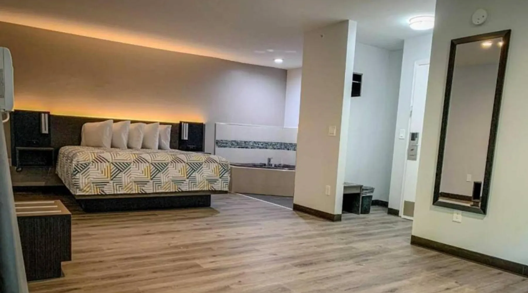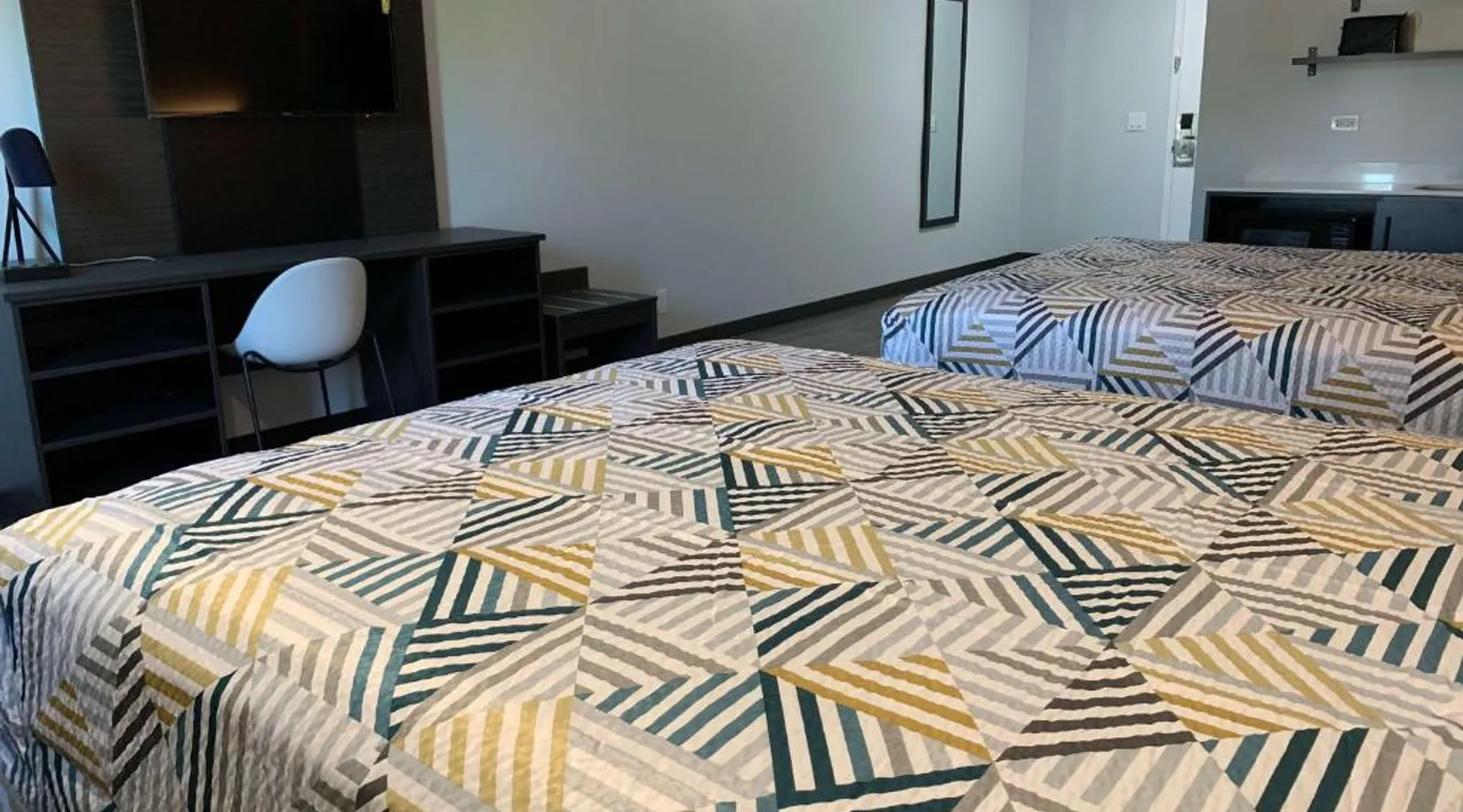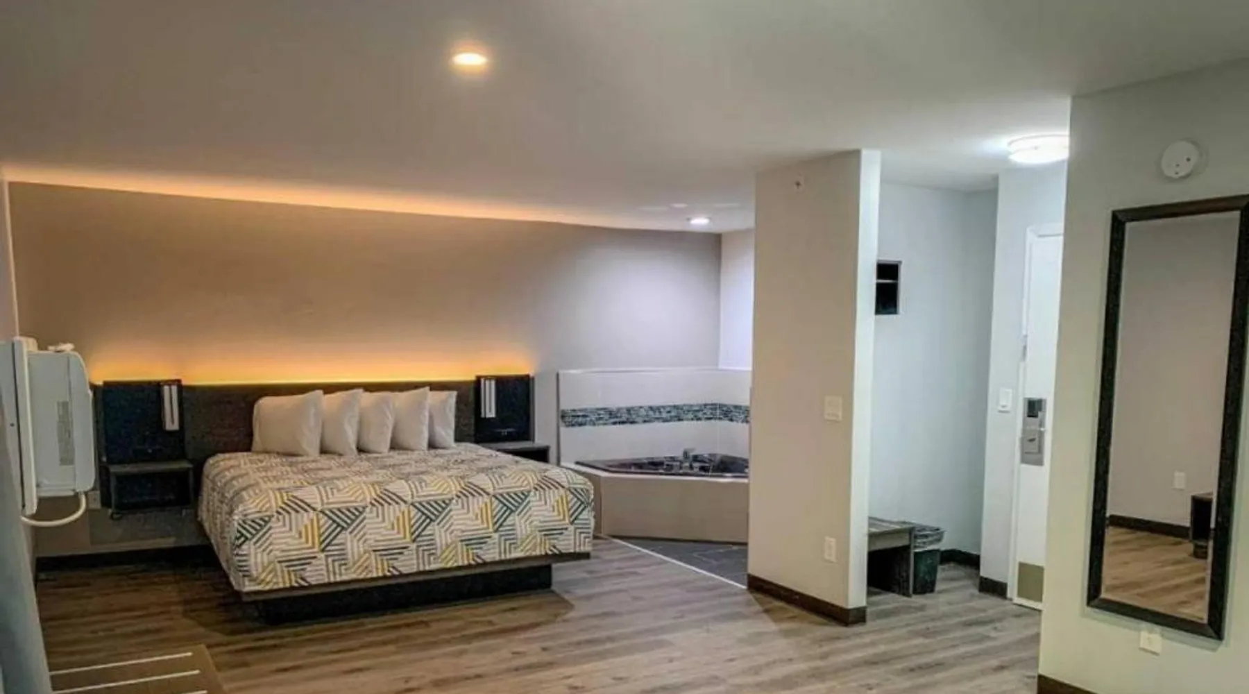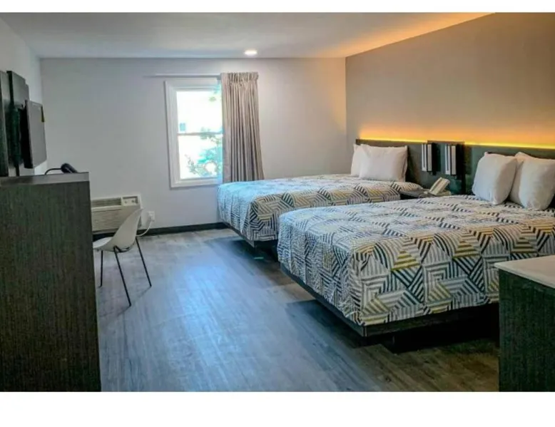 Comfortable Accommodations: Motel 6 Rockford, IL offers 4-star hotel rooms with air-conditioning, TV, and free WiFi in public areas. Each room includes a bath with a walk-in shower, refrigerator, microwave, and kitchenette. Convenient Facilities: Guests benefit from a elevator and a 24-hour front desk. The hotel provides a hot tub and a range of amenities to ensure a pleasant stay. Prime Location: Located 7.5 mi from Chicago Rockford International Airport, the hotel is near attractions such as Magic Waters Waterpark (5 mi) and Flamingo Slots (3.1 mi). Guests appreciate the room cleanliness and convenient location. The quadruple room's kitchenette, which features a refrigerator and a microwave, is available for cooking and storing food. This quadruple room provides air conditioning and a TV with cable channels. The unit offers 2 beds.