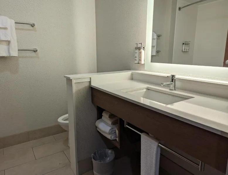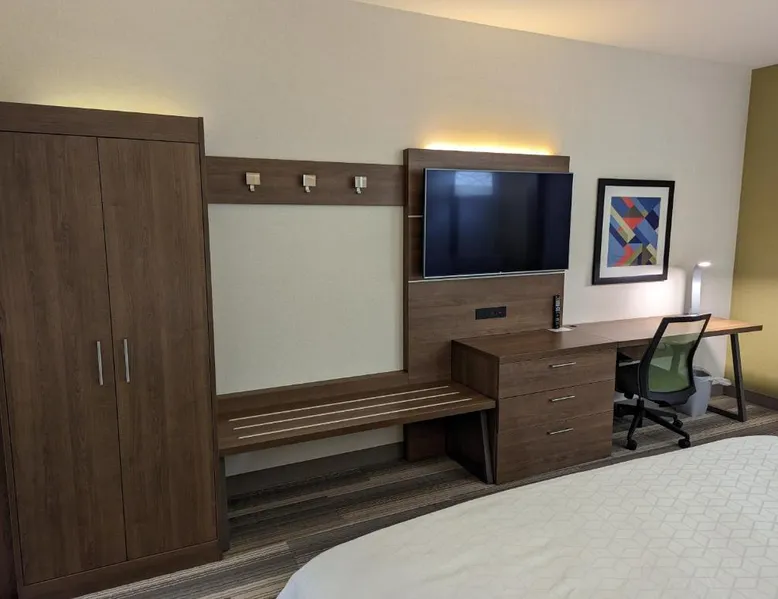 Comfortable Accommodations: Holiday Inn Express - Lexington East - Winchester by IHG in Winchester offers rooms with air-conditioning, private bathrooms, and free WiFi. Each room includes a tea and coffee maker, hypoallergenic bedding, and a work desk. Facilities and Services: Guests can enjoy a fitness center, indoor swimming pool, and a lounge. Additional amenities include a minimarket, 24-hour front desk, housekeeping service, and express check-in and check-out. Free on-site parking is available. Dining and Location: A buffet breakfast is served daily. The hotel is 25 mi from Blue Grass Airport and near attractions such as Fort Boonesborough State Park (9.9 mi) and Lexington Convention Center (19 mi). Guests appreciate the room cleanliness, attentive staff, and quality breakfast. The spacious double room offers air conditioning, a tea and coffee maker, as well as a private bathroom boasting a bath and a shower. The double room has carpeted floors, a seating area with a flat-screen TV with cable channels, a wardrobe, a safe deposit box, as well as heating. The unit has 2 beds.