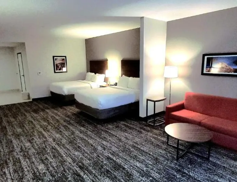 Comfortable Accommodations: Best Western Plus Coachella Valley Inn & Suites in Cathedral City offers comfortable rooms with hairdryers, refrigerators, and microwaves. Ground-floor units provide easy access and added convenience. Convenient Location: Located 6.2 mi from Palm Springs International Airport, the hotel is near attractions such as Outdoor Resorts Of America Golf Course (3.1 mi) and Children’s Discovery Museum (3.7 mi). Free WiFi is available throughout the property. Guest Services: Highly rated for room cleanliness, attentive staff, and excellent service support. A complimentary breakfast is provided by the property, ensuring a pleasant start to the day. The unit has 2 beds.