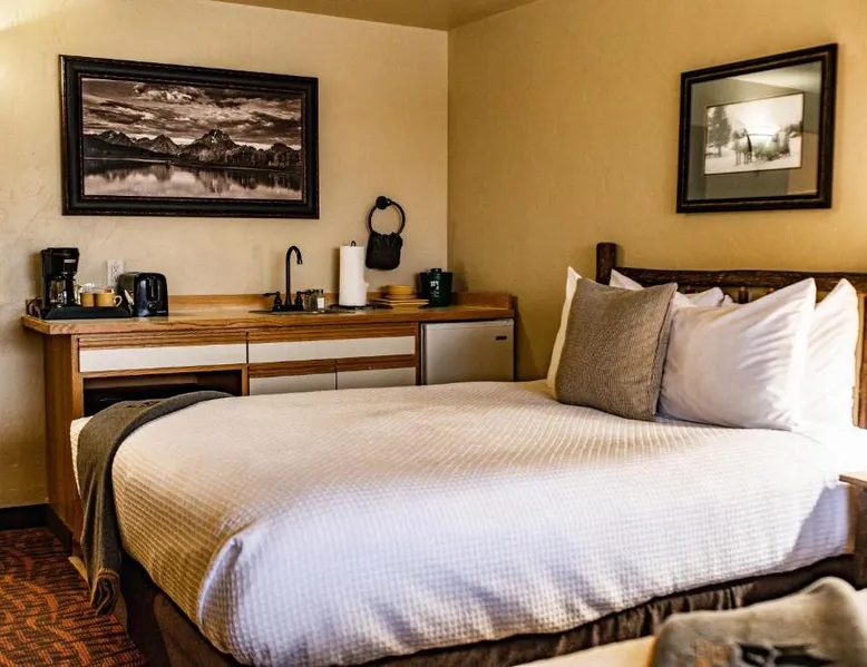 Only 4 blocks from Jackson Hole's central Town Square, and close to top-rated ski resorts. The Elk Country Inn is located in close proximity to many popular points of interest. Grand Teton National Park, boutiques, restaurants and the city's nightlife are moments away. The hotel is also on the city's shuttle line, offering access to all area ski resorts. Guests at the Elk Inn can enjoy complimentary winter ski shuttle service, a large outdoor barbecue, complete with a picnic area as well as winter car plug-ins. A fitness center and laundry facilities are also available. This rustic deluxe cabin comes with a living room, a kitchenette unit and a sofa bed. The kitchenette includes a small refrigerator, microwave, two-burner stovetop, dishwasher, dishes and a coffee maker. This room is pet friendly.