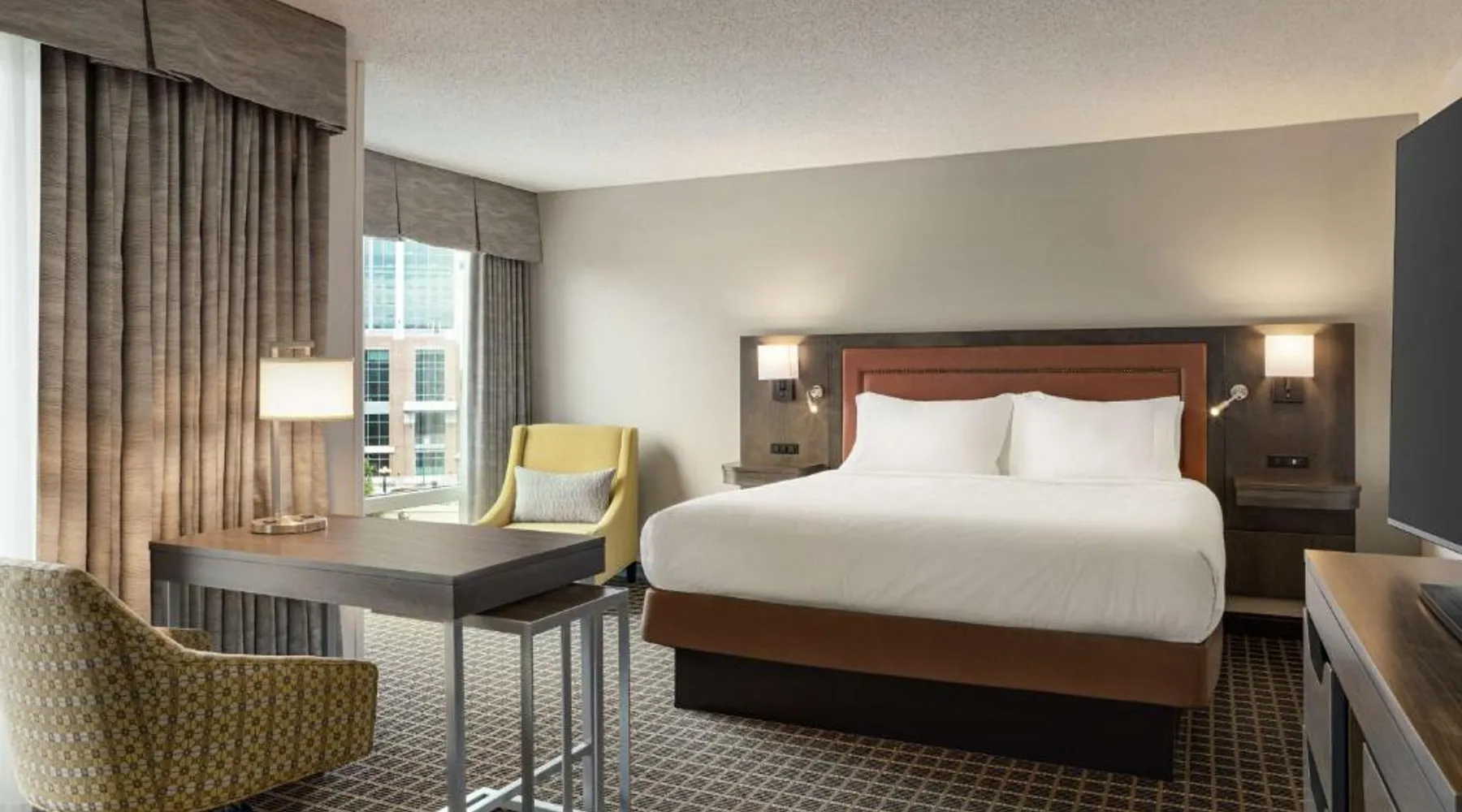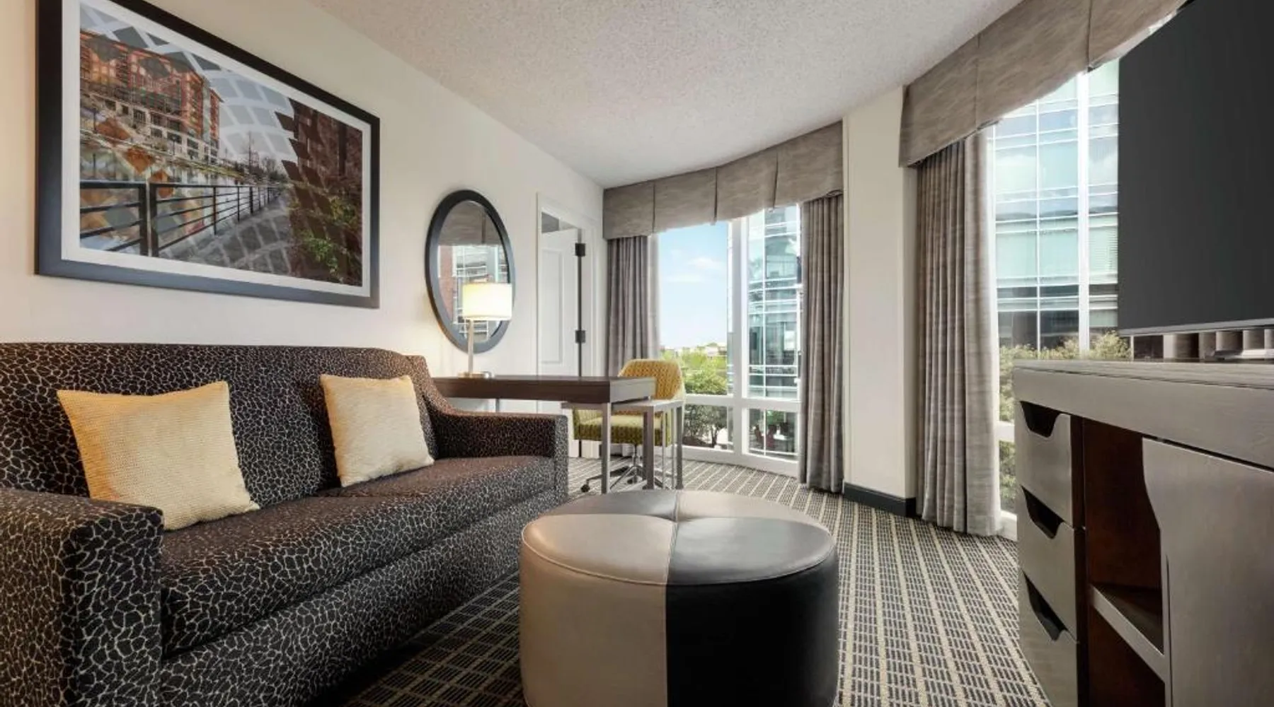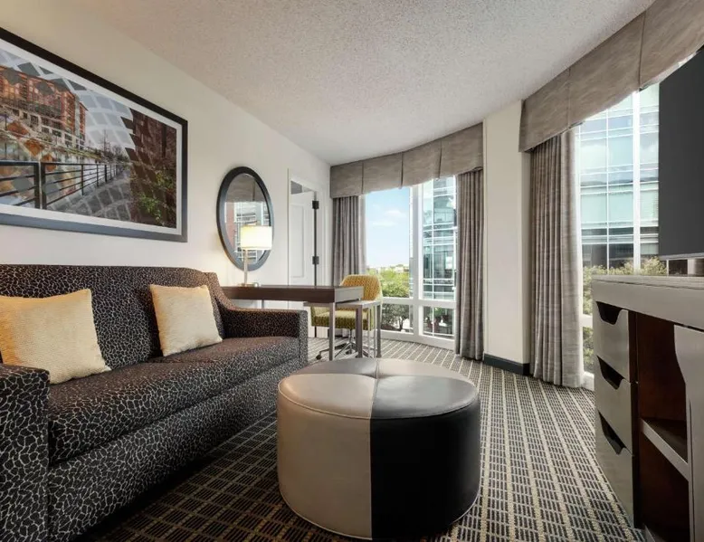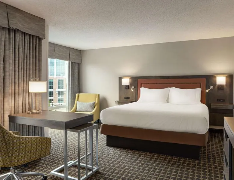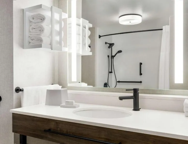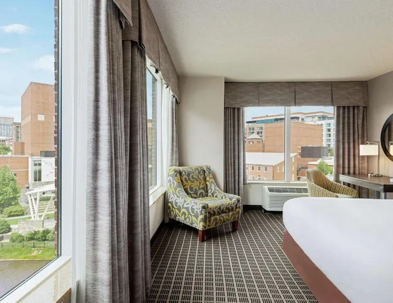 Located in the heart of downtown Greenville, this hotel offer free hot breakfast and complimentary WiFi throughout the hotel. Bon Secours Wellness Arena is 1.6 mi from the Hampton Inn & Suites Greenville-Downtown-Riverplace. Rooms feature a flat screen TV, small refrigerator, microwave and a coffee maker. Select rooms feature sofa beds and balconies overlooking the Reedy River. Guests will also enjoy the hotel's fitness center and well-equipped business center. Fluor Field is a 3 minutes' drive away, while Reedy River is a 2 minutes' walk from the property. This accessible room features a 42-inch flat-screen cable TV, desk, small refrigerator and coffee-making facilities.