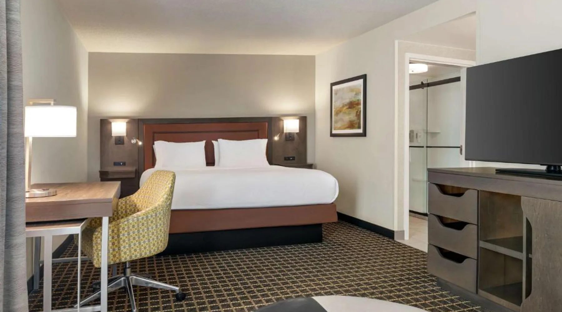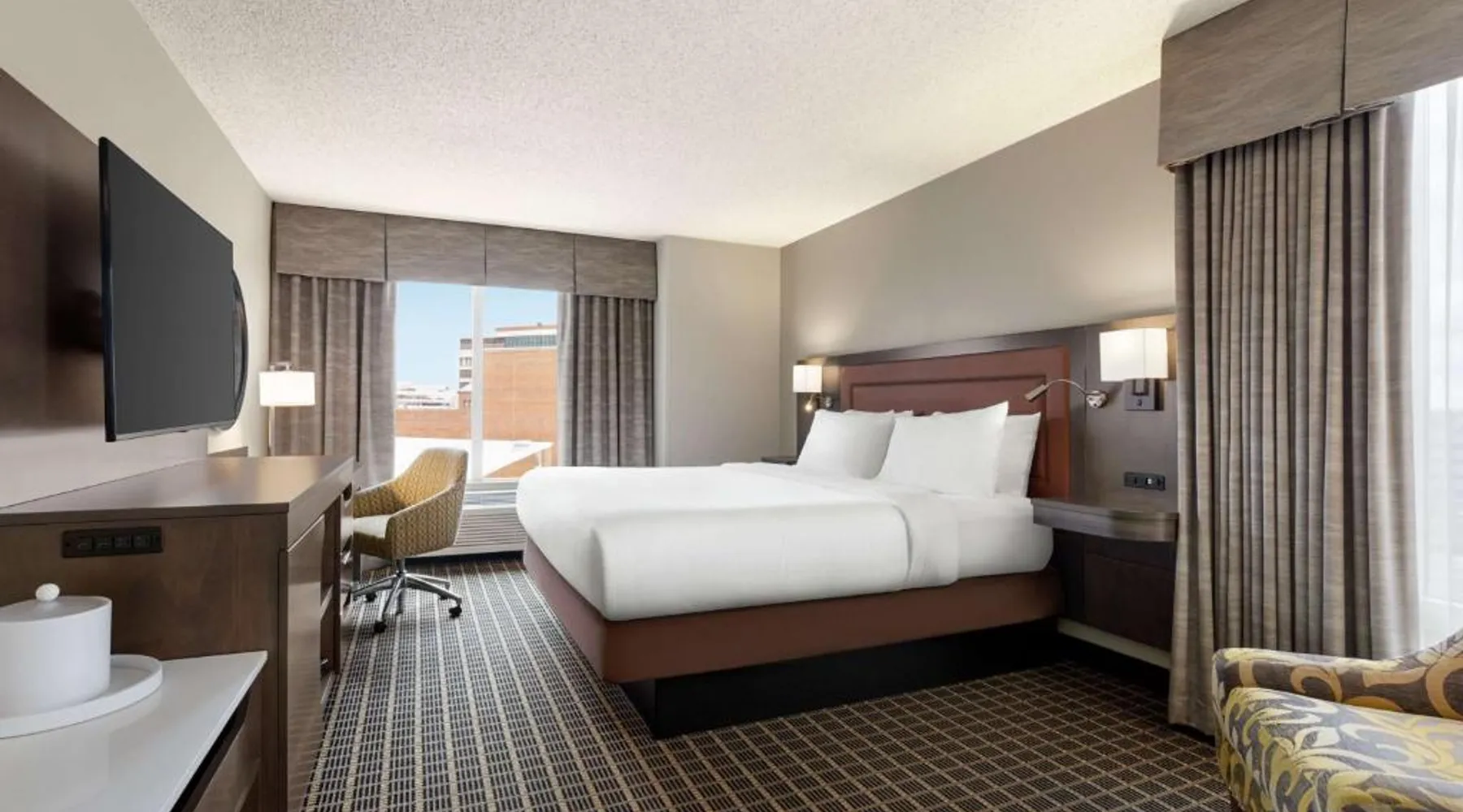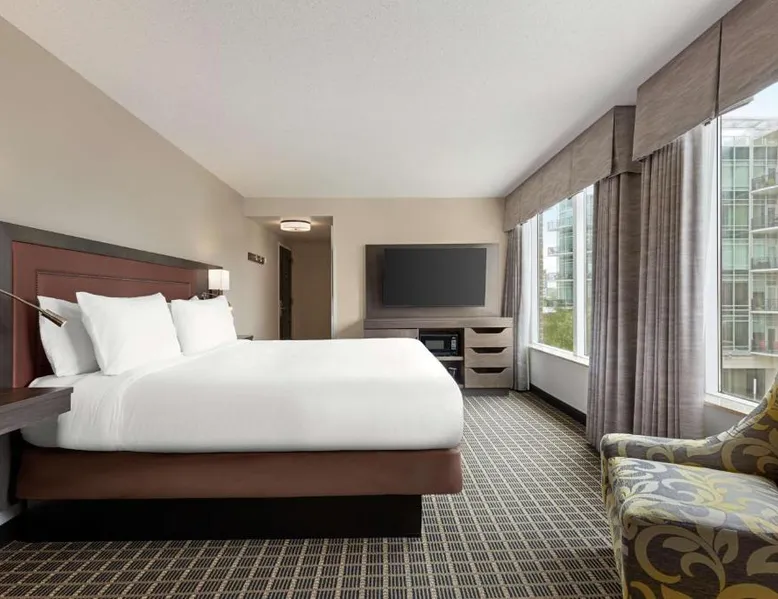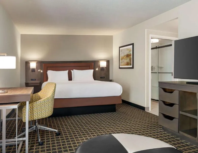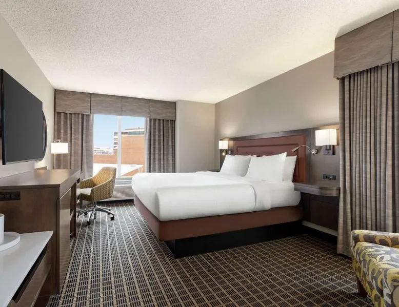 Located in the heart of downtown Greenville, this hotel offer free hot breakfast and complimentary WiFi throughout the hotel. Bon Secours Wellness Arena is 1.6 mi from the Hampton Inn & Suites Greenville-Downtown-Riverplace. Rooms feature a flat screen TV, small refrigerator, microwave and a coffee maker. Select rooms feature sofa beds and balconies overlooking the Reedy River. Guests will also enjoy the hotel's fitness center and well-equipped business center. Fluor Field is a 3 minutes' drive away, while Reedy River is a 2 minutes' walk from the property. This accessible room features a 42-inch flat-screen cable TV, desk, small refrigerator and coffee-making facilities.