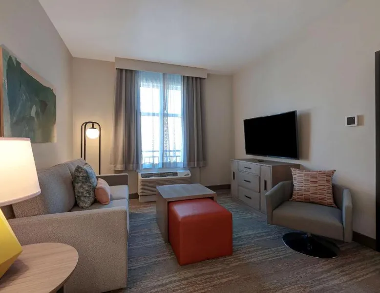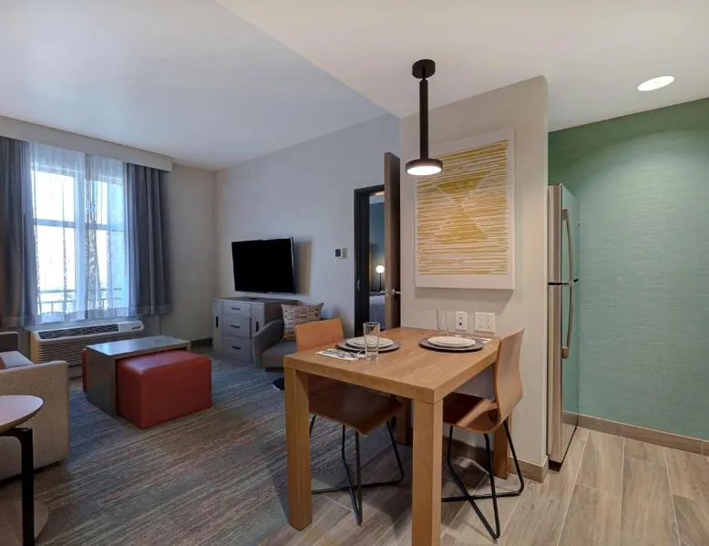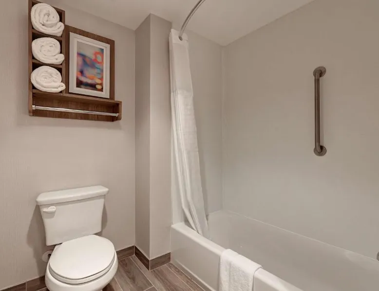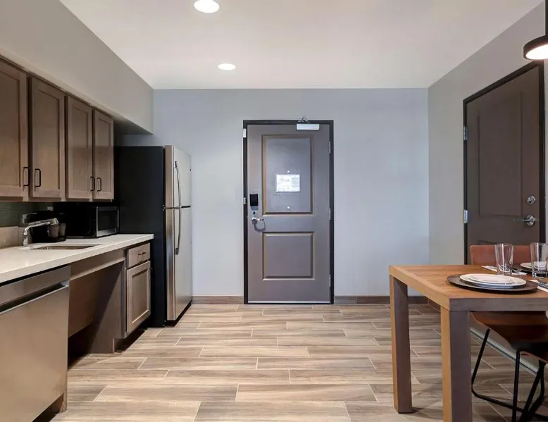 Comfortable Accommodations: Rooms feature air-conditioning, private bathrooms, and fully equipped kitchens. Guests enjoy amenities such as refrigerators, microwaves, and free toiletries. Leisure Facilities: The hotel offers a sun terrace and indoor swimming pool. Additional facilities include a lounge, outdoor fireplace, fitness room, and games room. Dining Options: A continental buffet breakfast is served daily, including juice, fresh pastries, cheese, and fruits. In-room breakfast and barbecue facilities are available. Location and Attractions: Located in Santa Clarita, the hotel is 24 mi from Hollywood Burbank Airport. Nearby attractions include Nethercutt Museum (16 mi) and Universal Studios Hollywood (29 mi). Guests appreciate the attentive staff and room cleanliness. Guests can make meals in the kitchen that is equipped with a stovetop, a refrigerator, a dishwasher and kitchenware. The air-conditioned suite provides a flat-screen TV with cable channels, a tea and coffee maker, a seating area and heating. The unit offers 2 beds.