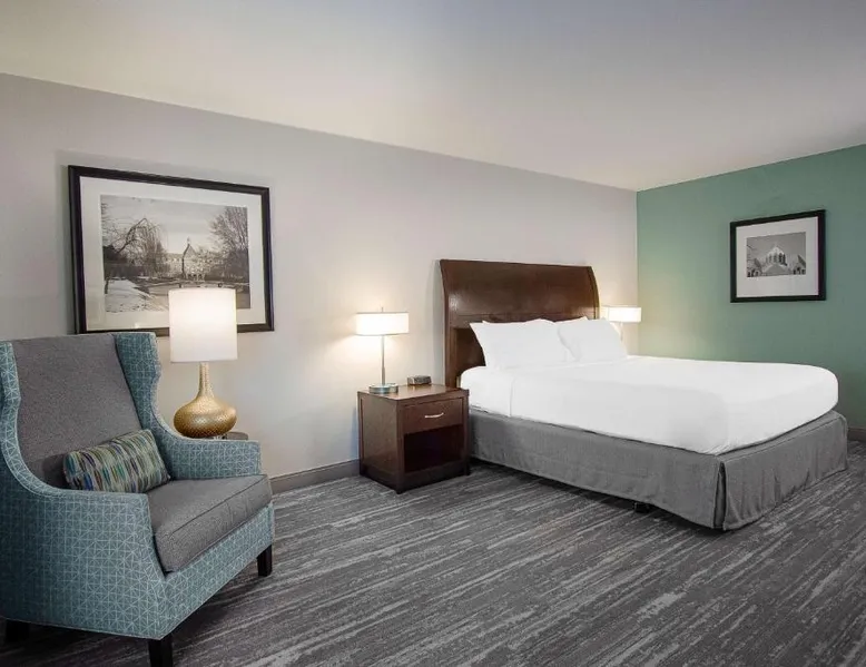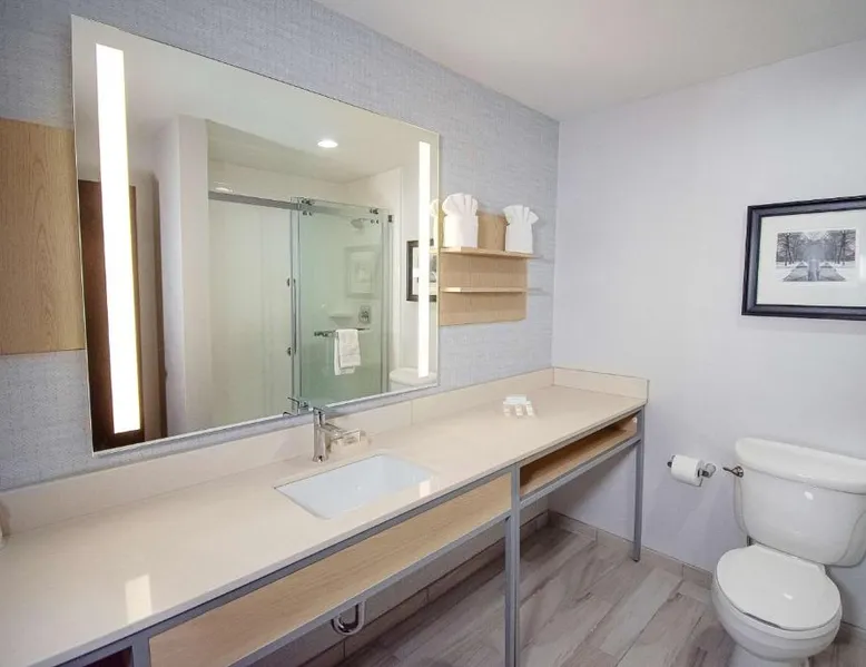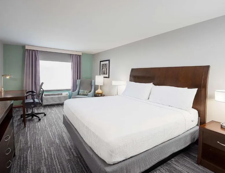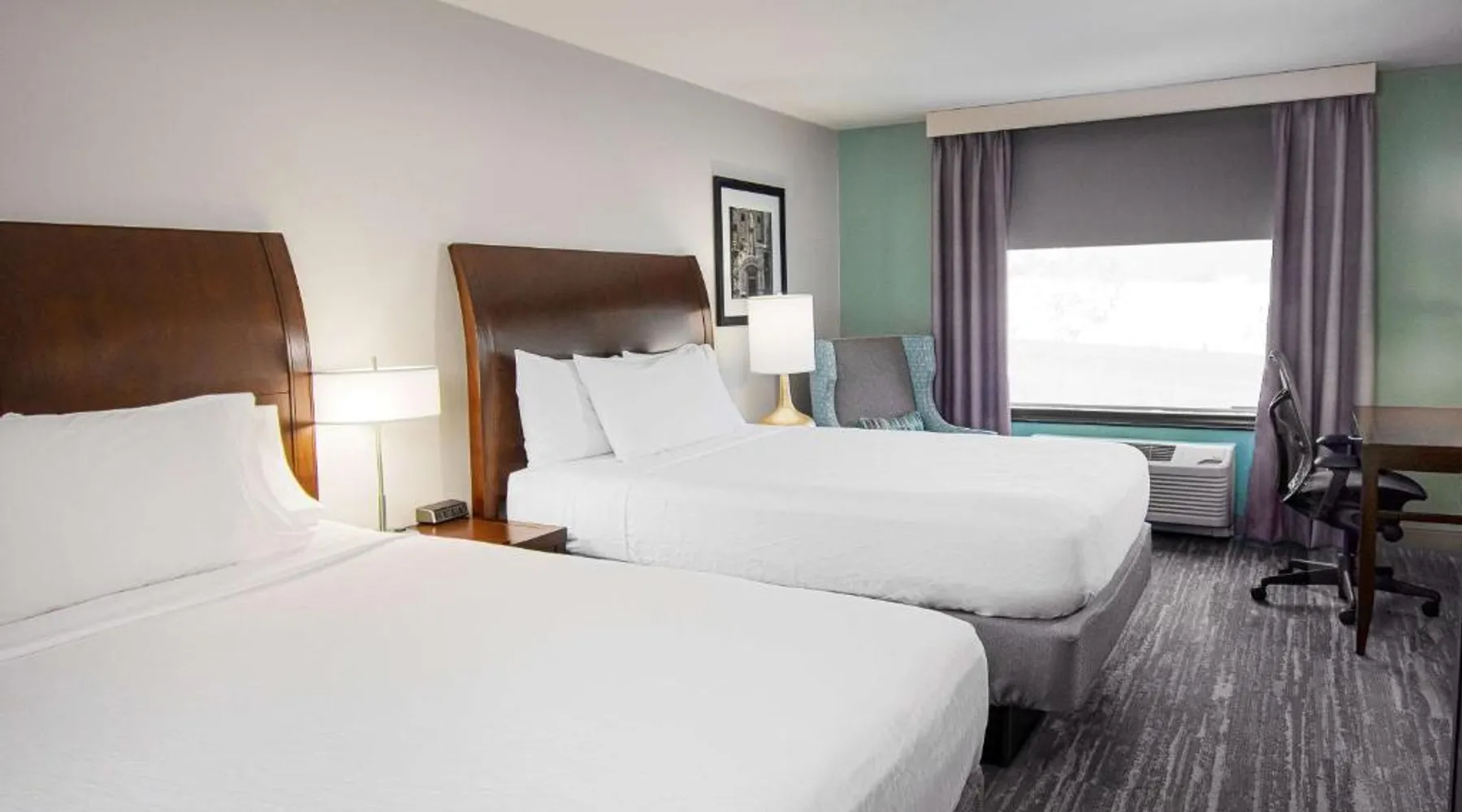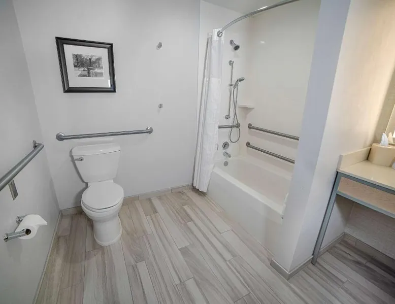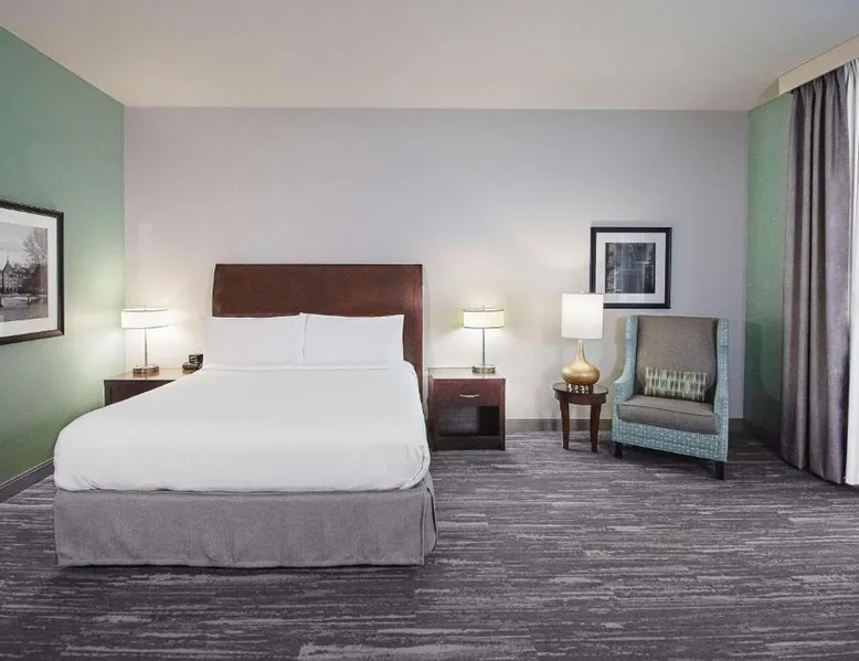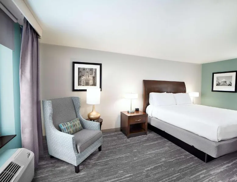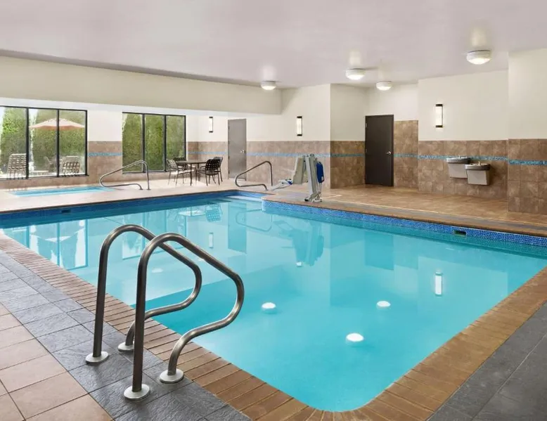 Comfortable Accommodations: Hilton Garden Inn South Bend in South Bend offers family rooms with air-conditioning, free WiFi, and amenities such as a work desk, refrigerator, and TV. Each room includes a tea and coffee maker, hairdryer, and free toiletries. Dining and Leisure: Guests can enjoy a family-friendly restaurant serving American cuisine for lunch and dinner. The on-site bar offers a relaxing atmosphere. Additional facilities include an indoor swimming pool, terrace, fitness room, and hot tub. Convenient Location: Located 4.3 mi from South Bend Regional Airport, the hotel is a short walk from the University of Noter Dame (19 minutes) and near attractions like the Basilica of the Sacred Heart (0.9 mi) and Noter Dame Stadium (2.3 mi). Free on-site parking is available. The quadruple room features air conditioning, a tea and coffee maker, a safe deposit box, heating and a flat-screen TV with cable channels. The unit has 2 beds.