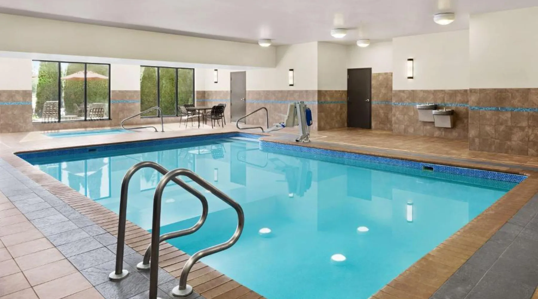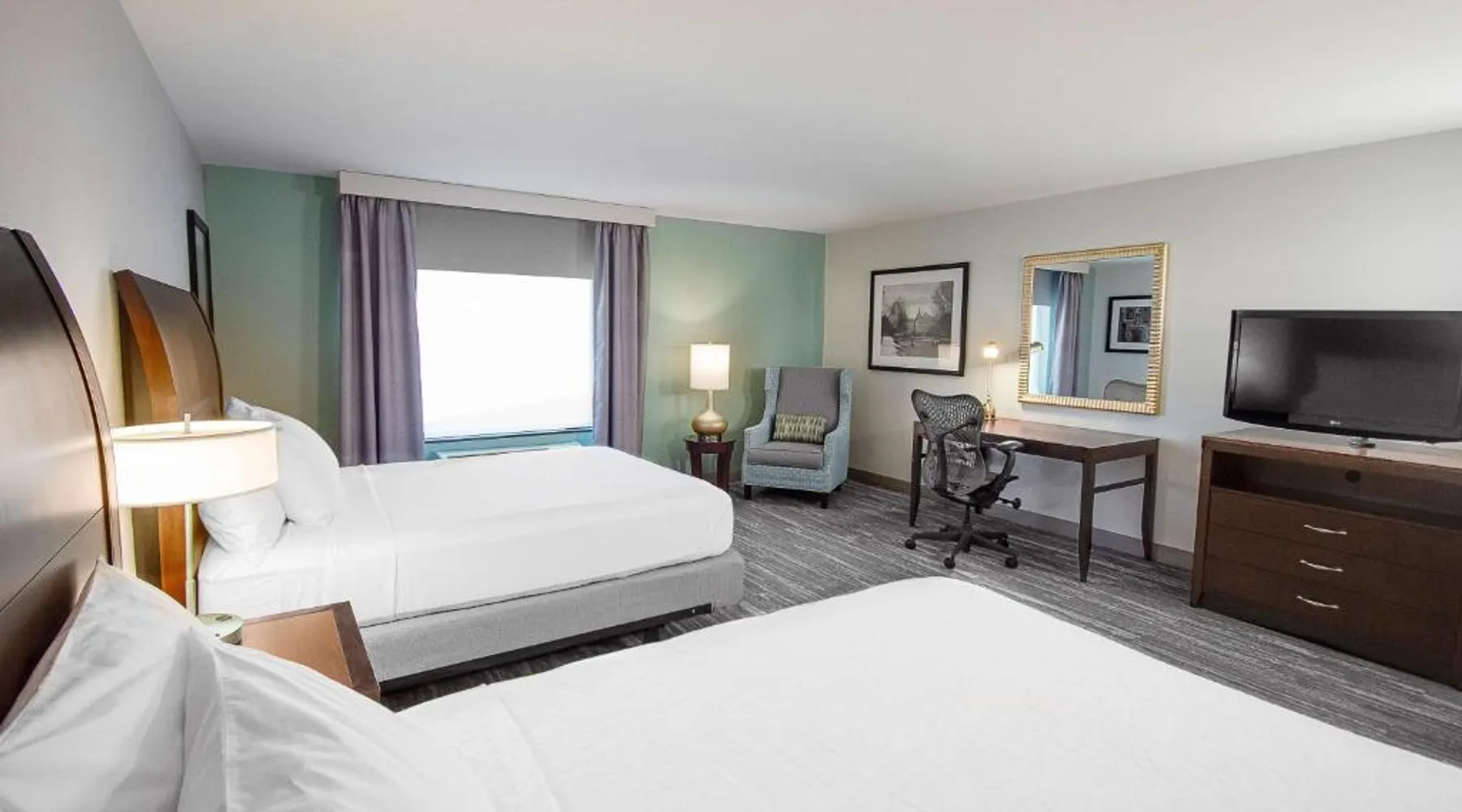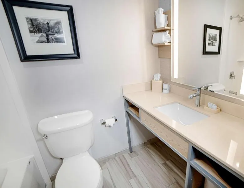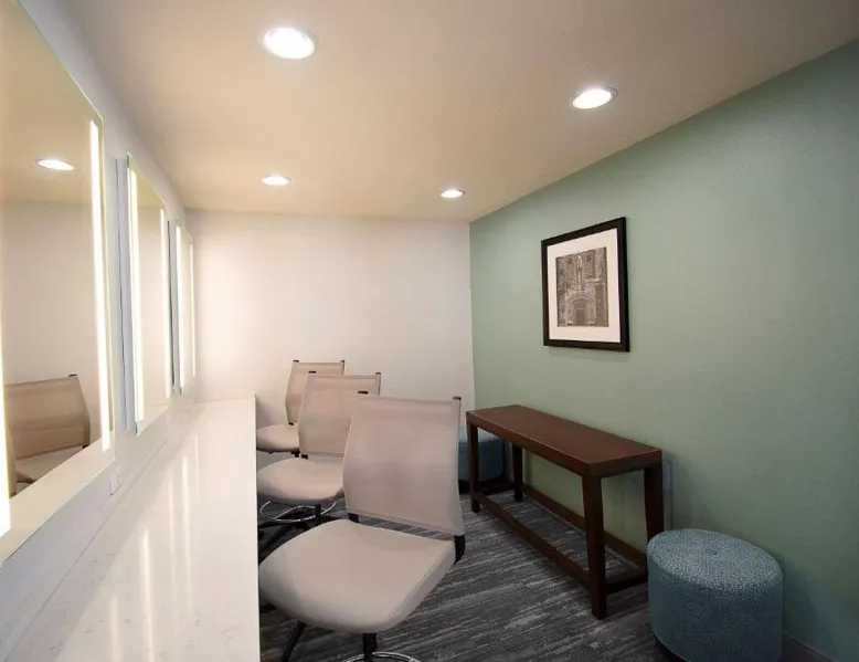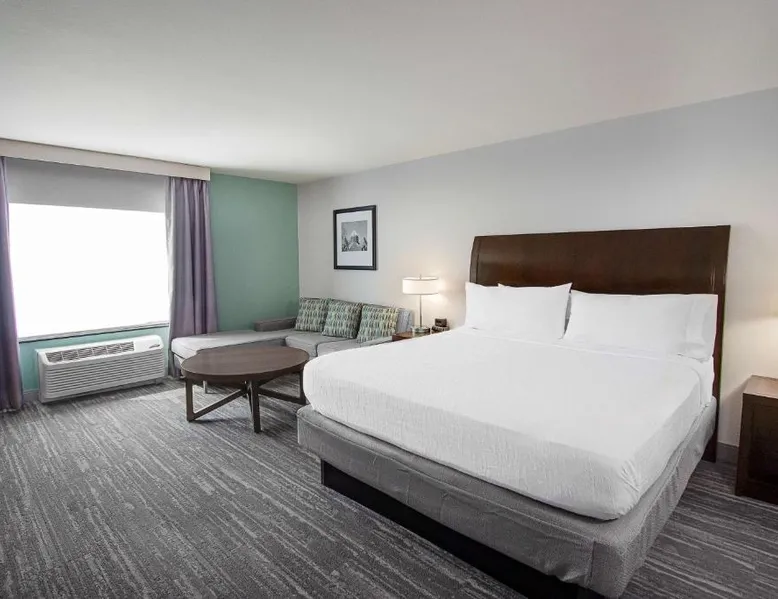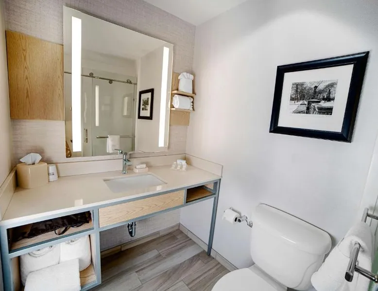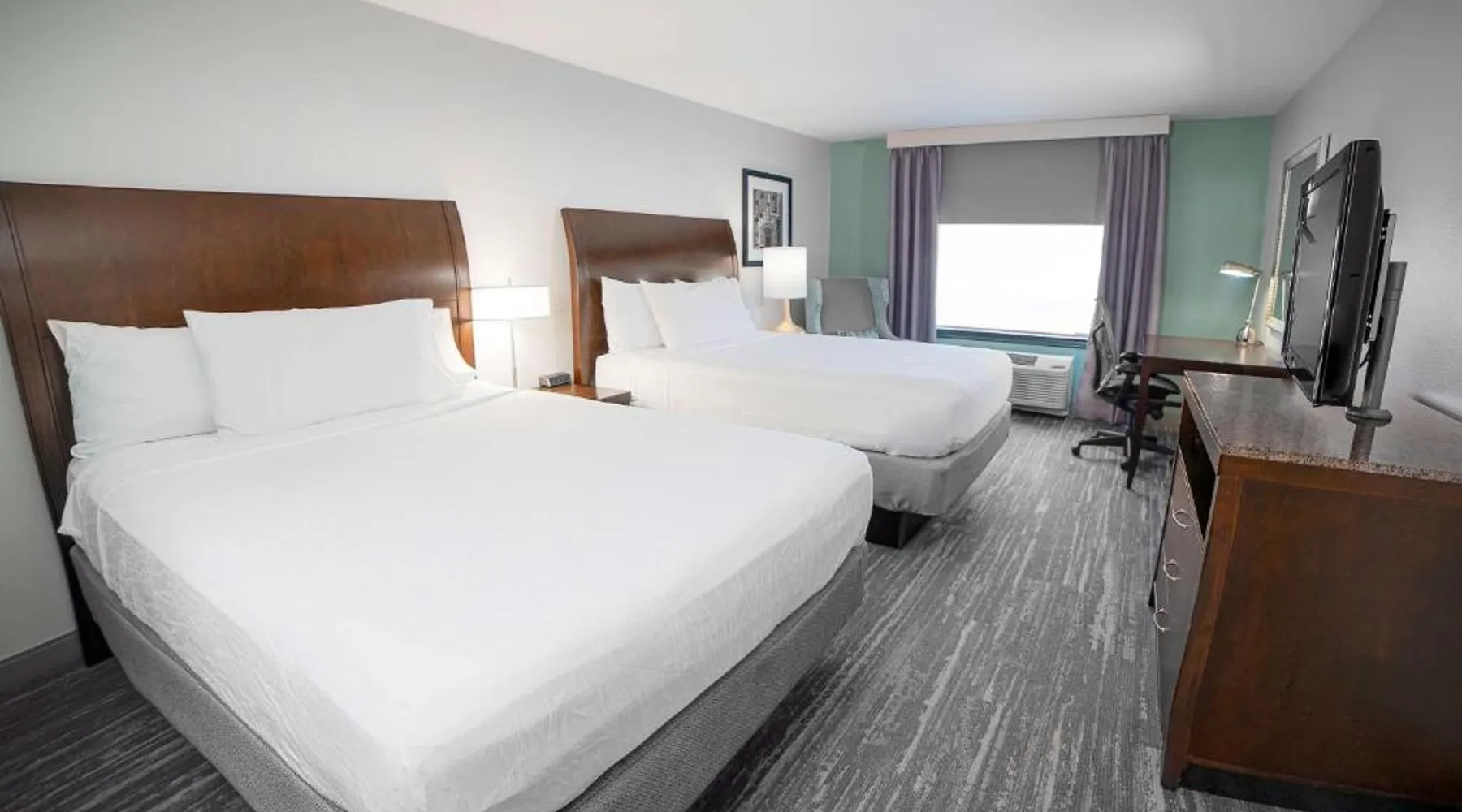 Comfortable Accommodations: Hilton Garden Inn South Bend in South Bend offers family rooms with air-conditioning, free WiFi, and amenities such as a work desk, refrigerator, and TV. Each room includes a tea and coffee maker, hairdryer, and free toiletries. Dining and Leisure: Guests can enjoy a family-friendly restaurant serving American cuisine for lunch and dinner. The on-site bar offers a relaxing atmosphere. Additional facilities include an indoor swimming pool, terrace, fitness room, and hot tub. Convenient Location: Located 4.3 mi from South Bend Regional Airport, the hotel is a short walk from the University of Noter Dame (19 minutes) and near attractions like the Basilica of the Sacred Heart (0.9 mi) and Noter Dame Stadium (2.3 mi). Free on-site parking is available. The quadruple room features air conditioning, a tea and coffee maker, a safe deposit box, heating and a flat-screen TV with cable channels. The unit has 2 beds.