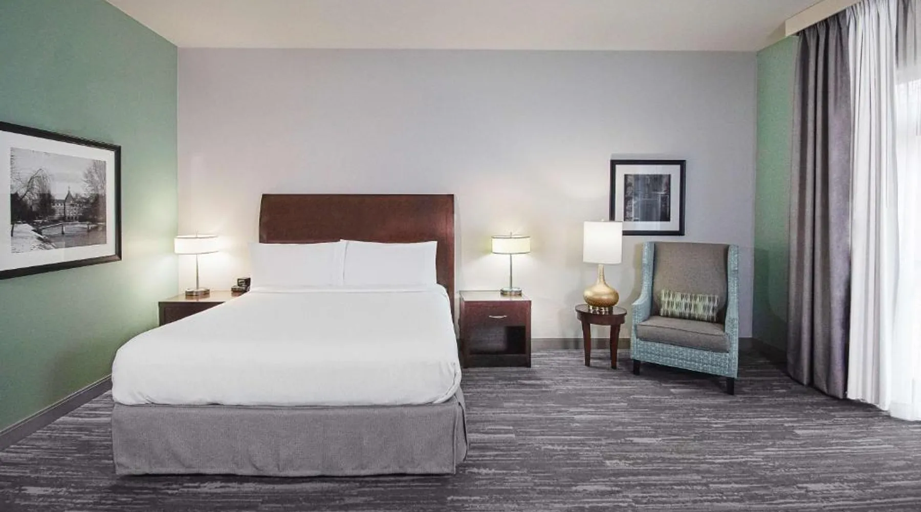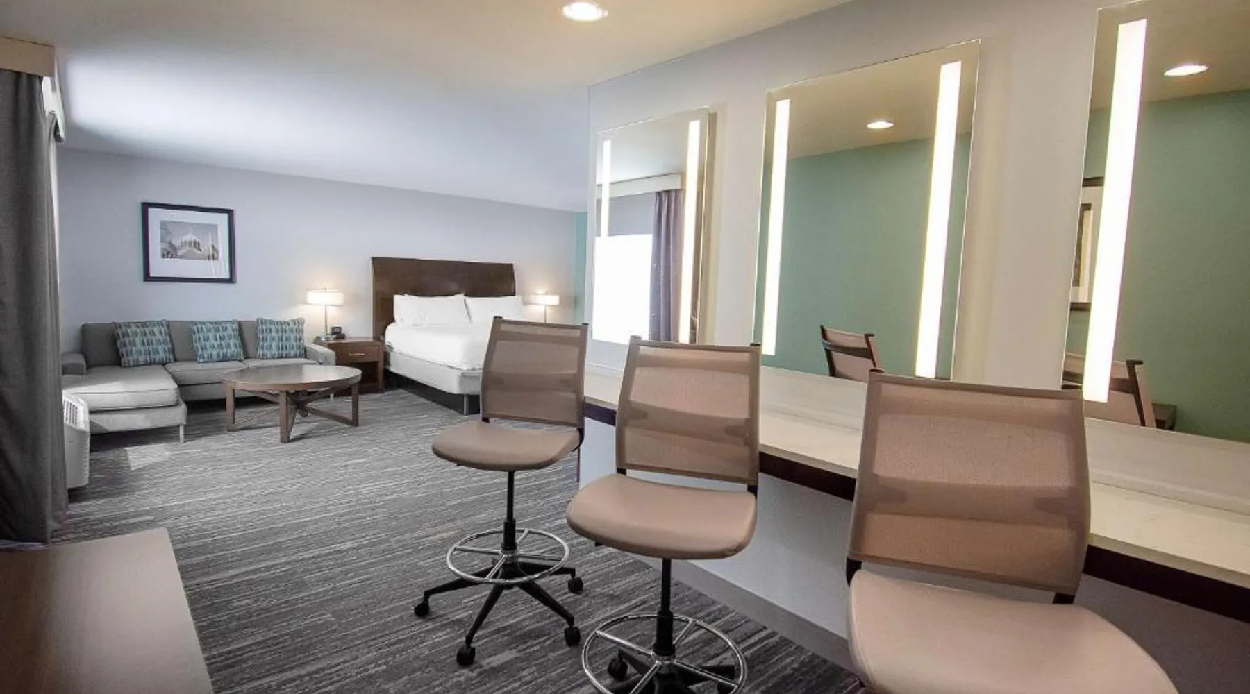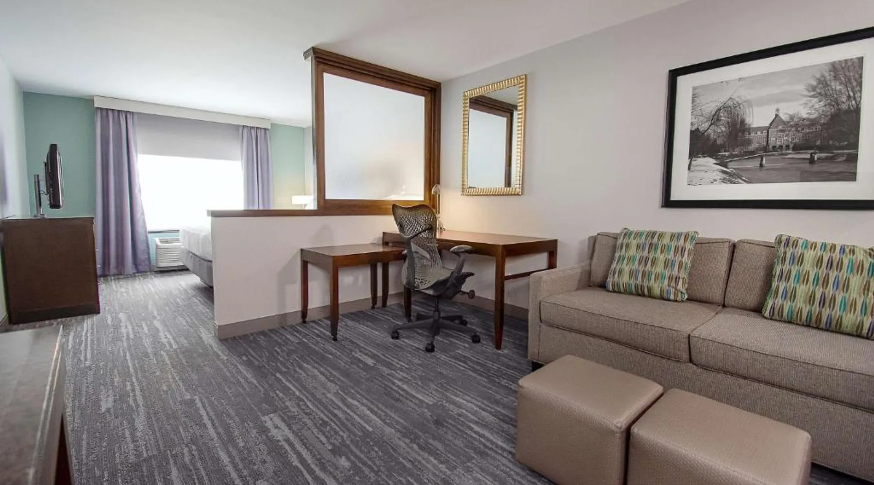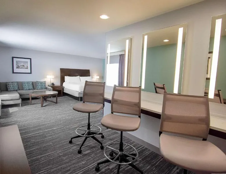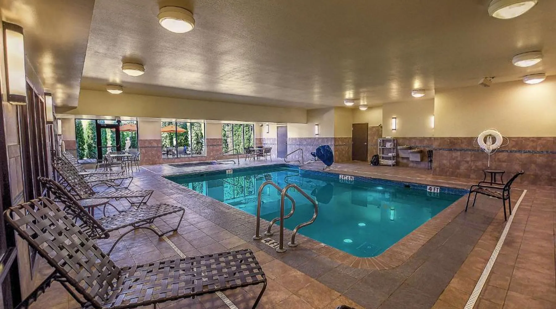 Comfortable Accommodations: Hilton Garden Inn South Bend in South Bend offers family rooms with air-conditioning, free WiFi, and amenities such as a work desk, refrigerator, and TV. Each room includes a tea and coffee maker, hairdryer, and free toiletries. Dining and Leisure: Guests can enjoy a family-friendly restaurant serving American cuisine for lunch and dinner. The on-site bar offers a relaxing atmosphere. Additional facilities include an indoor swimming pool, terrace, fitness room, and hot tub. Convenient Location: Located 4.3 mi from South Bend Regional Airport, the hotel is a short walk from the University of Noter Dame (19 minutes) and near attractions like the Basilica of the Sacred Heart (0.9 mi) and Noter Dame Stadium (2.3 mi). Free on-site parking is available. The quadruple room features air conditioning, a tea and coffee maker, a safe deposit box, heating and a flat-screen TV with cable channels. The unit has 2 beds.