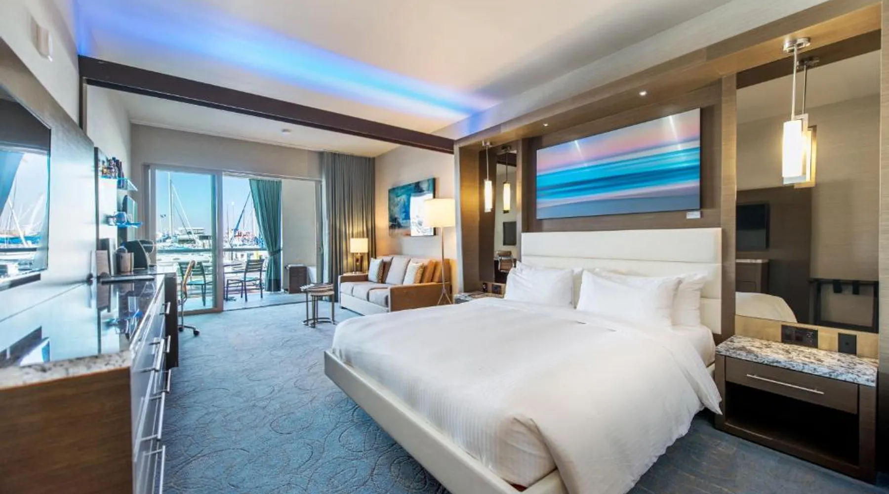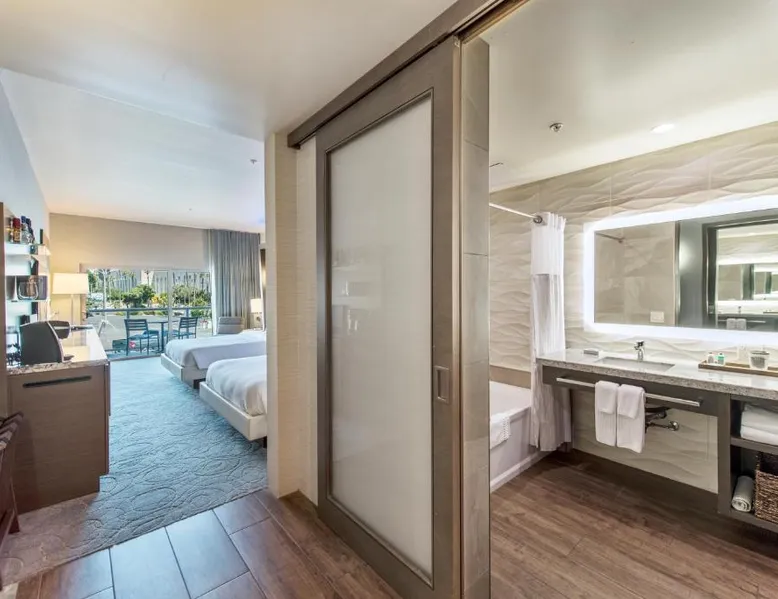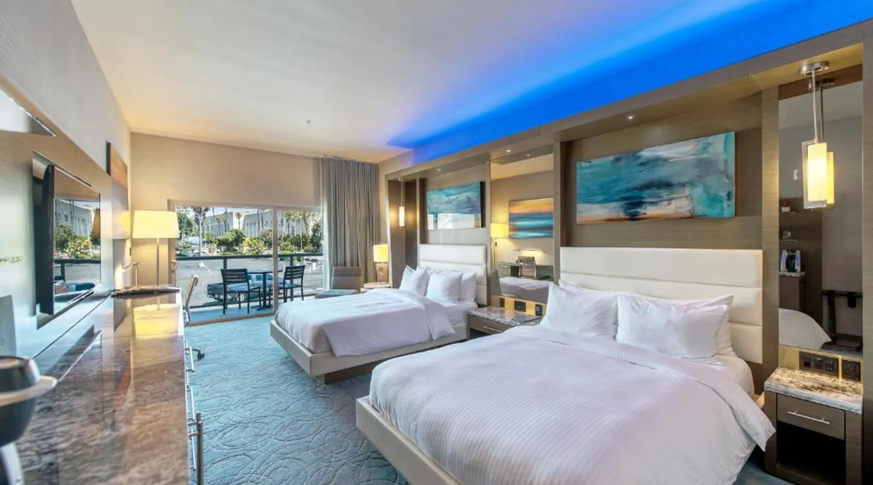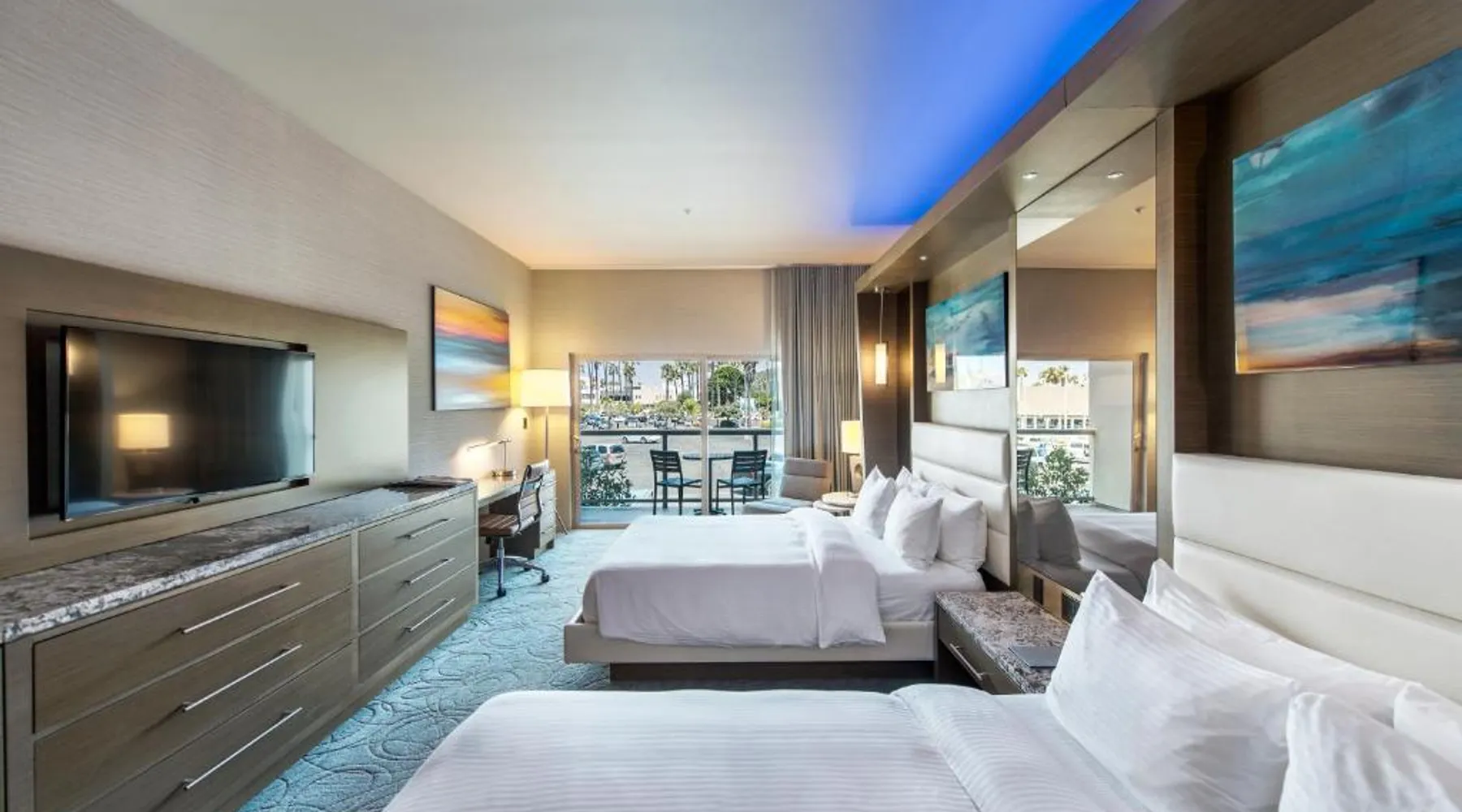 Welcome to the first luxury boutique hotel in Redondo Beach, California. Just 6.5 miles from LAX, and right on the waterfront, Shade offers guests sweeping views of the Pacific coastline from Palos Verdes to Malibu. Nestled in the heart of the South Bay, Shade Hotel is pleasingly located between the King Harbor Marina and the bicycle strand. At Shade Hotel, our mission isn't just to give you a comfortable place to stay: it's to provide an unforgettable experience. As a premium hotel located right on the water in Redondo Beach, we offer a luxury guest experience like no other, complete with gorgeous rooms, a suite of luxurious amenities, and premium cuisine at our in-house restaurant and bar. Each of our guest rooms is decorated with soft greens and tranquil blues accented by exotic woods, creating the perfect environment to unwind and enjoy some time away from it all. Whether you choose to book one of our gorgeous guest rooms, a luxury suite, or host your beach wedding at Shade Hotel, you'll be treated to an experience that simply can't be matched. The spacious double room features air conditioning, a mini-bar, a balcony with city views as well as a private bathroom boasting a walk-in shower. The unit has 2 beds.