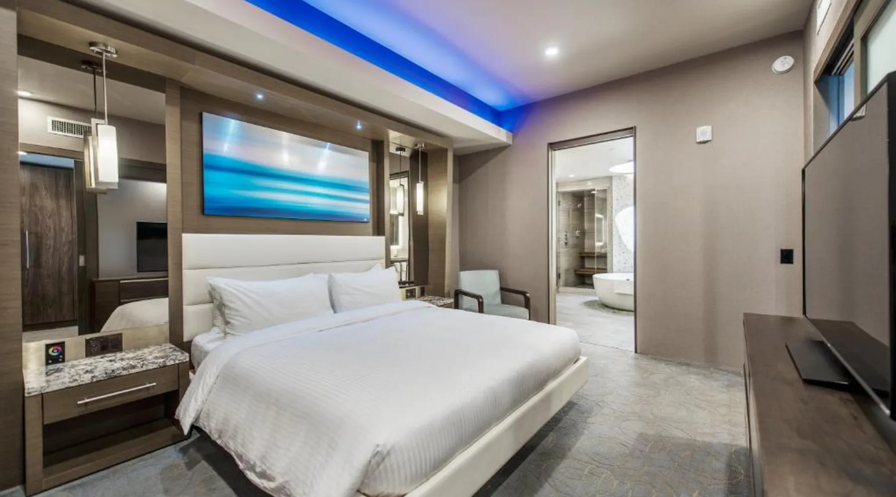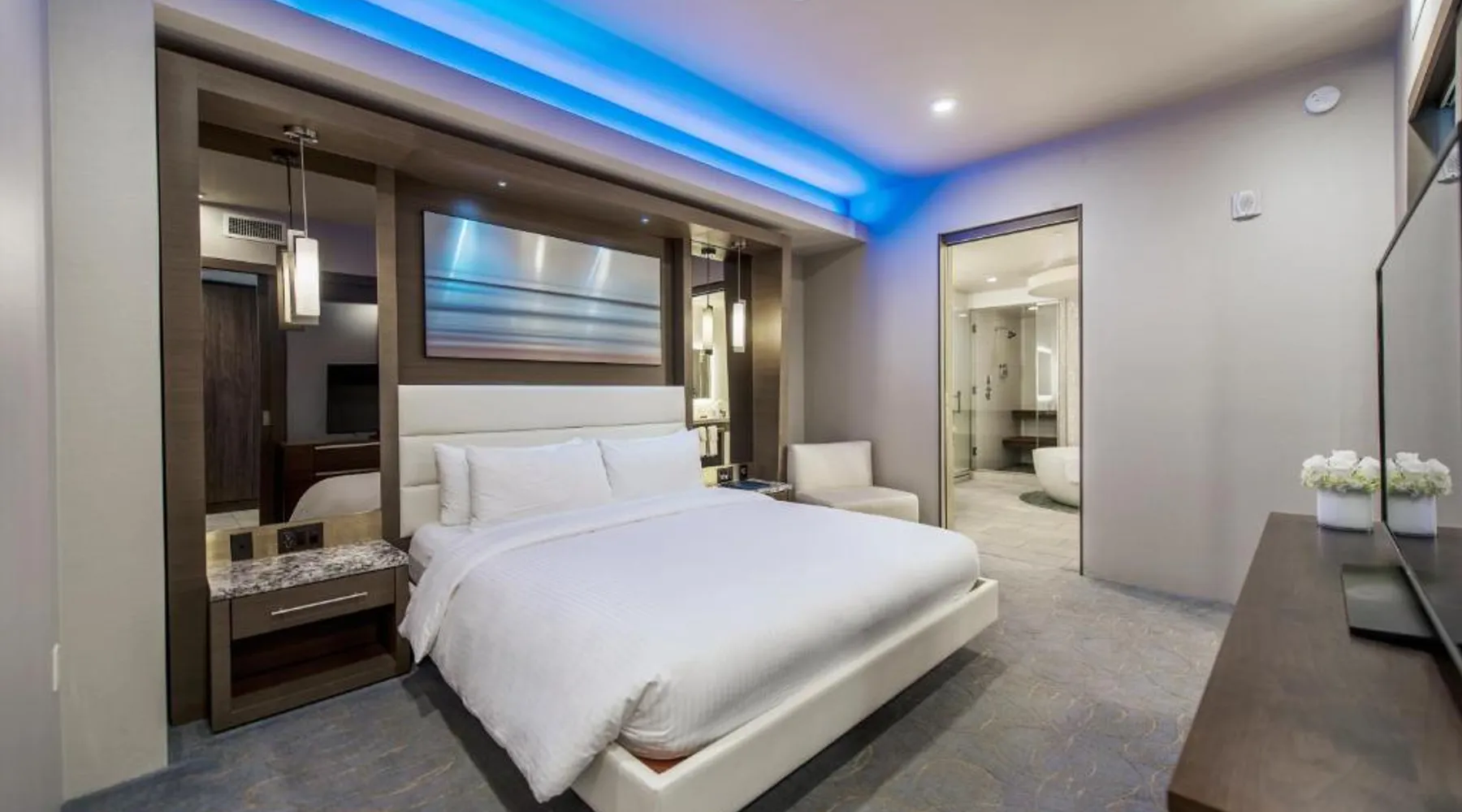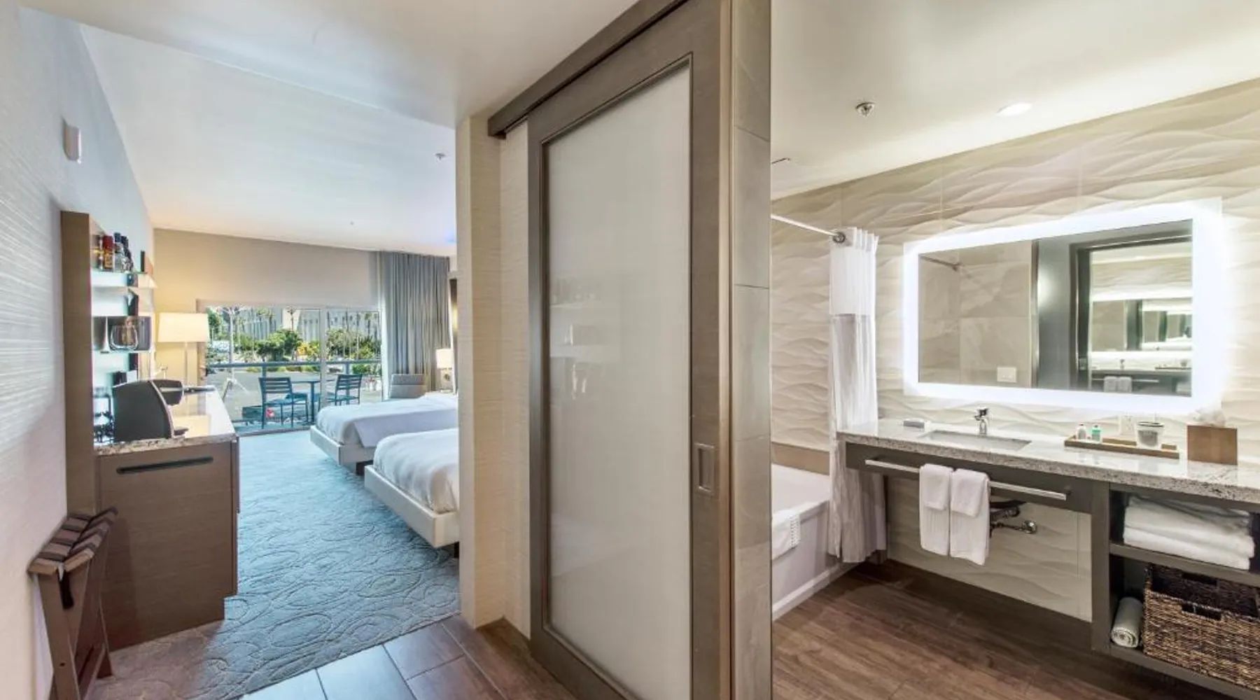 Welcome to the first luxury boutique hotel in Redondo Beach, California. Just 6.5 miles from LAX, and right on the waterfront, Shade offers guests sweeping views of the Pacific coastline from Palos Verdes to Malibu. Nestled in the heart of the South Bay, Shade Hotel is pleasingly located between the King Harbor Marina and the bicycle strand. At Shade Hotel, our mission isn't just to give you a comfortable place to stay: it's to provide an unforgettable experience. As a premium hotel located right on the water in Redondo Beach, we offer a luxury guest experience like no other, complete with gorgeous rooms, a suite of luxurious amenities, and premium cuisine at our in-house restaurant and bar. Each of our guest rooms is decorated with soft greens and tranquil blues accented by exotic woods, creating the perfect environment to unwind and enjoy some time away from it all. Whether you choose to book one of our gorgeous guest rooms, a luxury suite, or host your beach wedding at Shade Hotel, you'll be treated to an experience that simply can't be matched. The spacious double room features air conditioning, a mini-bar, a balcony with city views as well as a private bathroom boasting a walk-in shower. The unit has 2 beds.