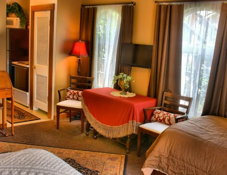 Comfortable Accommodations: Bard's Inn in Cedar City offers air-conditioned rooms with private bathrooms, tea and coffee makers, and free WiFi. Each room includes a TV, soundproofing, and a wardrobe. Exceptional Facilities: Guests enjoy private and express check-in and check-out services, a lounge, and an outdoor seating area. The child-friendly buffet provides a variety of warm dishes, fresh pastries, fruits, and juice. Delicious Breakfast: A complimentary American buffet breakfast is served daily, featuring warm dishes, fresh pastries, fruits, and juice. Guests appreciate the quality and variety of the breakfast offerings. Convenient Location: Located 2.5 mi from Cedar City Regional Airport, the inn is a 7-minute walk from Southern Utah University and 0.9 mi from Eccles Coliseum. Cedar Breaks National Monument is 22 mi away. Highly rated for its breakfast and friendly host. This spacious apartment features a seating area and a kitchen.