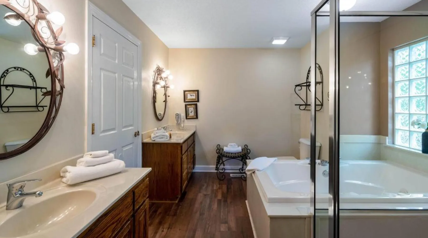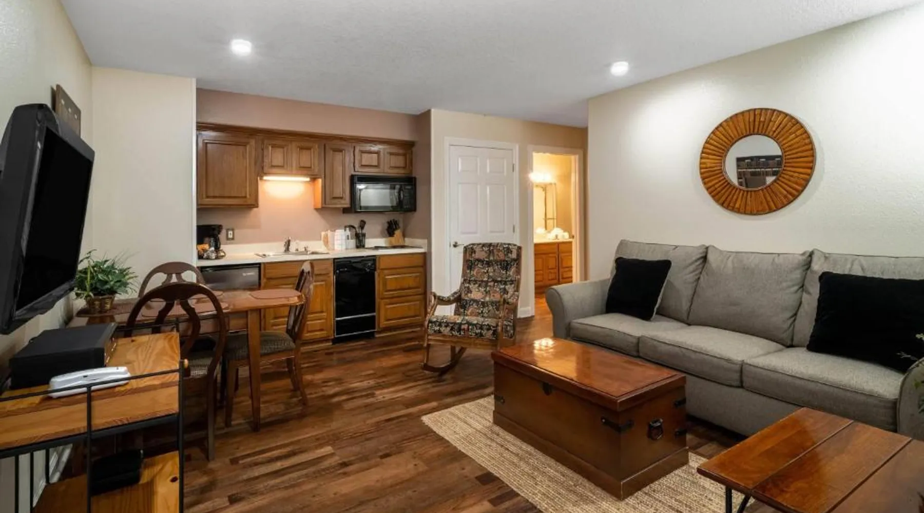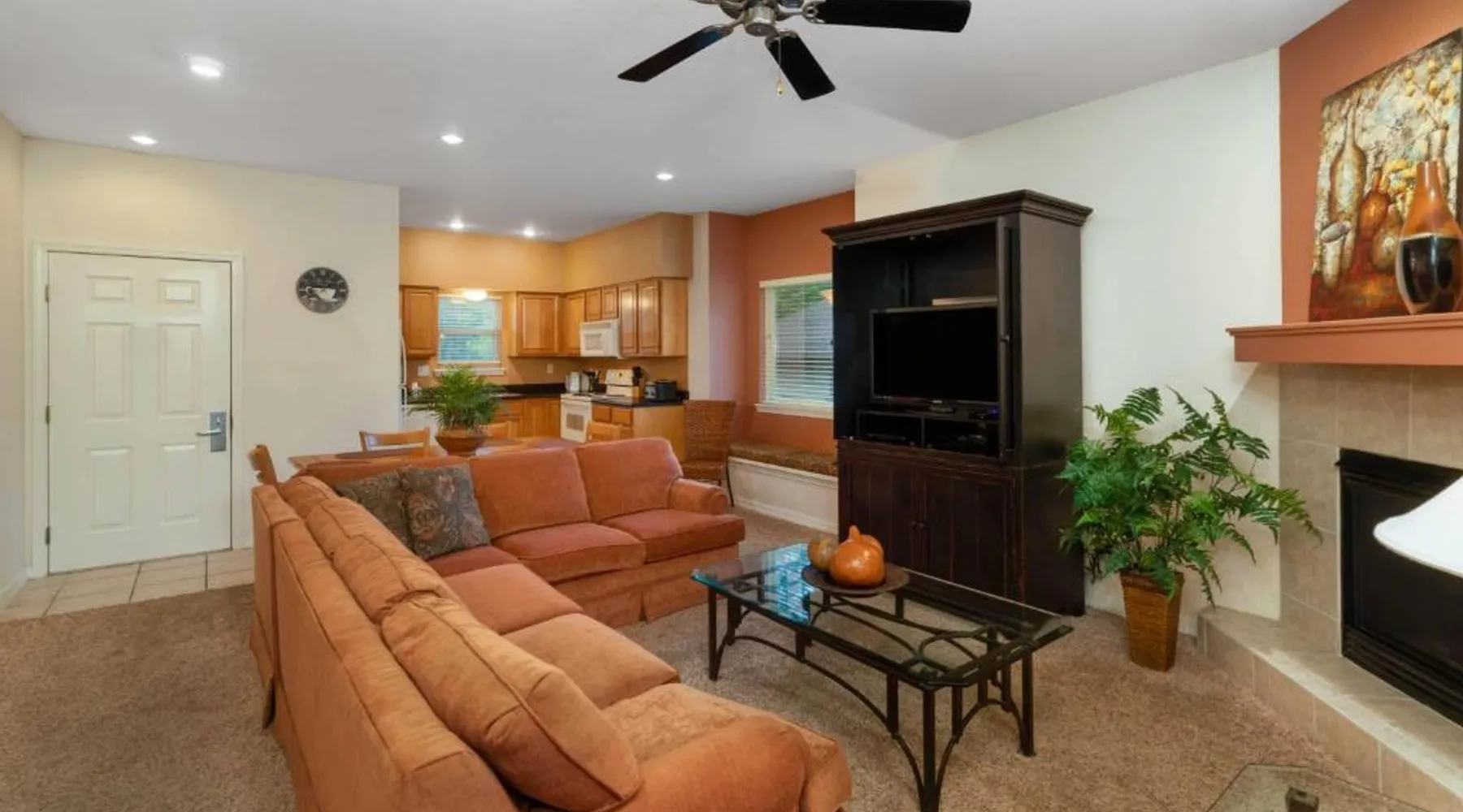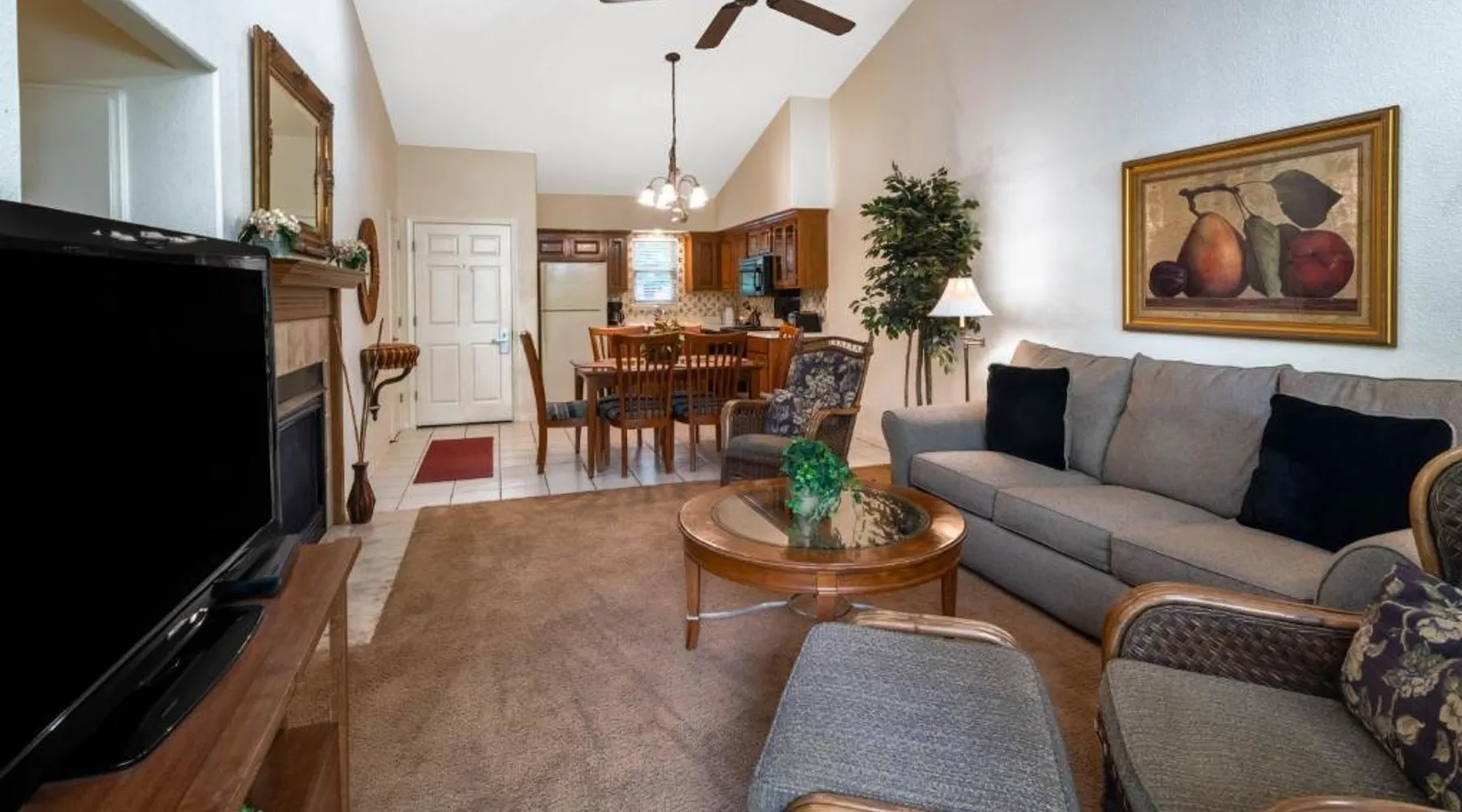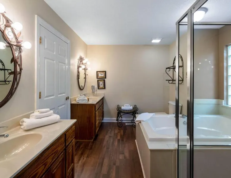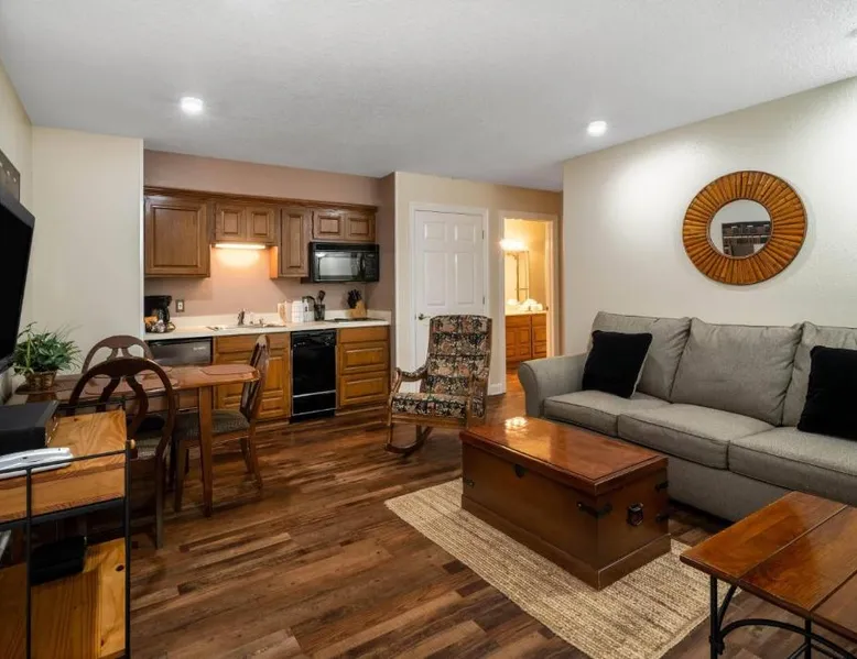 Located on the banks of Lake DeSoto in Hot Springs Village, this apartment property offers accommodations with a kitchen and wired internet. Each apartment at Los Lagos at Hot Springs Village a Ramada by Wyndham is fitted with a kitchenette or full kitchen with a microwave and refrigerator. Apartments also have a seating area with a TV as well as a dining area. All units have a clothes washer and dryer. An outdoor swimming pool and hot tub offer a place for guests to enjoy the outdoors at Los Lagos. Tennis courts and picnic areas are also available on location. Hot Springs National Park is 15 miles from Hot Springs Los Lagos. Magic Springs amusement park is within 20 minutes’ drive. This suite's special feature is the fireplace. Featuring a private entrance, this air-conditioned suite consists of 1 living room, 2 separate bedrooms and 2 bathrooms with a bath and a shower. Guests will find a stovetop, a refrigerator, a dishwasher and kitchenware in the kitchen. The suite also provides guests with a barbecue. The spacious suite provides a washing machine, a tea and coffee maker, a seating area, a wardrobe and a flat-screen TV with cable channels. The unit offers 4 beds.