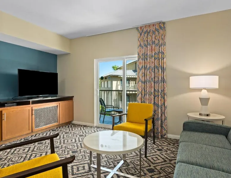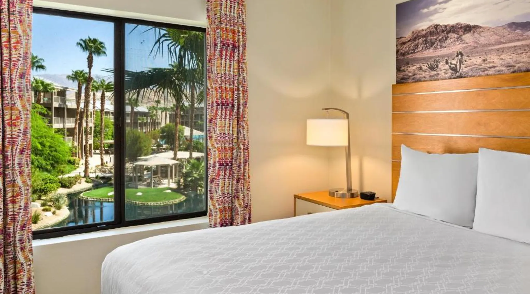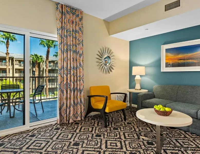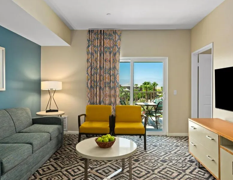 Just 6 miles from Coachella Valley, this Indio hotel offers an outdoor pool and on-site spa services. Each apartment features a full kitchen. The Golf Club at Terra Lago is just steps away. A cable TV and a DVD player are offered in all apartments at WorldMark Indio. Each air-conditioned unit includes a washer and a tumble dryer. Guests of Indio WorldMark can work out in the fitness center. Tennis courts are featured on-site. A games room featuring a billiards table is available. Fantasy Springs Resort Casino is 2.7 miles from WorldMark Indio. Palm Springs Aerial Tramway is 37 minutes’ drive away. Two bedroom bedding varies and are not guaranteed. Offering a fully equipped kitchen, this apartment includes a cable TV and a washer and tumble dryer.
