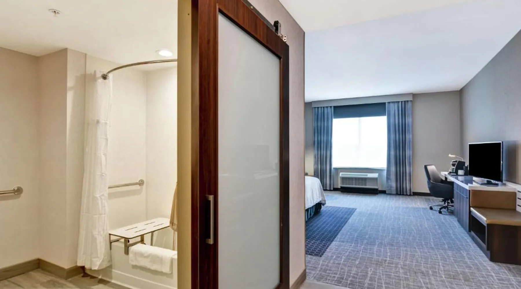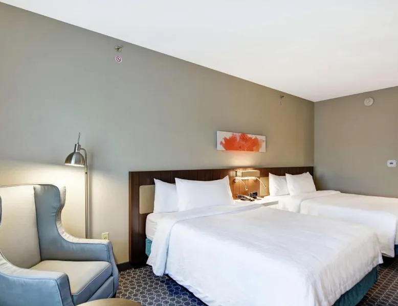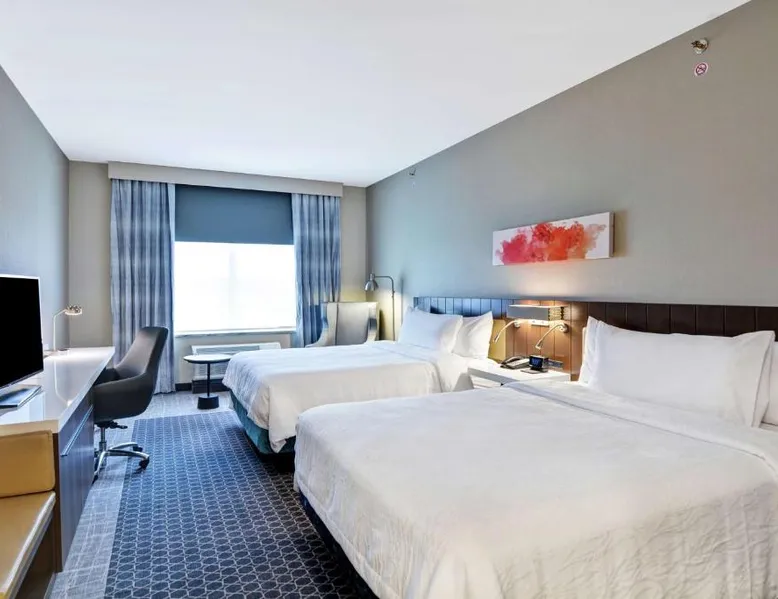 Comfortable Accommodations: Rooms feature air-conditioning, private bathrooms with walk-in showers, tea and coffee makers, and free WiFi. Additional amenities include work desks, refrigerators, and flat-screen TVs. Leisure Facilities: Guests can enjoy an indoor swimming pool, fitness center, and free bicycles. The hotel offers a restaurant serving cocktails and a bar for relaxation. Convenient Location: Located in Lawrenceville, the hotel is 7.5 mi from Trenton-Mercer Airport. Nearby attractions include Princeton University (5.6 mi) and Sesame Place (14 mi). Free on-site parking is available. Guest Satisfaction: Guests appreciate the room cleanliness, attentive staff, and comfortable accommodations. The quadruple room offers air conditioning, a tea and coffee maker, as well as a private bathroom boasting a walk-in shower and a hairdryer. The unit has 2 beds.