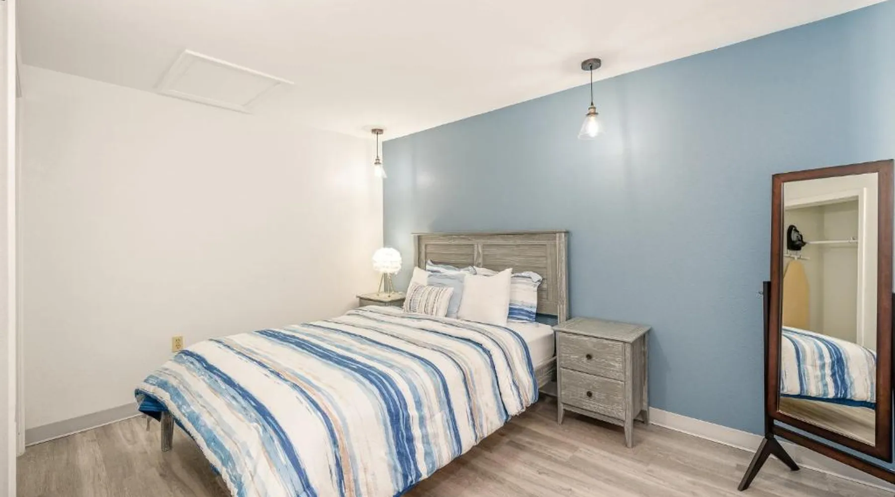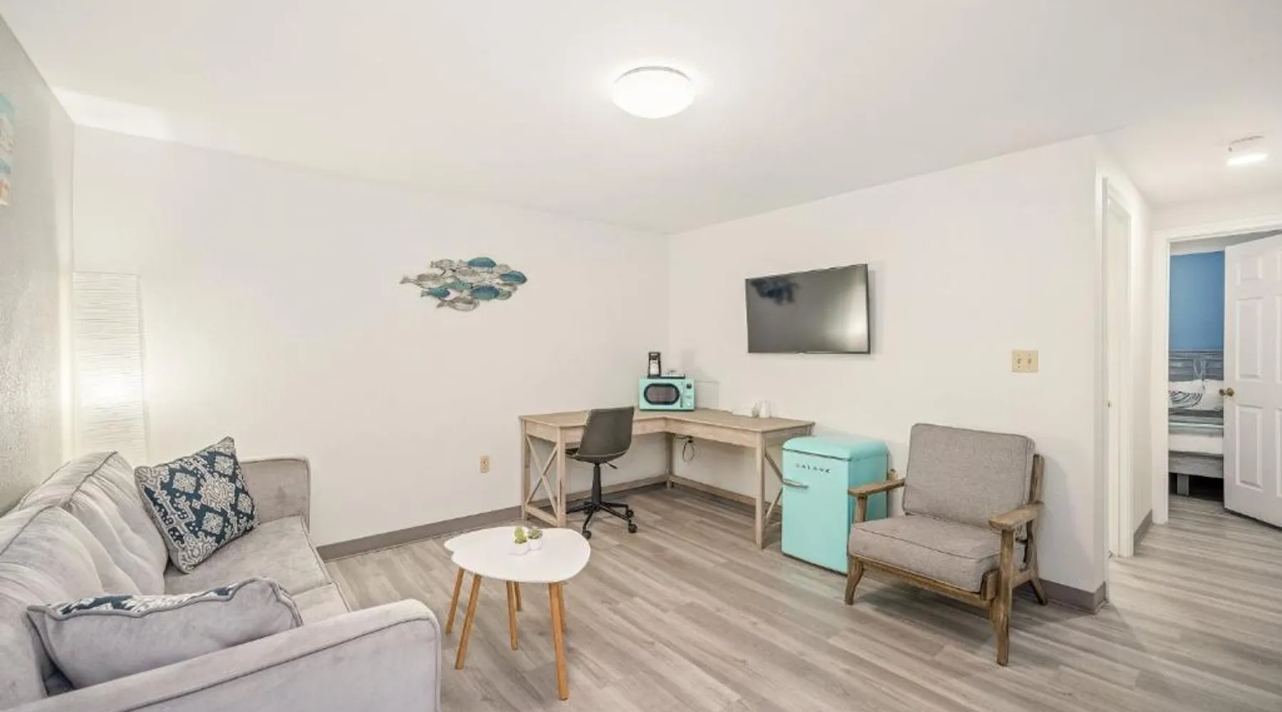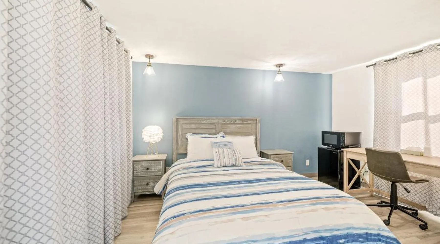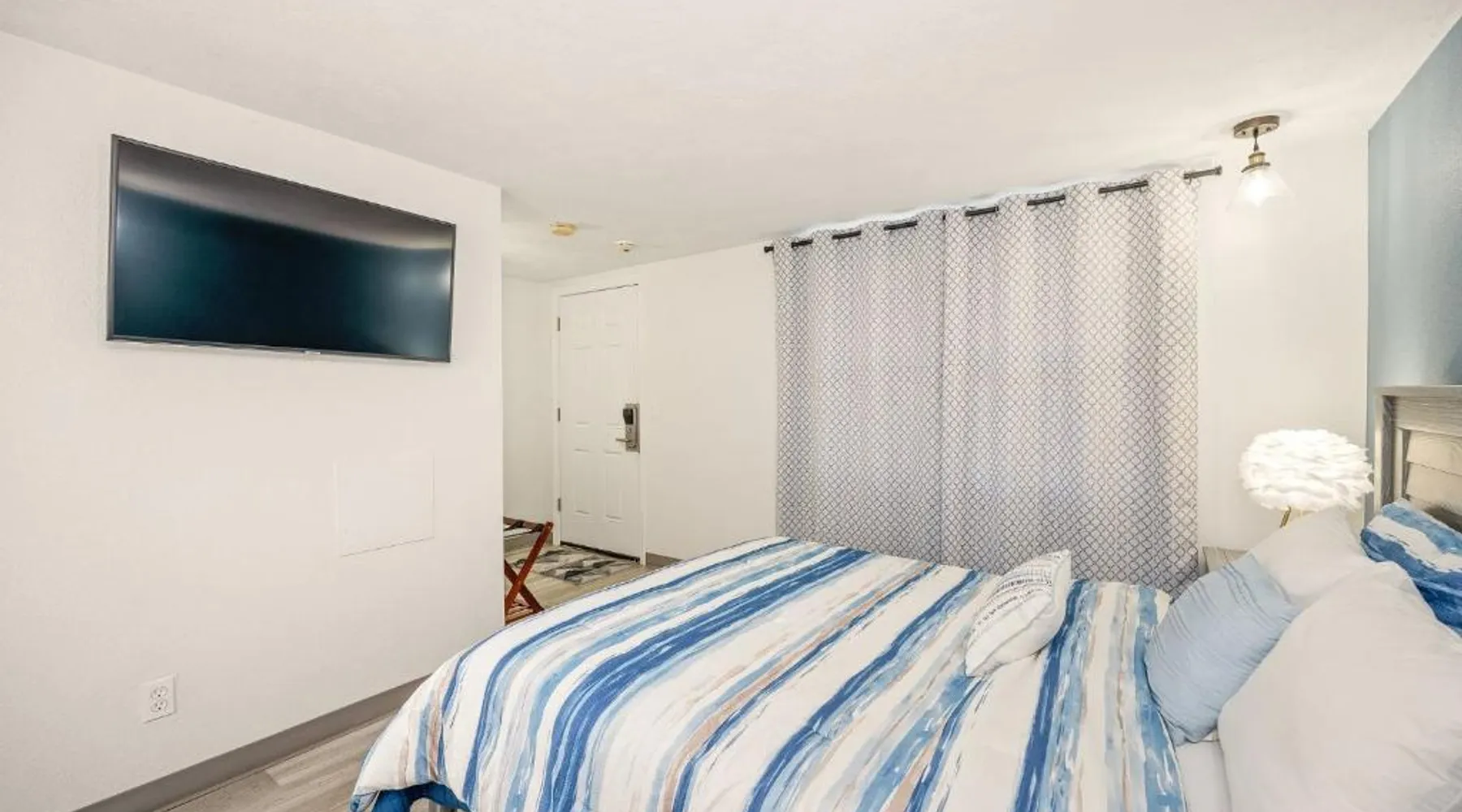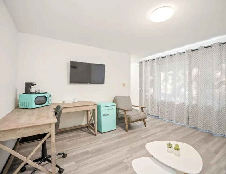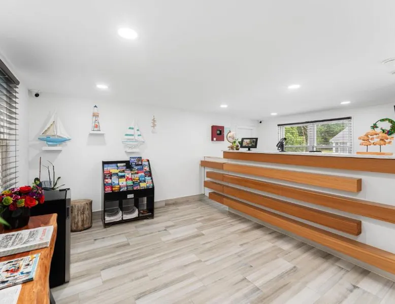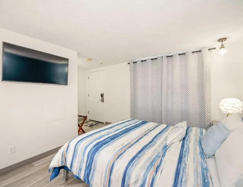 This Portsmouth motel is located 5 minutes’ drive from the Blithewold Mansion and Gardens and 10 miles from the historic Newport mansions. Facilities include free Wi-Fi and a picnic area. The Founder’s Brook Motel and Suites features cable TV and an private bathroom in every room. Guests can admire the property’s gardens and wooded landscape. The Portsmouth Founder’s Brook serves coffee on weekends. Several waterfront restaurants are within 5 minutes’ drive, including Scampi and 15 Point Road. Several beaches and Roger Williams University are within 6 minutes’ drive of the motel. This spacious and thoughtfully designed room is ideal for solo travelers or couples, comfortably accommodating up to two guests. Enjoy a blend of style and functionality, with a range of modern amenities tailored to ensure your stay is as comfortable as possible. The room features a Mini Fridge, Microwave, and a Keurig Coffee Maker for your convenience, alongside Air Conditioning and Heating to keep you comfortable year-round. Unwind while watching your favorite shows on the 43-inch LED TV or stay connected with complimentary high-speed Wi-Fi. Whether you’re here to relax, catch up on work at the dedicated desk, or enjoy a peaceful night's rest, this room has everything you need for a pleasant and hassle-free stay.