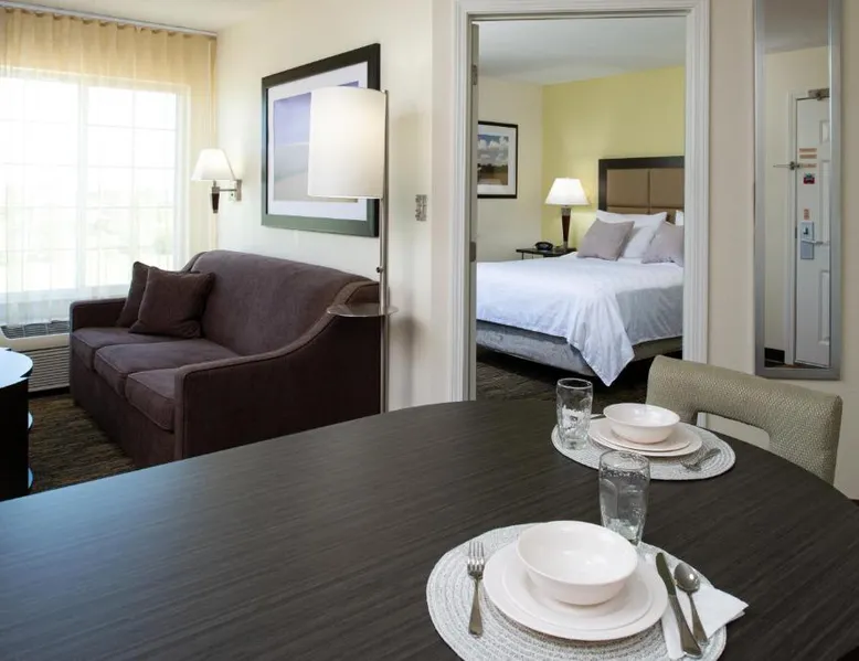 Comfortable Accommodations: Candlewood Suites Olathe by IHG in Olathe offers family rooms with air-conditioning, private bathrooms, and fully equipped kitchens. Each room includes a work desk, TV, and free WiFi. Convenient Facilities: Guests enjoy a garden, fitness room, and outdoor seating area. Additional amenities include a minimarket, coffee shop, and picnic area. Free on-site parking is available. Prime Location: Located 36 mi from Kansas City International Airport, the hotel is near attractions such as Overland Park Golf Course (9.3 mi) and Heritage Center At Mahaffie (5 mi). Guests appreciate the value for money. Studio features a kitchenette and a 32-inch flat-screen TV.