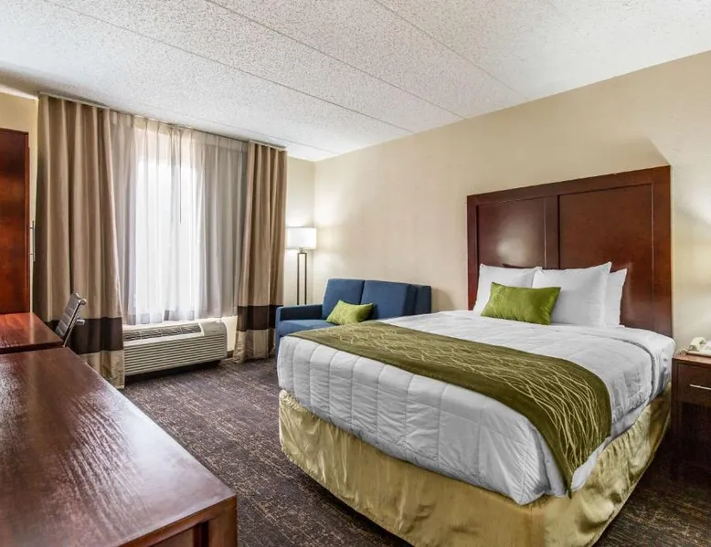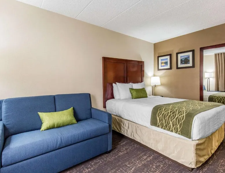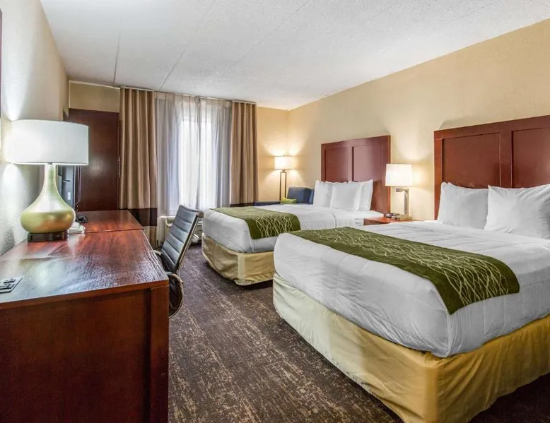 The Comfort Inn College Park North hotel in Beltsville, Maryland is just off Interstate 95 located between Washington, D.C. and Baltimore, MD. The hotel is only minutes from College Park, Silver Spring and Laurel. The surrounding area offers a variety of entertainment venues, shopping centers, antique stores and specialty shops. Several restaurants, cocktail lounges and coffee shops are in the vicinity; some can be found within walking distance to the hotel. Enjoy full-service hotel features and amenities like, free coffee, free wireless high-speed Internet access, free newspaper, free local calls and free parking. After a busy day of meetings or an exciting day of sightseeing, guests of this Beltsville, MD hotel are invited to relax by the seasonal outdoor pool. Be sure to take advantage of the on-site exercise room. The business center provides guests with a public computer with Internet access, and copy and fax service. There are seven meeting and banquet rooms on the premises that can accommodate up to 93 people for most business or social functions. Providing free toiletries, this quadruple room includes a private bathroom with a walk-in shower, a bath and a hairdryer. The quadruple room provides air conditioning, a tea and coffee maker, a wardrobe, heating and a flat-screen TV with cable channels. The unit offers 2 beds.