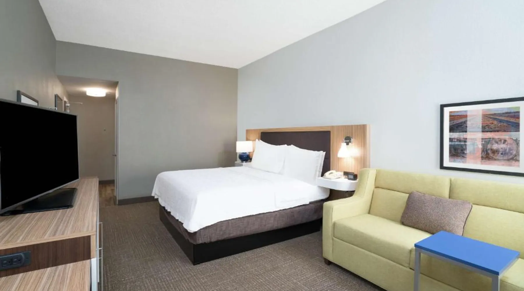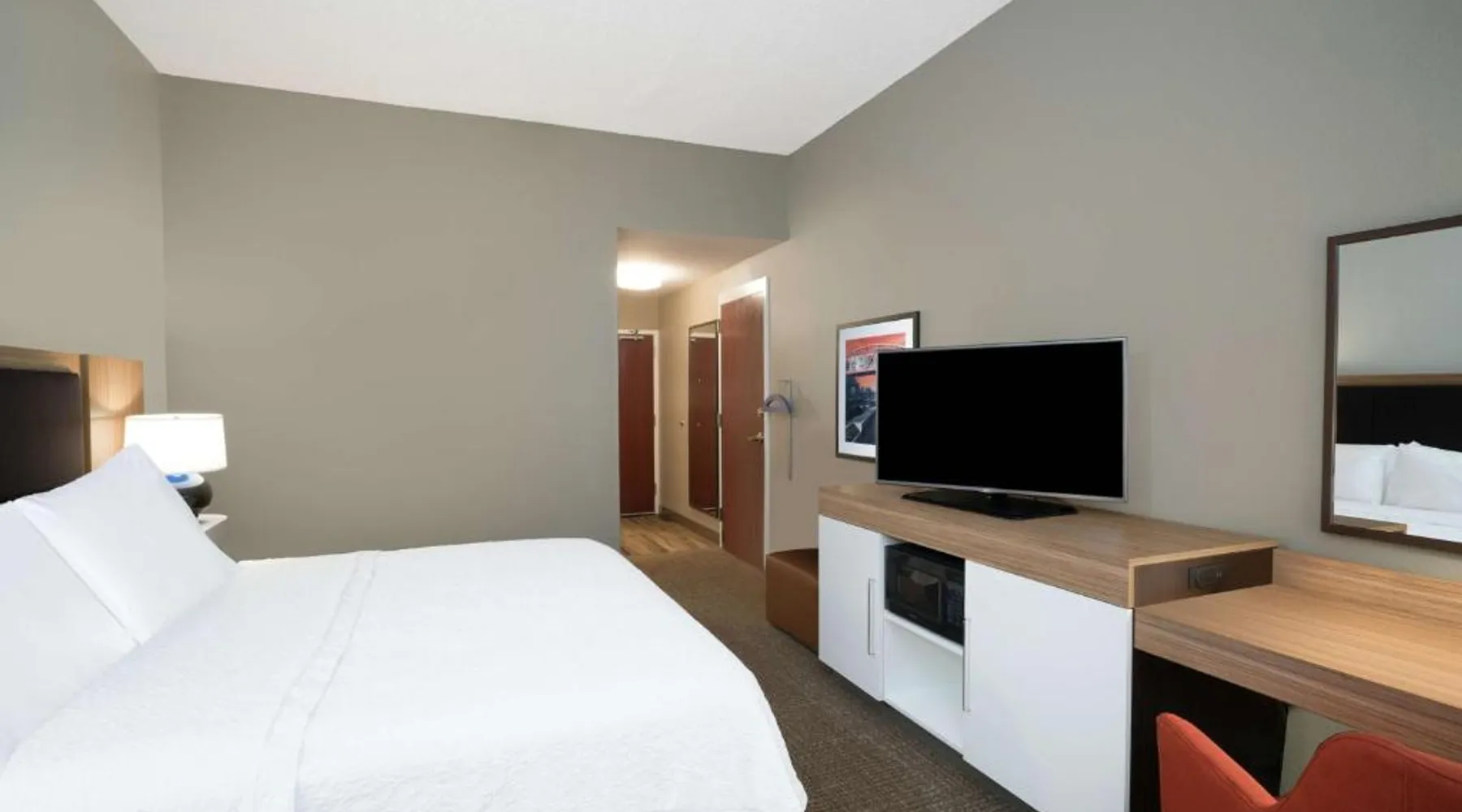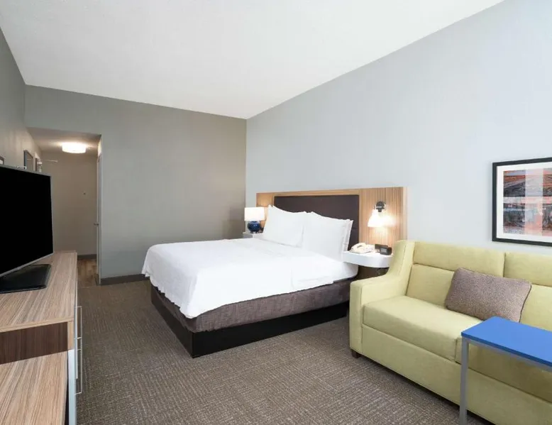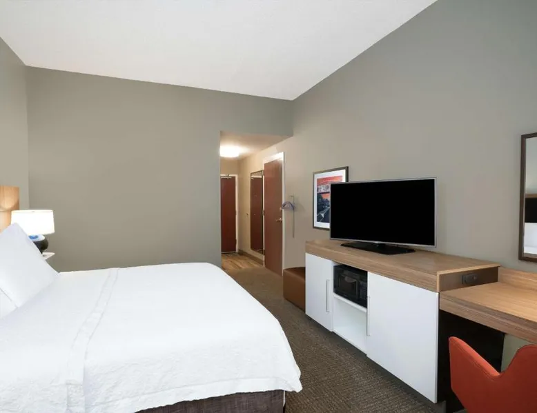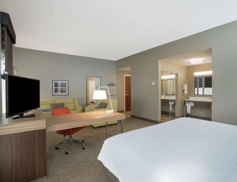 Comfortable Accommodations: Hampton Inn Huntsville-Madison in Madison offers family rooms with free WiFi, air-conditioning, and modern amenities. Each room includes a refrigerator, microwave, tea and coffee maker, and a work desk. Leisure Facilities: Guests can enjoy an outdoor swimming pool and a fitness room. The hotel provides a free airport shuttle service to Huntsville International Airport, 2.5 mi away. Dining Options: A complimentary American buffet breakfast is served daily, featuring warm dishes, juice, and fruits. Additional amenities include a 24-hour front desk, free on-site parking, and a elevator. Local Attractions: Nearby attractions include Toyota Field (3.1 mi), University of Alabama in Huntsville (8.7 mi), and Southern Adventures (12 mi). Scuba diving is available in the surrounding area. Spacious studio features a living area with a sofa bed, dining table and flat-screen TV. Rates are based on 2 guests. A maximum of 6 guests can stay in this room. Please refer to the policies for fees that will apply for additional guests