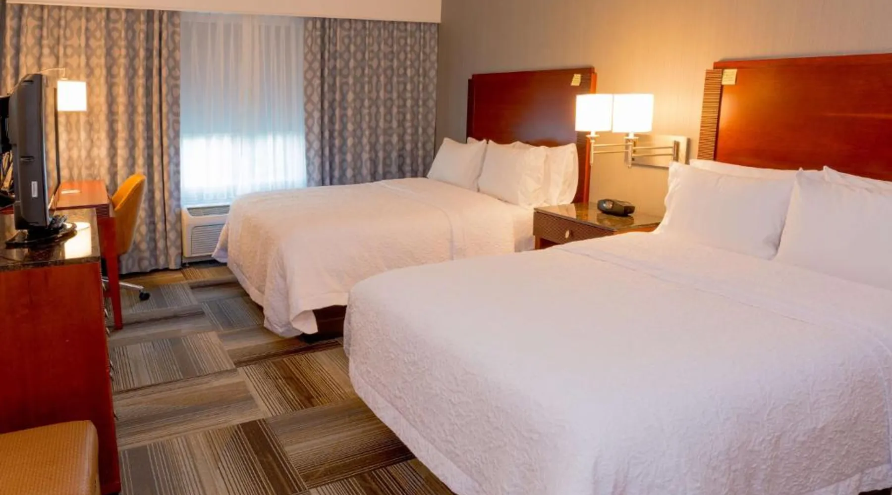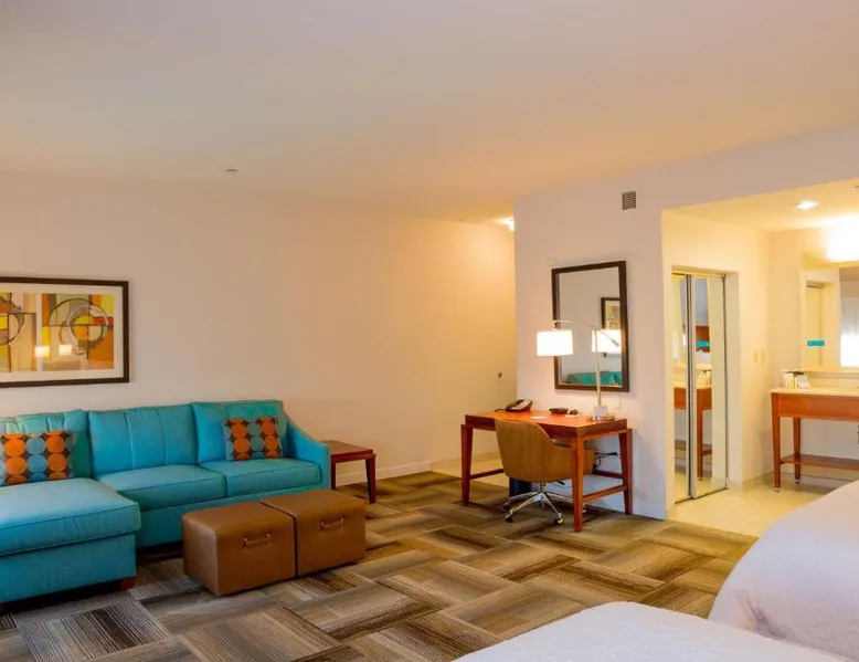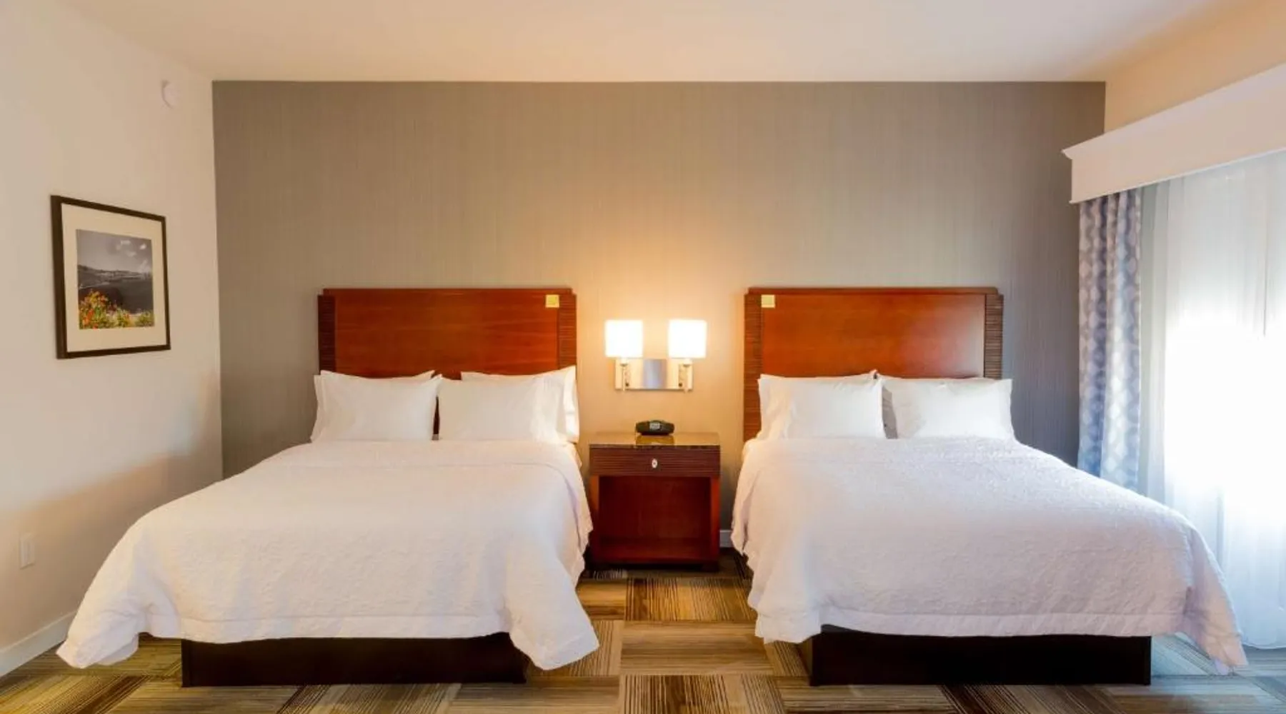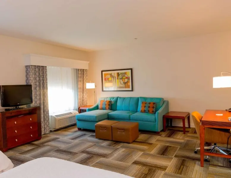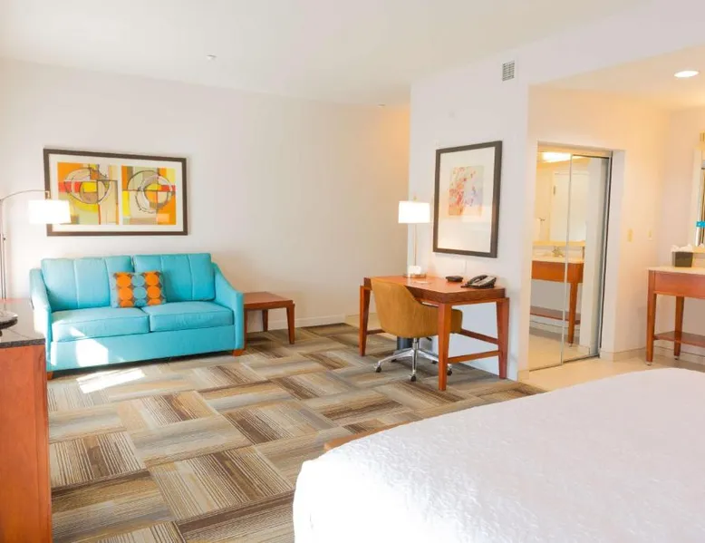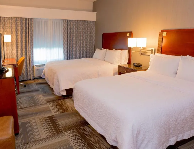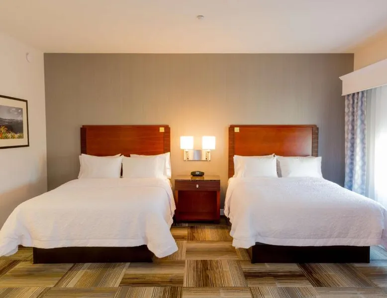 This hotel is 6 miles from downtown Corona and 8 miles from downtown Riverside. It has an outdoor pool, hot tub, gym and rooms with 32-inch flat-screen TVs. Hampton Inn & Suites Riverside/Corona East rooms include a work desk and a coffee maker. The rooms include free Wi-Fi. Hampton Inn Corona provides guests with a daily breakfast. The hotel has an on-site convenience store. Riverside Hampton Inn is one mile from La Sierra University. Disneyland is 30 miles from the hotel. Ontario International Airport is 22 miles from the hotel. This quadruple room offers a tea and coffee maker and a flat-screen TV. The unit has 2 beds.