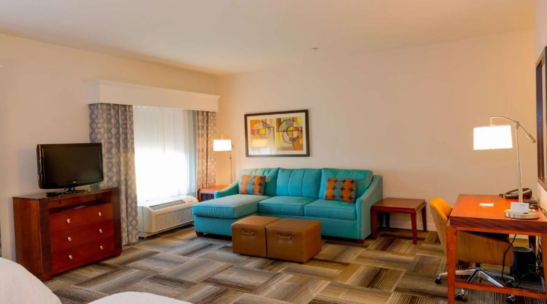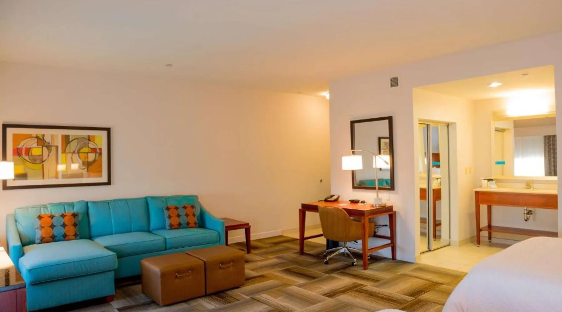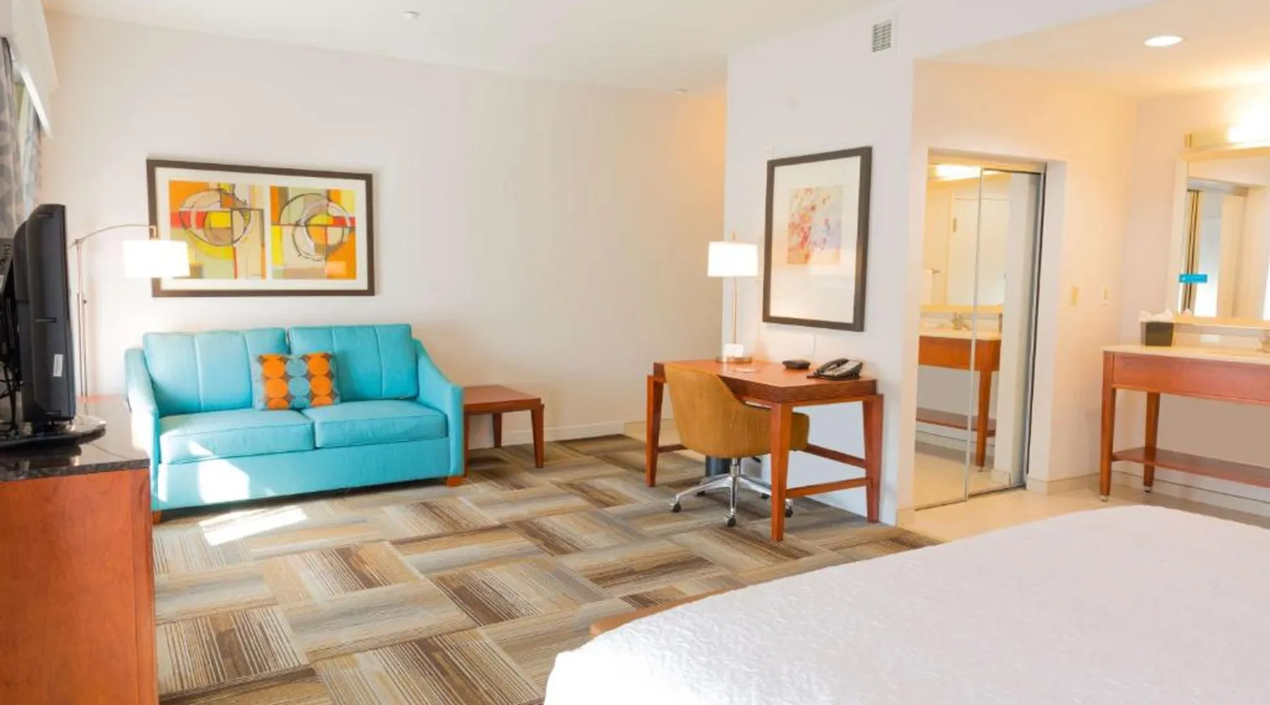 This hotel is 6 miles from downtown Corona and 8 miles from downtown Riverside. It has an outdoor pool, hot tub, gym and rooms with 32-inch flat-screen TVs. Hampton Inn & Suites Riverside/Corona East rooms include a work desk and a coffee maker. The rooms include free Wi-Fi. Hampton Inn Corona provides guests with a daily breakfast. The hotel has an on-site convenience store. Riverside Hampton Inn is one mile from La Sierra University. Disneyland is 30 miles from the hotel. Ontario International Airport is 22 miles from the hotel. This quadruple room offers a tea and coffee maker and a flat-screen TV. The unit has 2 beds.