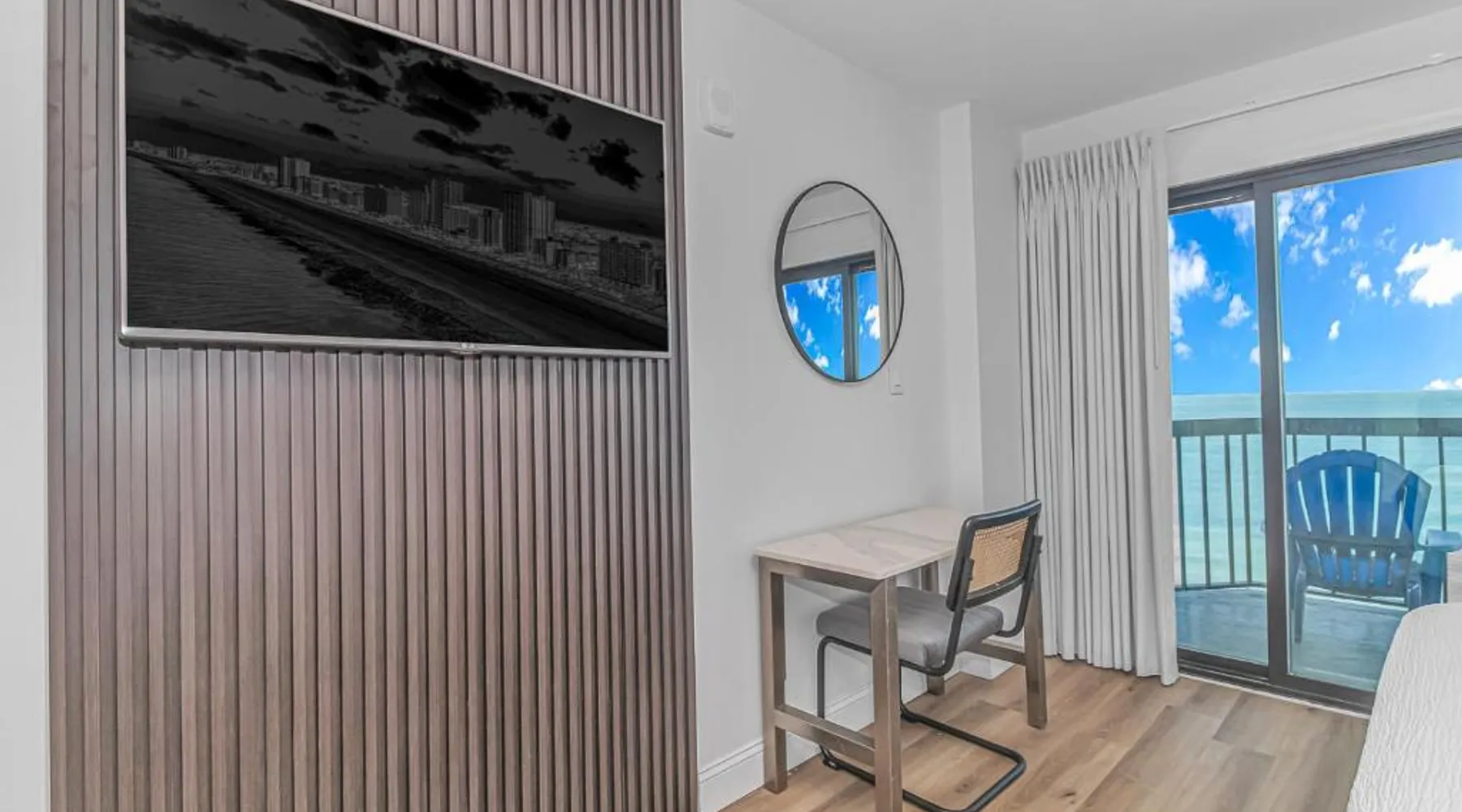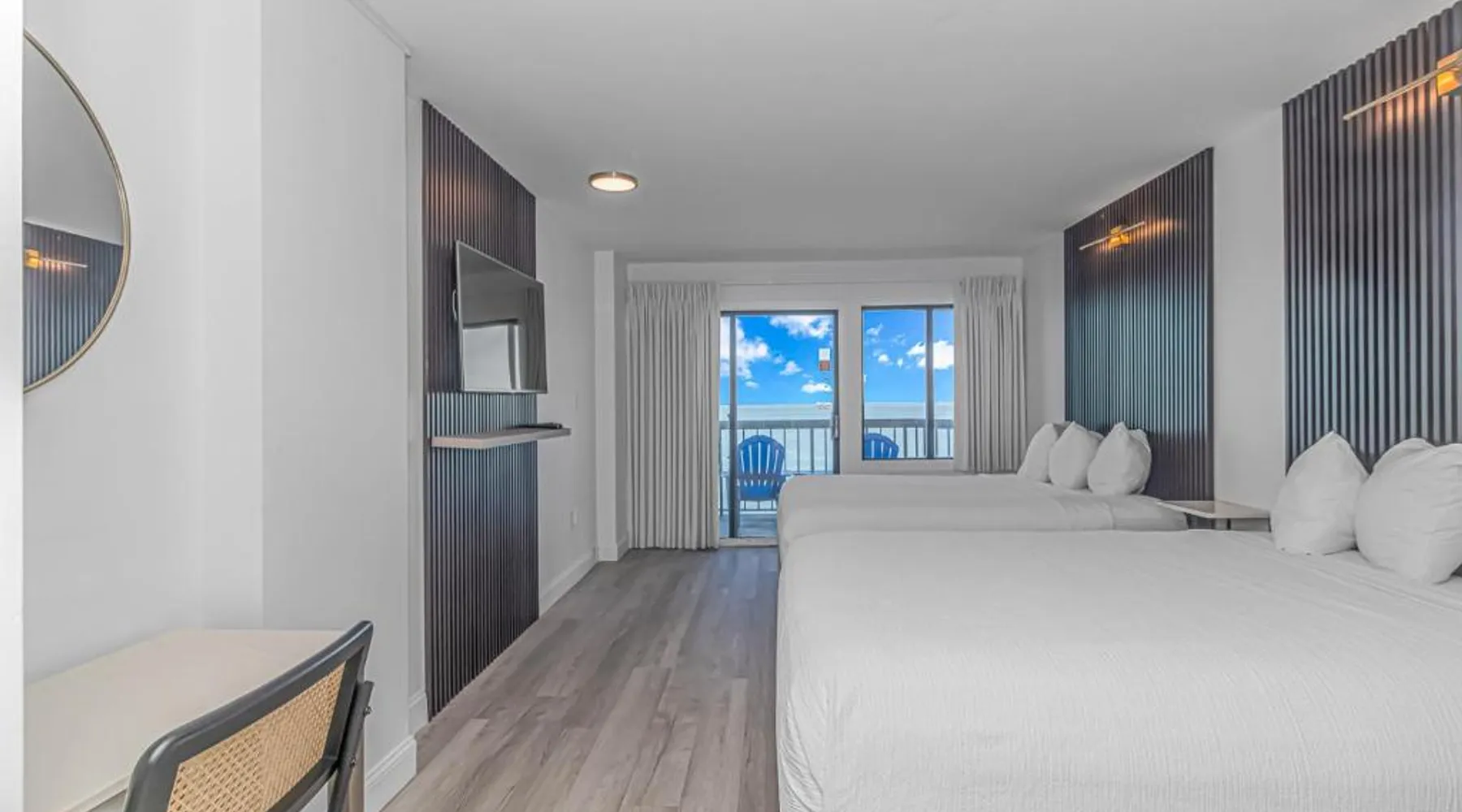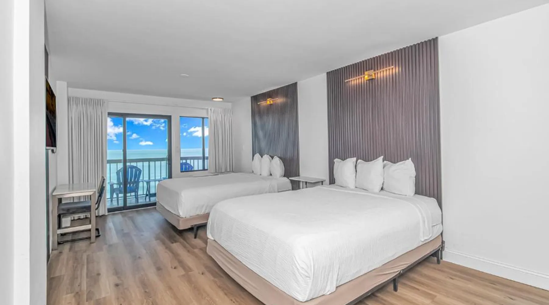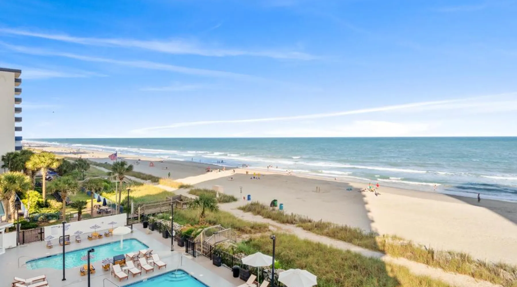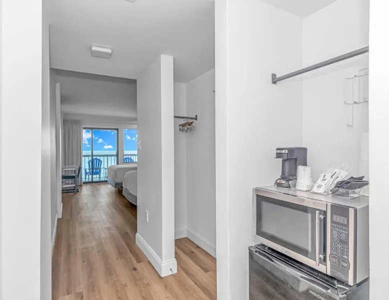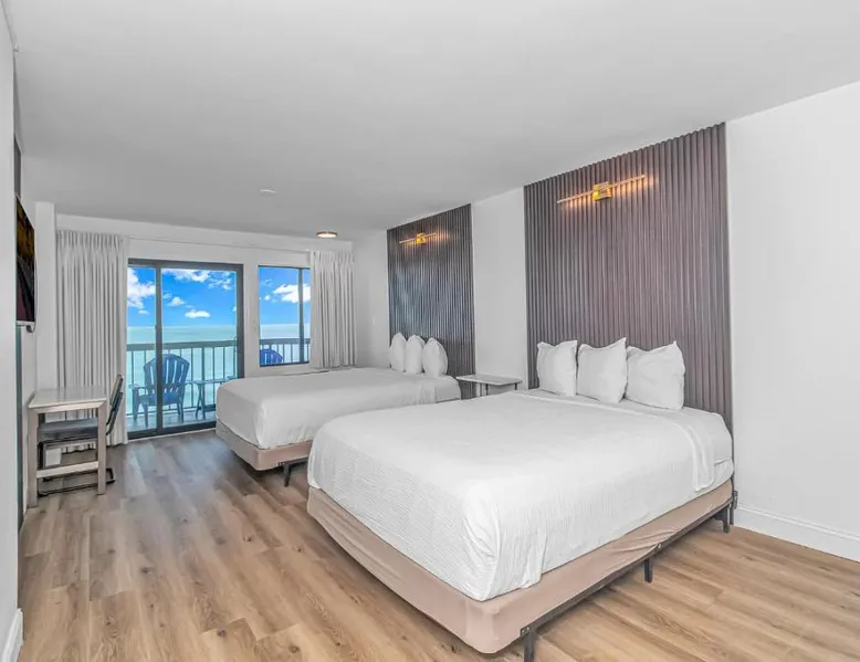 Beachfront Location: Grande Beach Resort in Myrtle Beach offers direct beachfront access with stunning sea views. Guests can relax on the sun terrace or swim in the pool with a view. Comfortable Accommodations: Rooms feature air-conditioning, private balconies, and modern amenities such as free WiFi, flat-screen TVs, and private bathrooms. Family rooms and kitchenettes cater to all needs. Dining Experience: The family-friendly restaurant serves American and international cuisines for lunch and dinner. Breakfast includes warm dishes, pancakes, and cheese. Additional facilities include a bar and coffee shop. Leisure Activities: Guests can enjoy spa facilities, a fitness center, and a kids' pool. The resort offers a variety of activities including live music, outdoor seating, and a minimarket. Nearby Attractions: Located 1.2 mi from Myrtle Beach International Airport, the resort is a short walk from Myrtle Beach and Midway Park. Other attractions include The Franklin G Burroughs Art Museum and Family Kingdom Amusement Park. The pool with a view is the standout feature of this suite. This spacious suite includes 1 living room, 1 separate bedroom and 1 bathroom with a walk-in shower and free toiletries. The suite's kitchenette, which has a refrigerator and a microwave, is available for cooking and storing food. The air-conditioned suite offers a flat-screen TV with cable channels, a private entrance, a tea and coffee maker, a seating area as well as sea views. The unit has 2 beds.