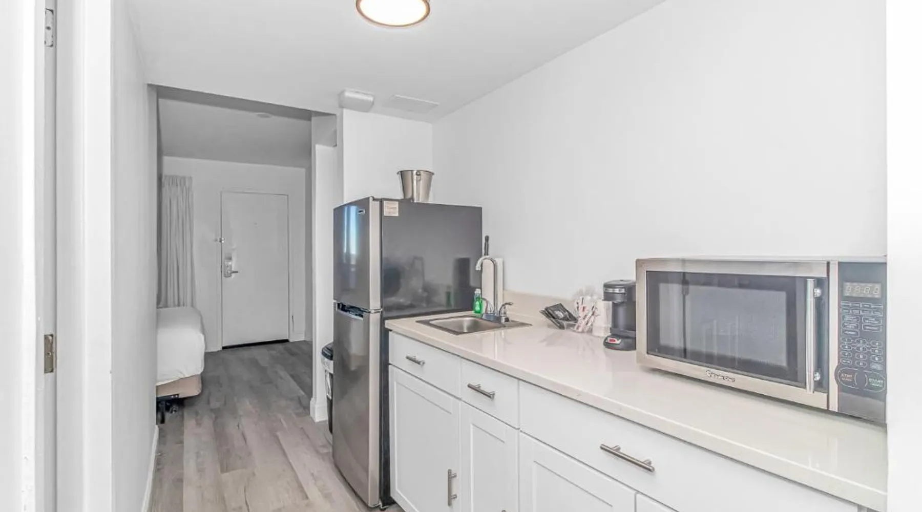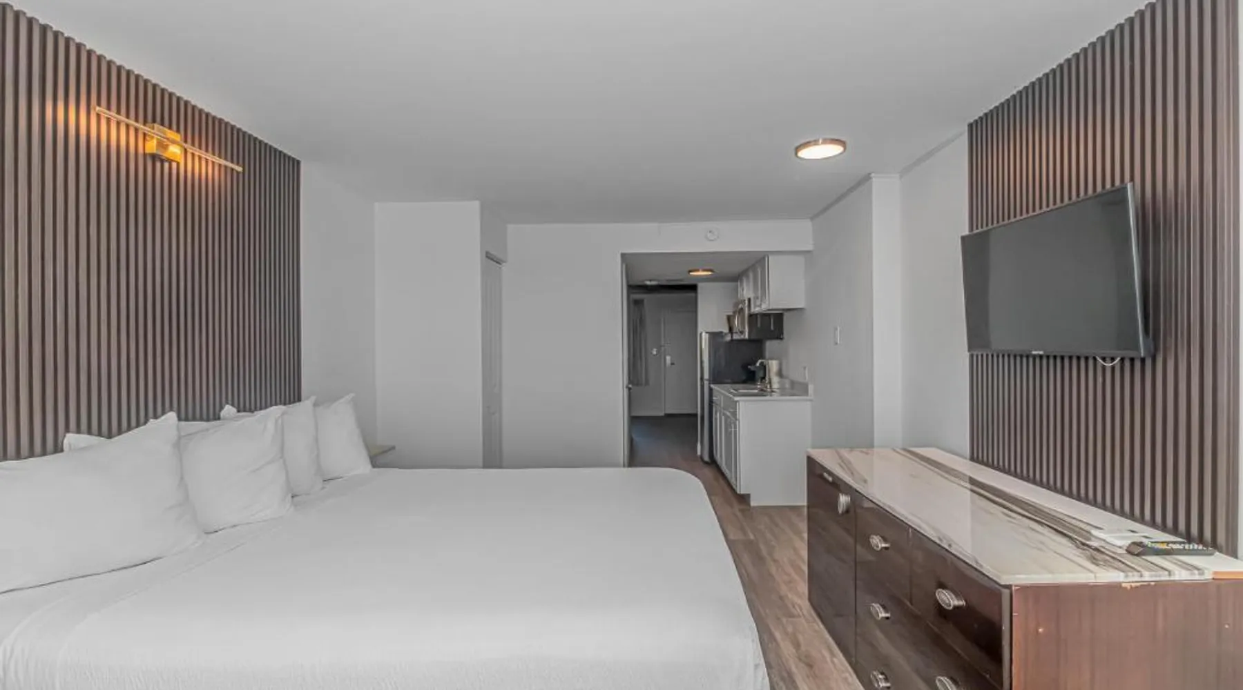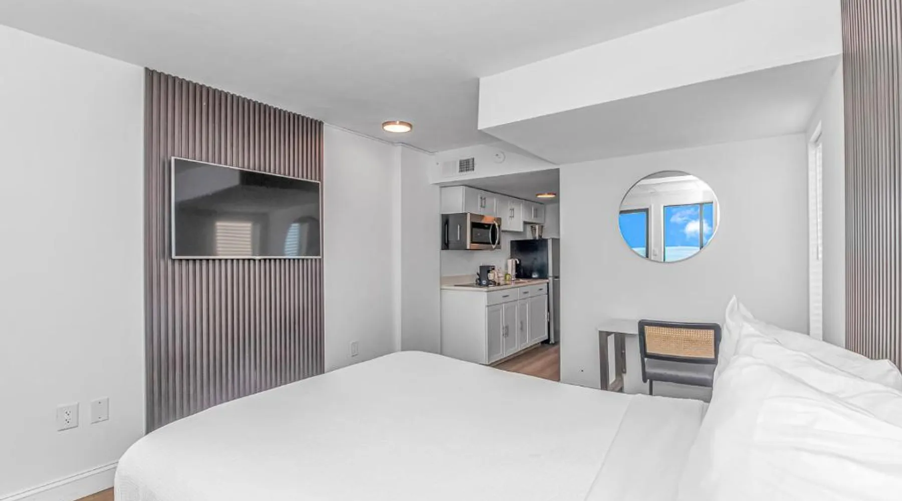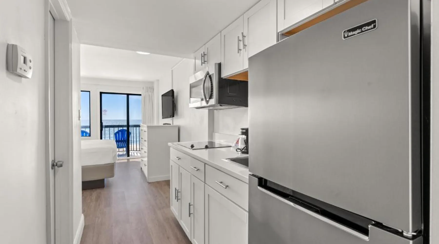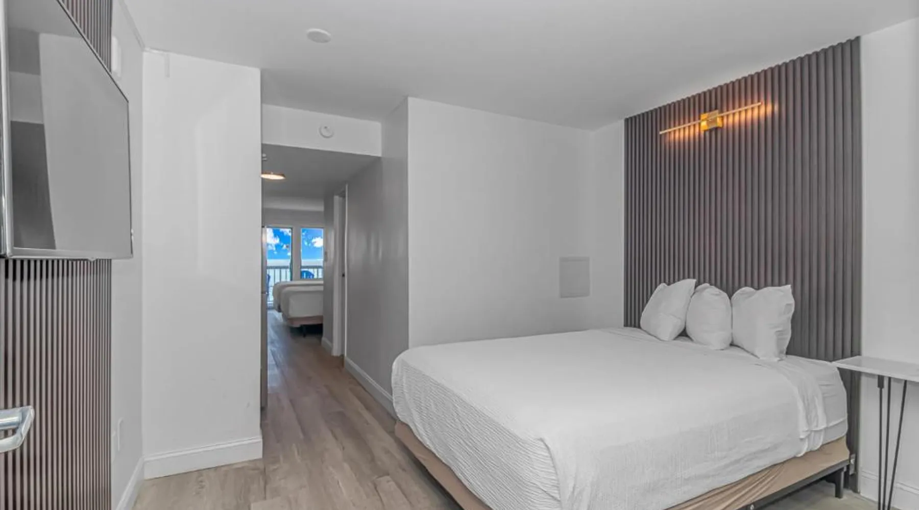 Beachfront Location: Grande Beach Resort in Myrtle Beach offers direct beachfront access with stunning sea views. Guests can relax on the sun terrace or swim in the pool with a view. Comfortable Accommodations: Rooms feature air-conditioning, private balconies, and modern amenities such as free WiFi, flat-screen TVs, and private bathrooms. Family rooms and kitchenettes cater to all needs. Dining Experience: The family-friendly restaurant serves American and international cuisines for lunch and dinner. Breakfast includes warm dishes, pancakes, and cheese. Additional facilities include a bar and coffee shop. Leisure Activities: Guests can enjoy spa facilities, a fitness center, and a kids' pool. The resort offers a variety of activities including live music, outdoor seating, and a minimarket. Nearby Attractions: Located 1.2 mi from Myrtle Beach International Airport, the resort is a short walk from Myrtle Beach and Midway Park. Other attractions include The Franklin G Burroughs Art Museum and Family Kingdom Amusement Park. The pool with a view is the standout feature of this suite. This spacious suite includes 1 living room, 1 separate bedroom and 1 bathroom with a walk-in shower and free toiletries. The suite's kitchenette, which has a refrigerator and a microwave, is available for cooking and storing food. The air-conditioned suite offers a flat-screen TV with cable channels, a private entrance, a tea and coffee maker, a seating area as well as sea views. The unit has 2 beds.