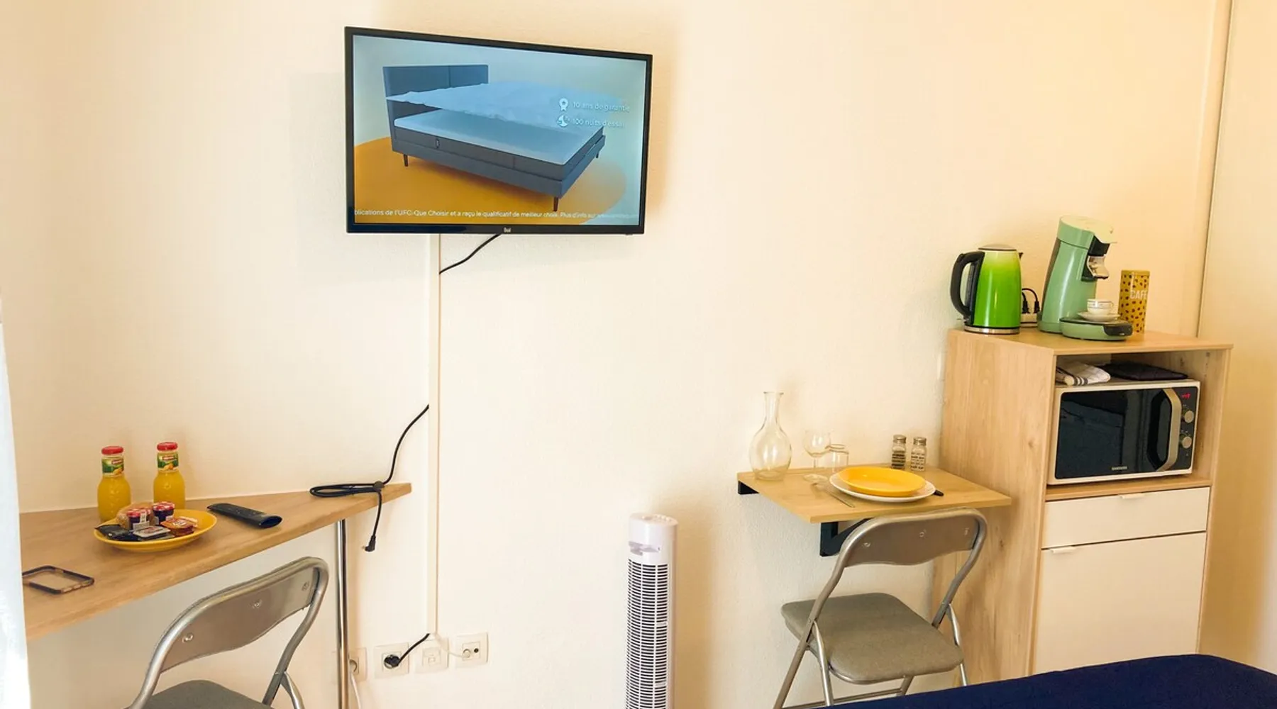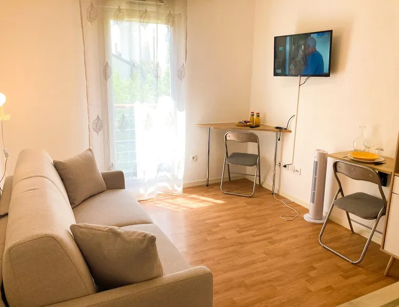 Take a moment to pause and relax in this peaceful apartment. It’s the closest Airbnb to the La Doua campus, located in Villeurbanne, a city renowned for its vibrant cultural scene. This space has been thoughtfully designed to welcome two guests. You'll also have access to a secure parking spot. We look forward to hosting you. The space The accommodation is fully equipped, with the following at your disposal: - Senseo coffee maker and pods - A kettle and tea at your disposal - A rapido-type sofa-bed, with a real mattress for optimum comfort of bedding and sheets. - A full bathroom separate from the living area - A fan - Television - Wifi access. Access to the SIRHA : By Bus C26 and tram T5 at the Eurexpo station Guest access You'll be greeted personally by a concierge from WJSBUTLER & CO.