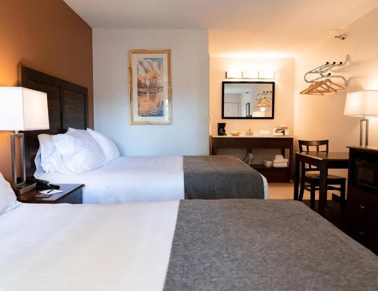 Comfortable Accommodations: Riviera Motor Lodge in Saratoga offers family rooms with private bathrooms, air-conditioning, and free WiFi. Each room includes a coffee machine, refrigerator, and TV. Relaxing Facilities: Guests can enjoy a hot spring bath, outdoor fireplace, and terrace. Additional amenities include free bicycles, outdoor seating, and picnic areas. Convenient Location: Located less than 0.6 mi from Hobo Pool Hot Springs and 102 mi from Laramie Regional Airport. Nearby attractions include fishing, hiking, and cycling. Exceptional Service: Highly rated for its attentive staff and excellent service support. Free on-site private parking and bicycle parking enhance the stay. The spacious double room provides air conditioning, a coffee machine, as well as a private bathroom featuring a walk-in shower and a hairdryer. The unit offers 2 beds.