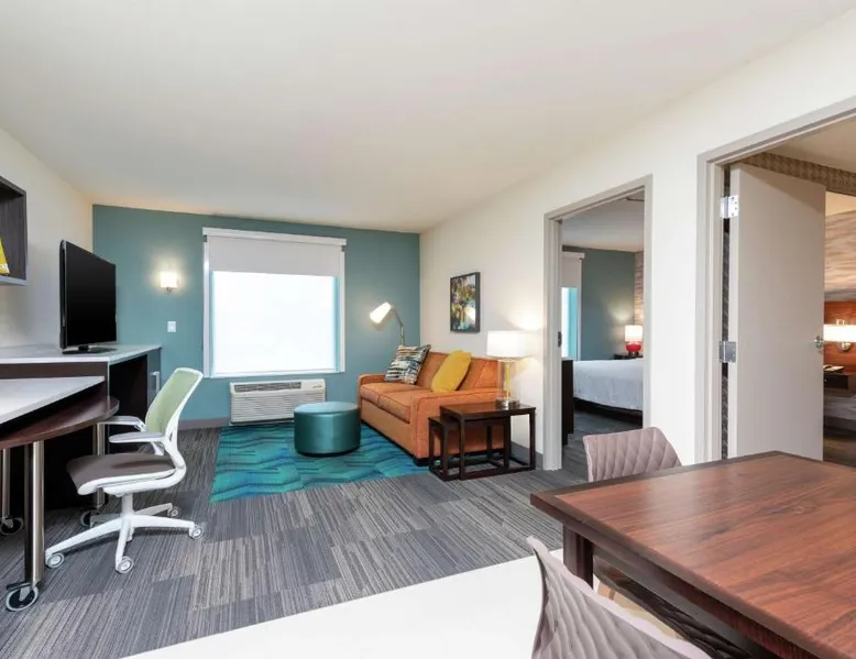 Comfortable Accommodations: Home2 Suites By Hilton Appleton, Wi in Appleton offers family rooms with air-conditioning, free WiFi, and amenities such as a sofa bed, refrigerator, and microwave. Each room includes a kitchen with a dishwasher, toaster, and kitchenware. Leisure Facilities: Guests can enjoy a saltwater and indoor swimming pool, outdoor fireplace, fitness room, and outdoor seating area. Additional amenities include a minimarket, business area, and barbecue facilities. Dining Options: A buffet breakfast is served with fresh pastries and fruits. The hotel also provides free on-site parking and a 24-hour front desk. Location and Attractions: Located 2.5 mi from Outagamie County Regional Airport, the hotel is near Fox Cities Stadium (2.4 mi), The History Museum at the Castle (4.3 mi), and Lawrence University (5 mi). Other attractions include EAA AirVenture Museum (23 mi) and National Railroad Museum (31 mi). The suite provides air conditioning, a tea and coffee maker and a seating area. The unit offers 1 bed.