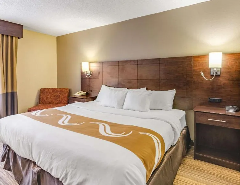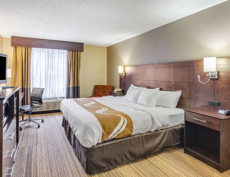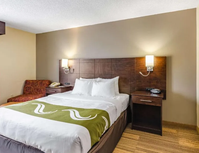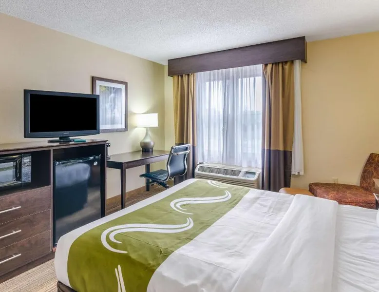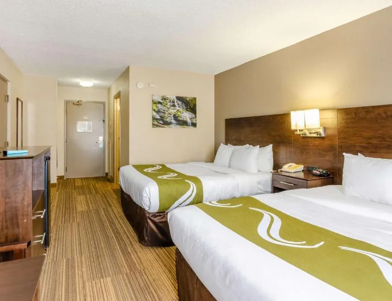 Comfortable Accommodations: Quality Inn Radford-West Blacksburg I-81 in Radford offers family rooms with free WiFi, air-conditioning, and modern amenities. Each room includes a tea and coffee maker, hairdryer, refrigerator, microwave, and TV. Leisure Facilities: Guests can enjoy spa facilities, a fitness center, indoor swimming pool, and hot tub. The property also features a business area and a 24-hour front desk. Convenient Location: Located 1.2 mi from Radford University and 40 mi from Roanoke Airport, the inn is near attractions such as Lane Stadium (15 mi) and Virginia Tech (17 mi). Free parking is available. Guest Satisfaction: Guests appreciate the room cleanliness, convenient location, and value for money. This family room offers a tea and coffee maker and a TV with cable channels. The unit has 2 beds.