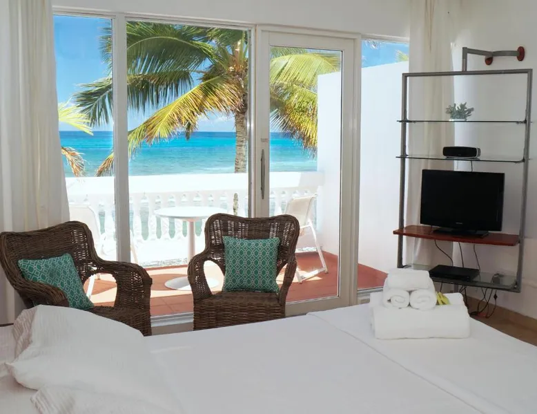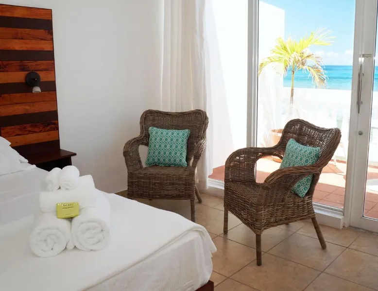 Elegant Accommodations: Bravo Beach Hotel in Vieques offers comfortable rooms with sea views, air-conditioning, private bathrooms, and modern amenities. Each room includes a refrigerator, free toiletries, and a TV. Exceptional Facilities: Guests can enjoy a swimming pool with a view, sun terrace, and free WiFi. Additional facilities include an outdoor seating area, luggage storage, and free on-site parking. Prime Location: Located 4.3 mi from Antonio Rivera Rodríguez Airport and 5 mi from Bioluminescent Bay, the hotel provides easy access to local attractions. Highly rated for its scenic location and beach access. The double room features air conditioning, a safe deposit box, a terrace with sea views as well as a private bathroom boasting a shower. The unit has 1 bed.