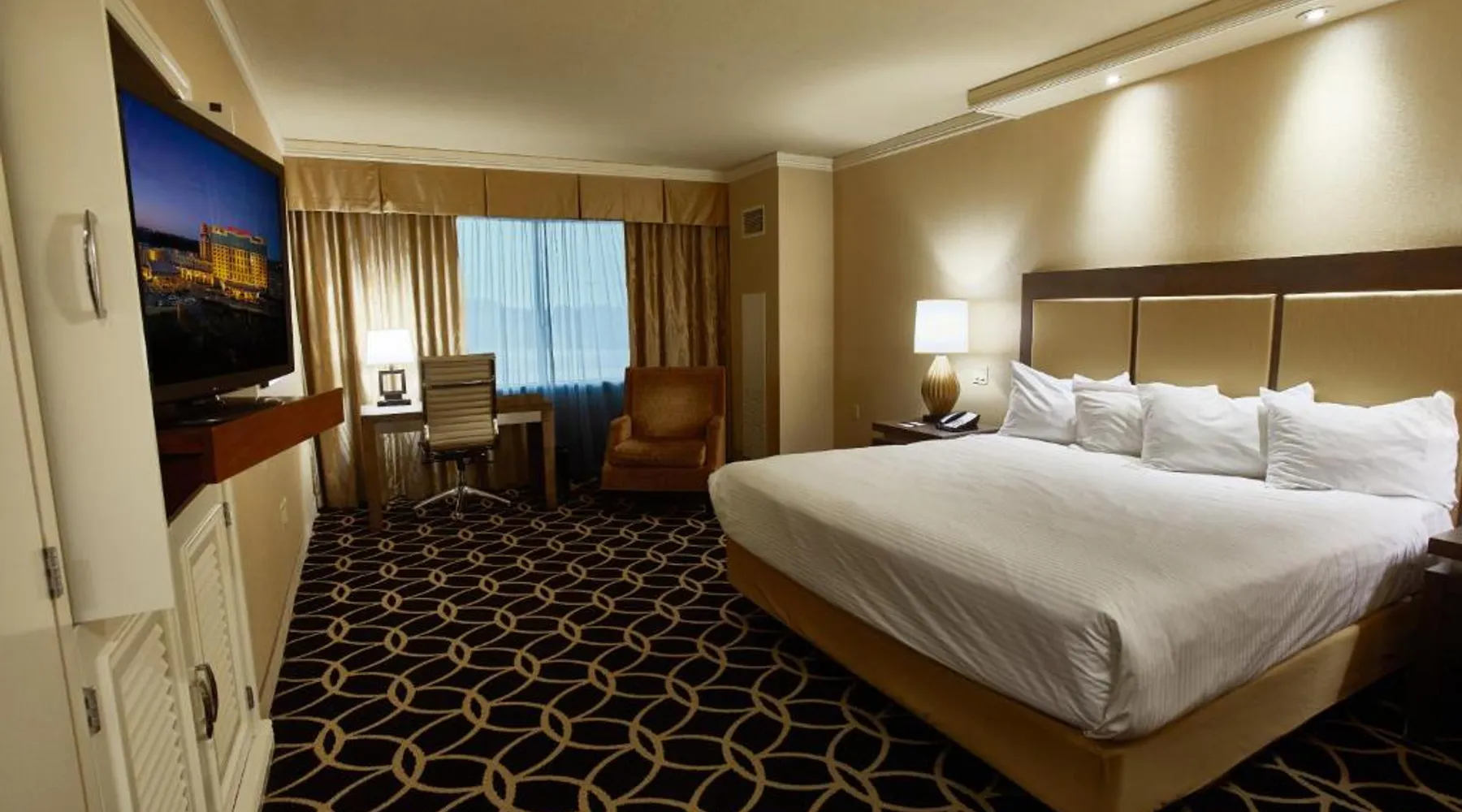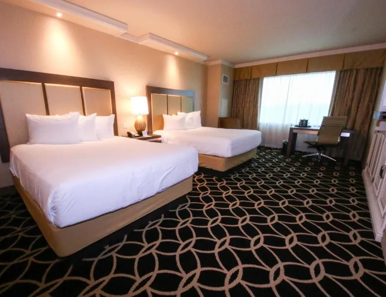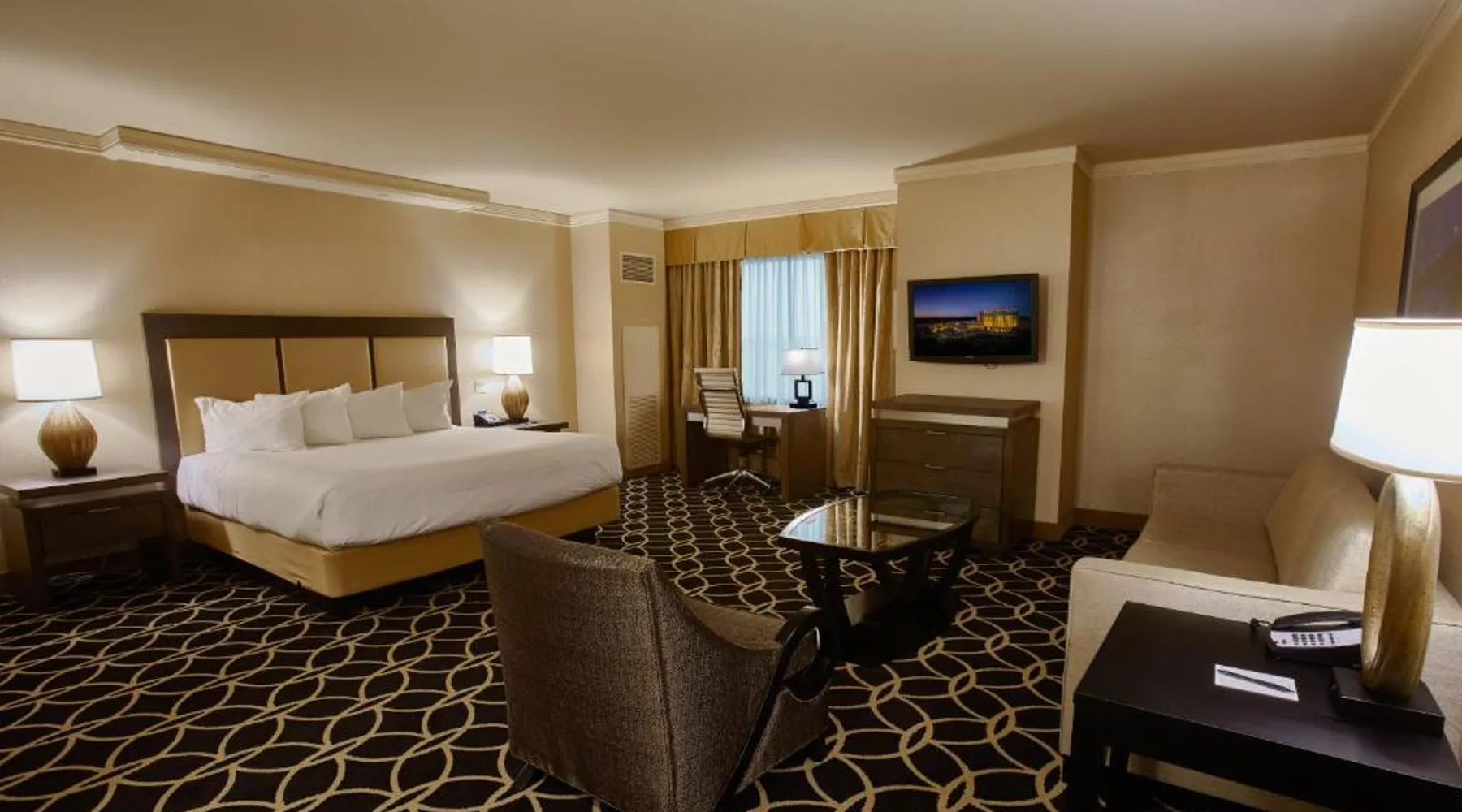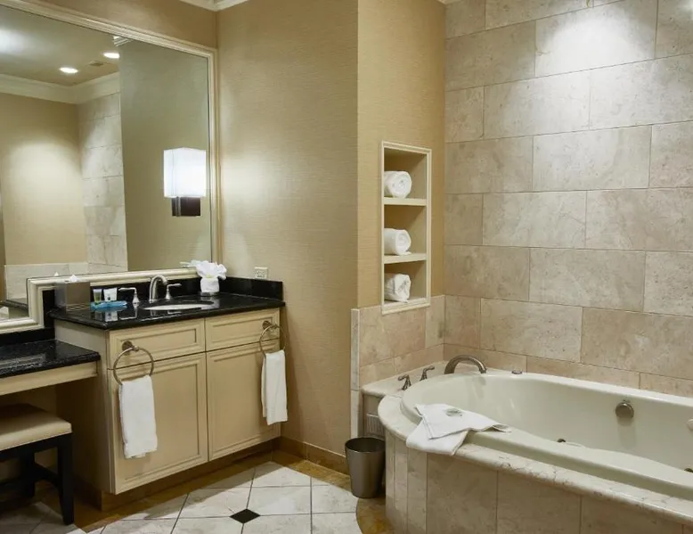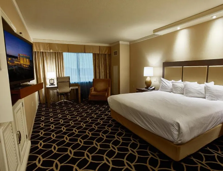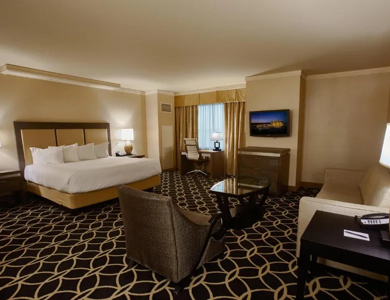 Less than 8 miles from Lambert International Airport, this St. Louis hotel features a free airport shuttle and modern rooms with free Wi-Fi. The hotel also features a 120,000-square foot casino and on-site dining options. A flat-screen TV is included in every warmly decorated room at Hollywood Casino St. Louis. A refrigerator and ironing facilities are also provided in each modern room. Hollywood Casino St. Louis offers more than 2800 slot and video poker machines, table games and a poker room. A modern fitness center is available on site. Guests can enjoy cocktails or a hearty meal in a variety of lounges and dining options provided at Hollywood Casino St. Louis. Restaurants such as Final Cut Steakhouse, Eat Up! Phat Tai, Club Aroma and Studio Bar are available on site. Charlie Gitto’s From the Hill, also located on the property, offers Italian favorites daily. We now have a sunset cafe and hot dog cart of the casino floor. St. Louis city center is less than 30 minutes’ drive from the property. The Missouri Botanical Garden is 23 miles from this hotel. Six Flags St. Louis is 29 miles away. The hot tub and spa bath are the special features of this suite. This spacious suite comes with 1 living room, 1 separate bedroom and 1 bathroom with a walk-in shower and free toiletries. The suite has parquet floors, a seating area with a flat-screen TV with cable channels, air conditioning, a coffee machine, as well as a wardrobe. The unit has 1 bed.
