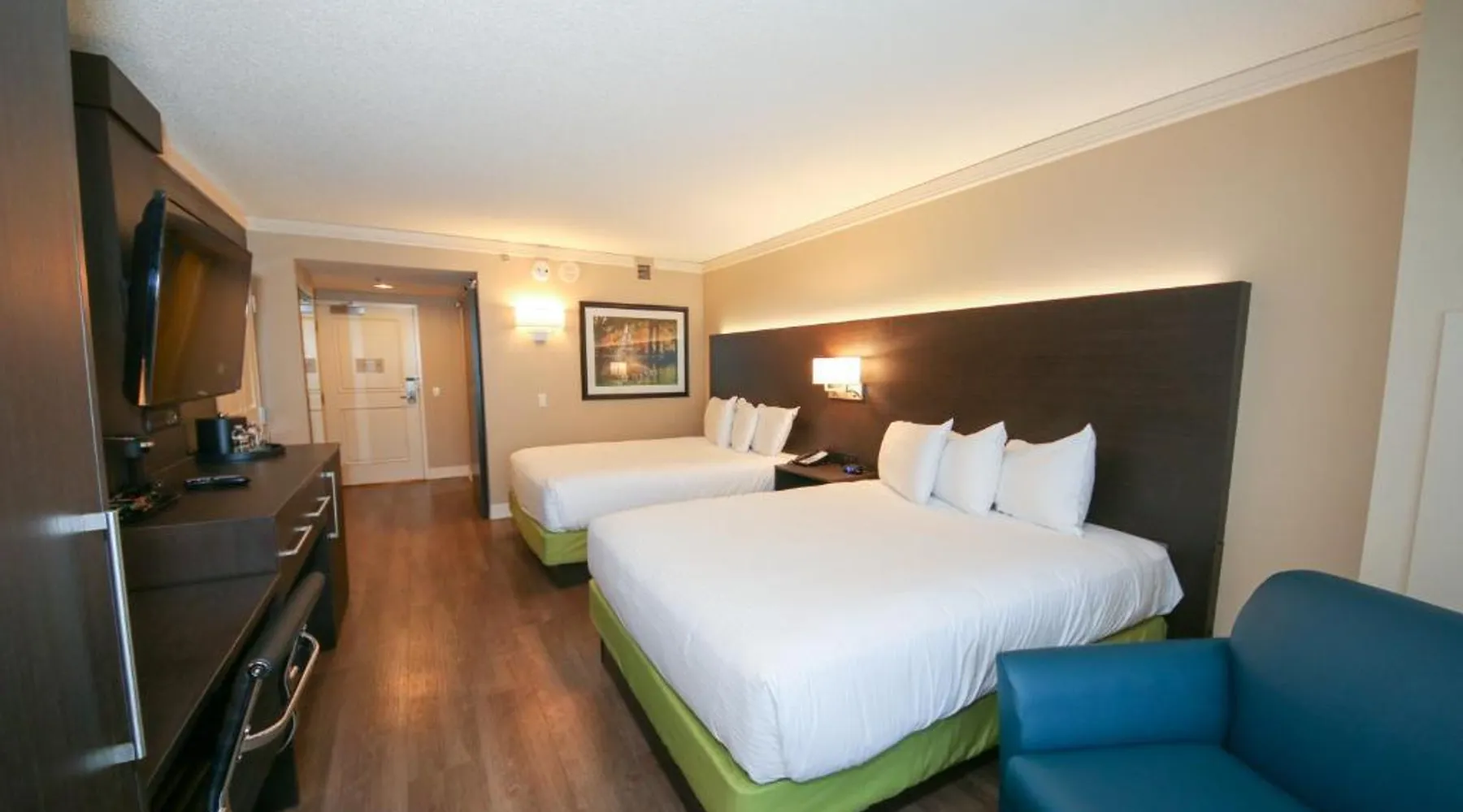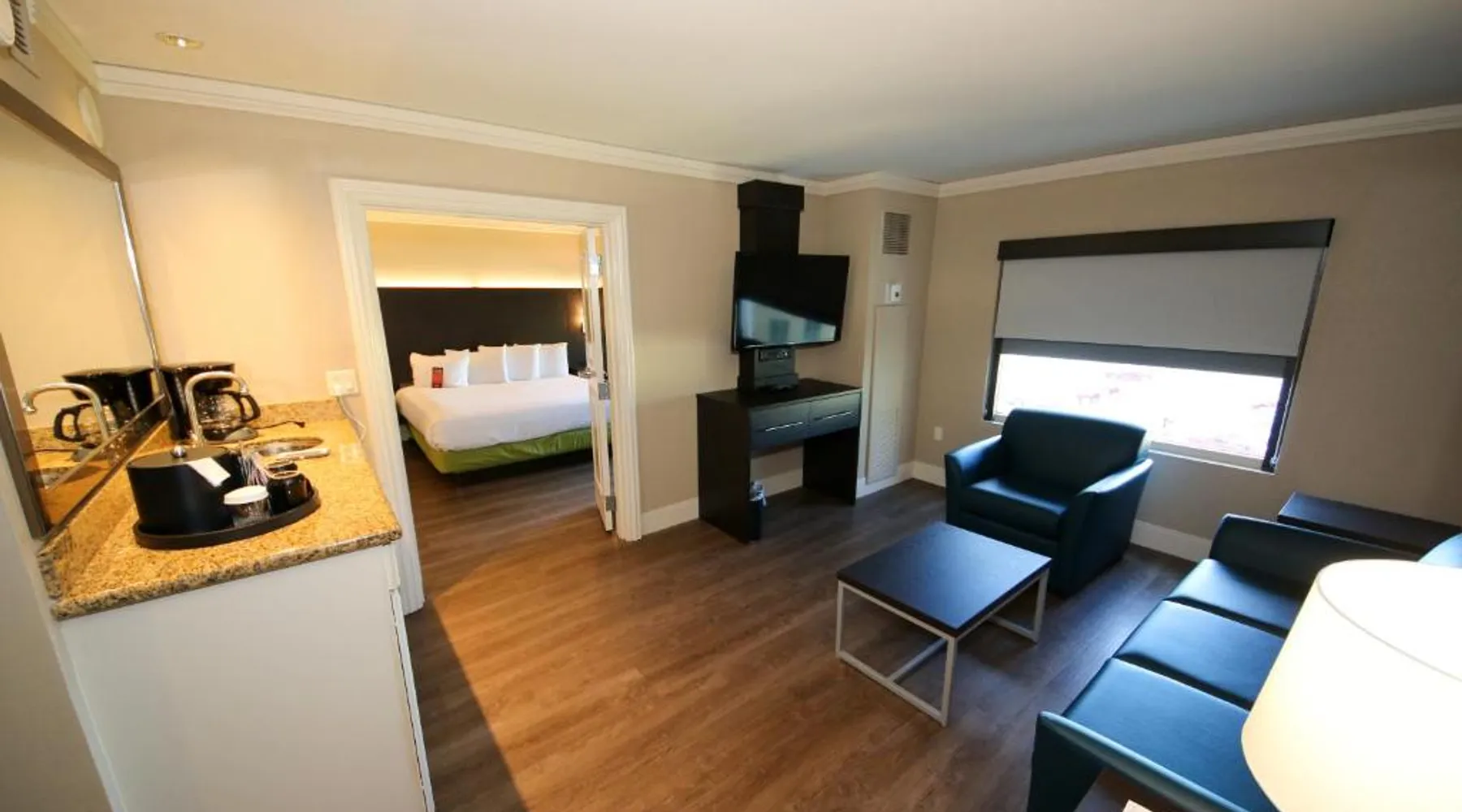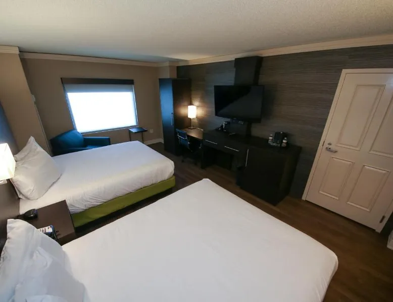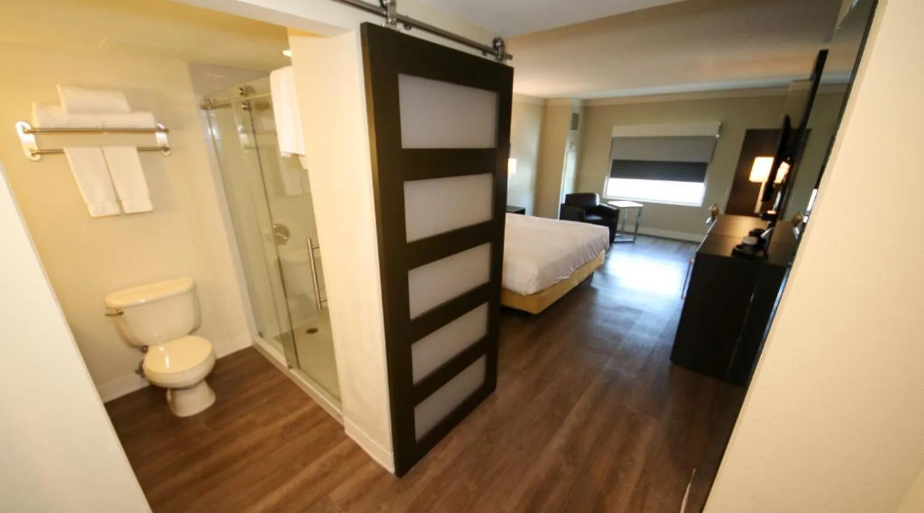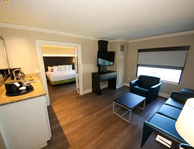 Less than 8 miles from Lambert International Airport, this St. Louis hotel features a free airport shuttle and modern rooms with free Wi-Fi. The hotel also features a 120,000-square foot casino and on-site dining options. A flat-screen TV is included in every warmly decorated room at Hollywood Casino St. Louis. A refrigerator and ironing facilities are also provided in each modern room. Hollywood Casino St. Louis offers more than 2800 slot and video poker machines, table games and a poker room. A modern fitness center is available on site. Guests can enjoy cocktails or a hearty meal in a variety of lounges and dining options provided at Hollywood Casino St. Louis. Restaurants such as Final Cut Steakhouse, Eat Up! Phat Tai, Club Aroma and Studio Bar are available on site. Charlie Gitto’s From the Hill, also located on the property, offers Italian favorites daily. We now have a sunset cafe and hot dog cart of the casino floor. St. Louis city center is less than 30 minutes’ drive from the property. The Missouri Botanical Garden is 23 miles from this hotel. Six Flags St. Louis is 29 miles away. The hot tub and spa bath are the special features of this suite. This spacious suite comes with 1 living room, 1 separate bedroom and 1 bathroom with a walk-in shower and free toiletries. The suite has parquet floors, a seating area with a flat-screen TV with cable channels, air conditioning, a coffee machine, as well as a wardrobe. The unit has 1 bed.