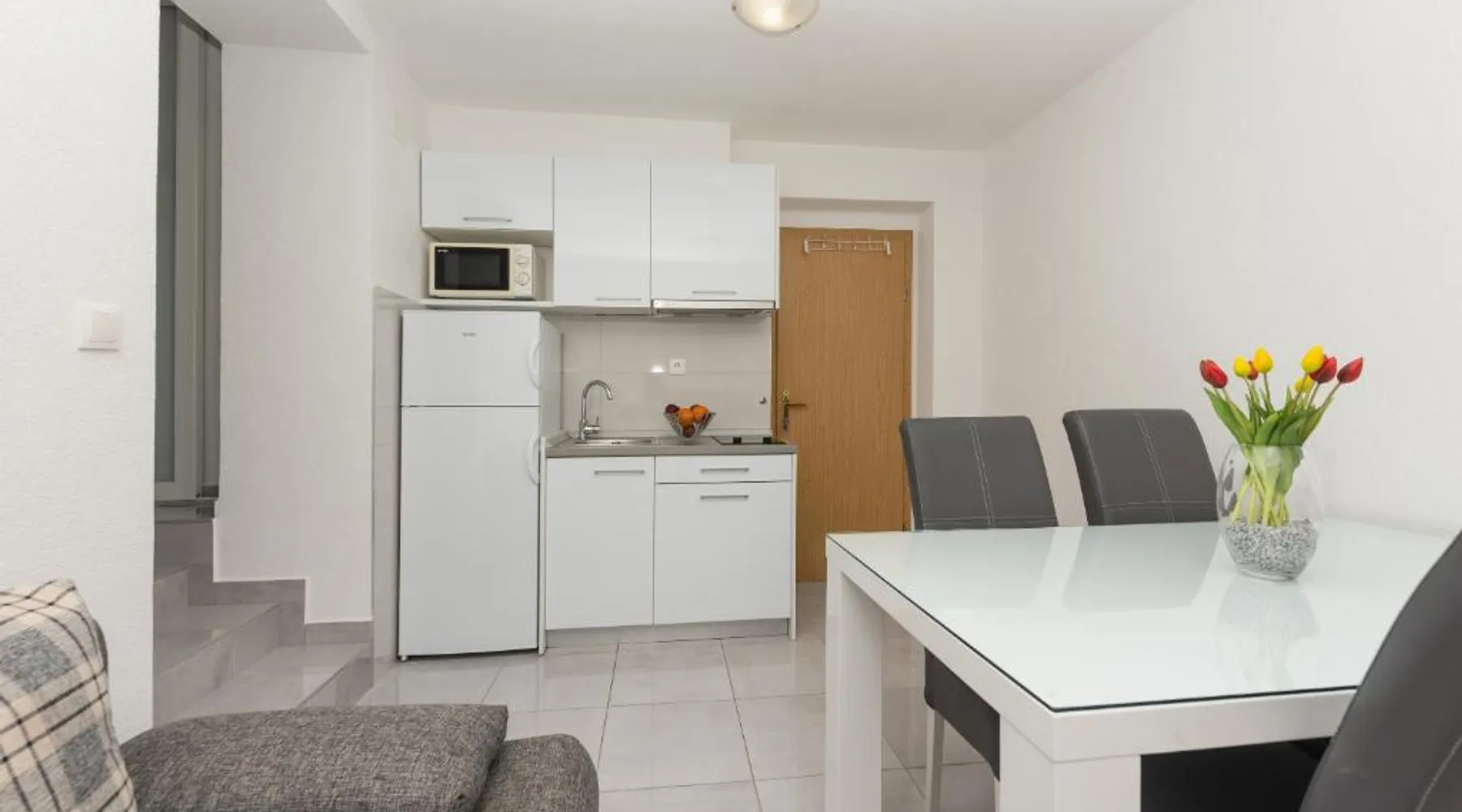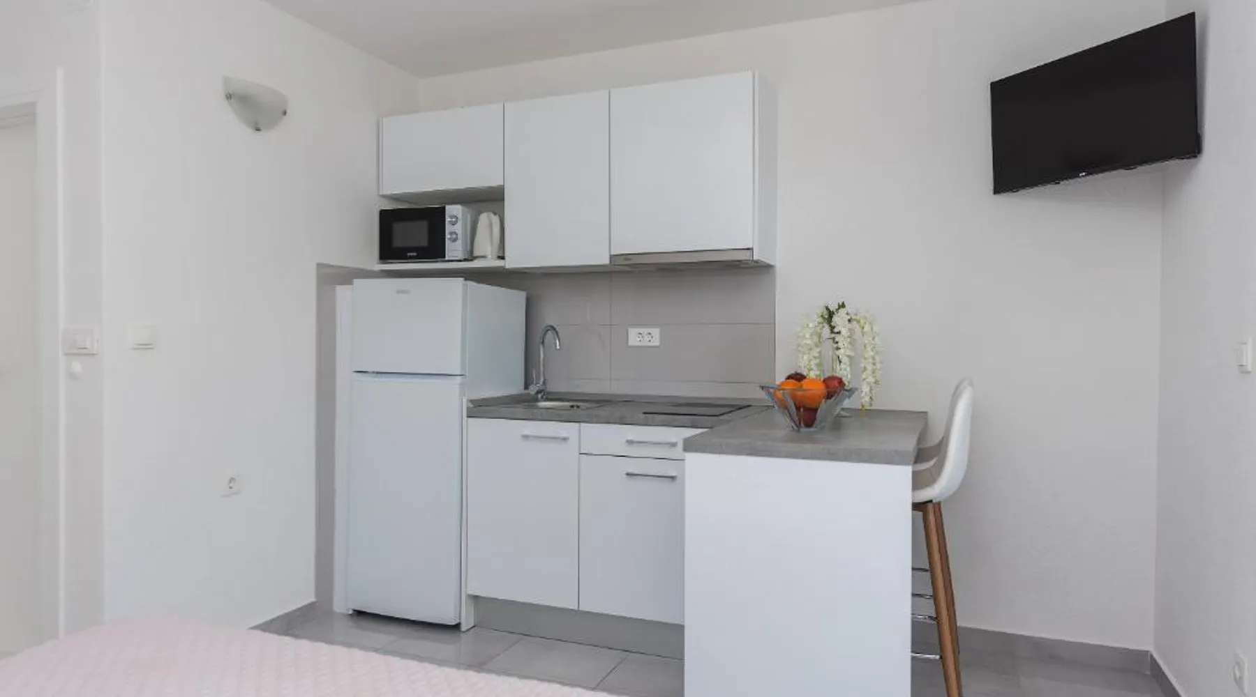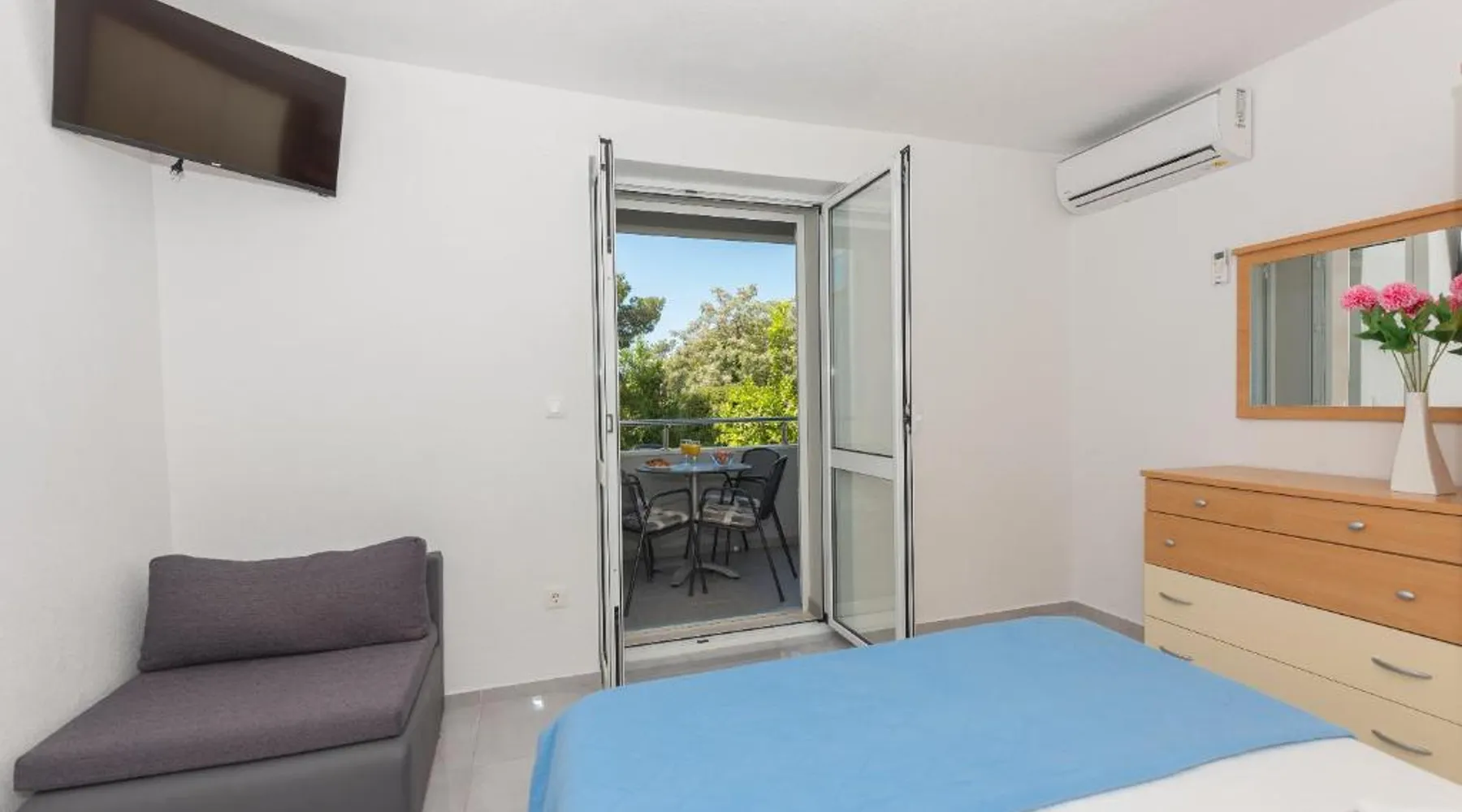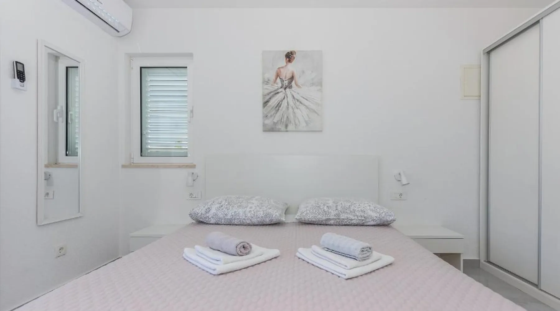 Beachfront Location: Apartments M&A in Makarska offers direct beachfront access and stunning sea views. Guests enjoy free WiFi throughout the property, ensuring connectivity and relaxation. Comfortable Accommodations: Each apartment features air-conditioning, a private bathroom with a bath or shower, and a fully equipped kitchen. Additional amenities include a terrace, balcony, and free on-site private parking. Convenient Services: Private and express check-in and check-out services are available. The property provides free toiletries, a dining area, and a washing machine, catering to all guest needs. Local Attractions: Makarska Beach is just a few steps away, while Makarska Main Bus Station is a 7-minute walk. Other nearby points include Makarska Riva Promenade (0.6 mi) and St. Peter Lighthouse (14-minute walk). Brac Airport is 21 mi from the property. Featuring a private entrance, this air-conditioned apartment consists of 1 living room, 2 separate bedrooms and 1 bathroom with a bath and a shower. In the fully equipped kitchen, guests will find a stovetop, a refrigerator, a dishwasher and kitchenware. Boasting a balcony with sea views, this apartment also provides a washing machine and a flat-screen TV with satellite channels. The unit offers 2 beds.