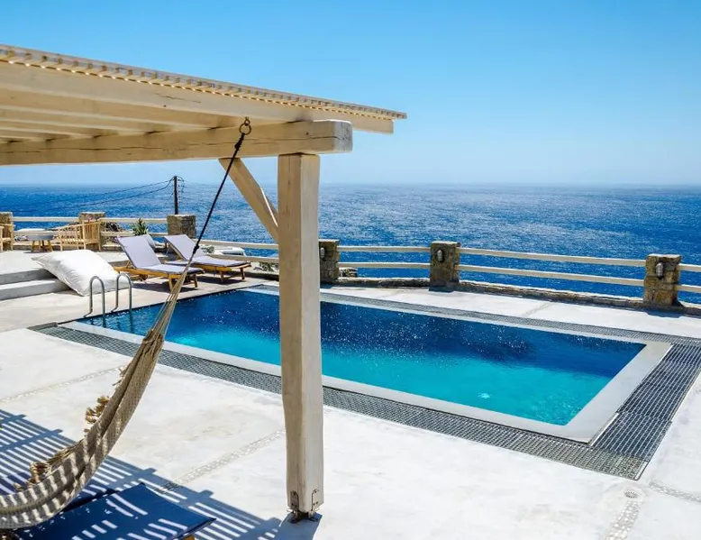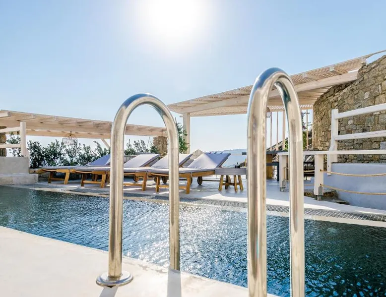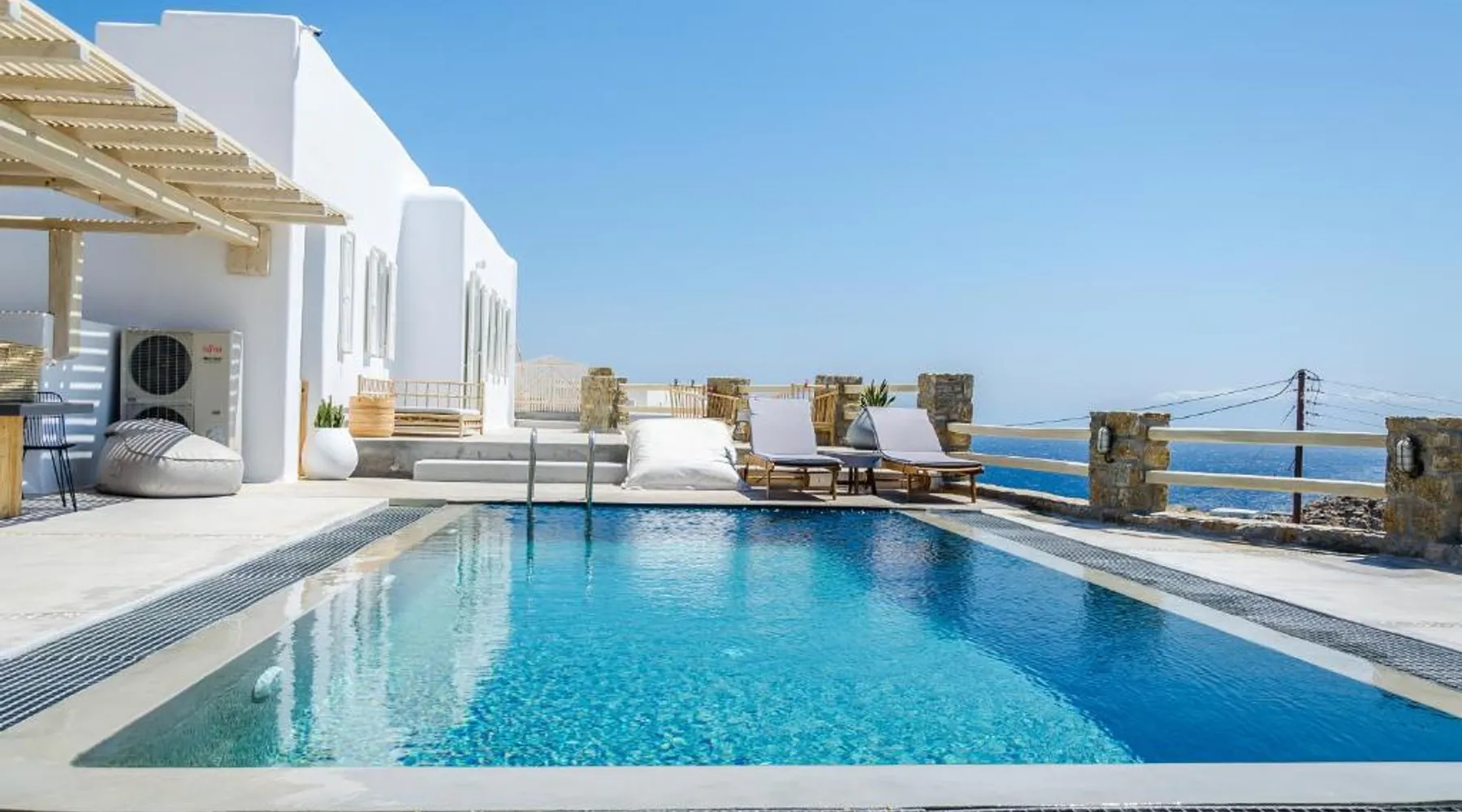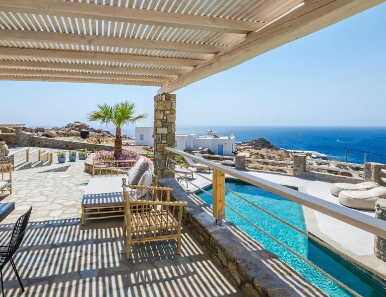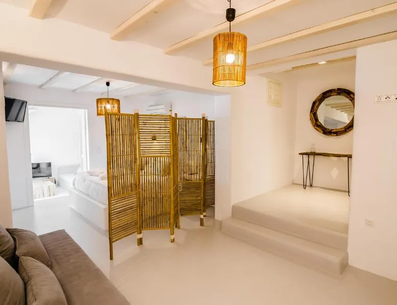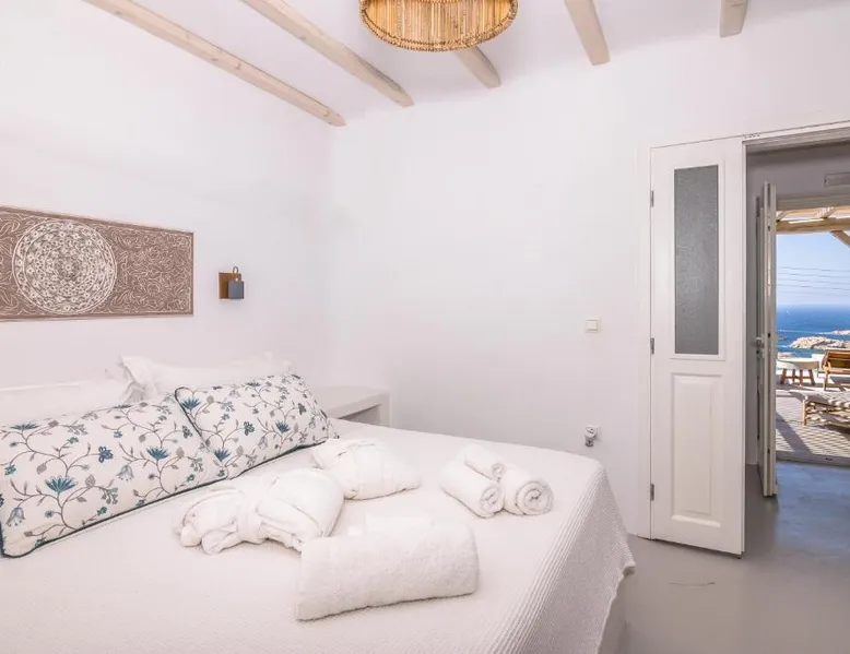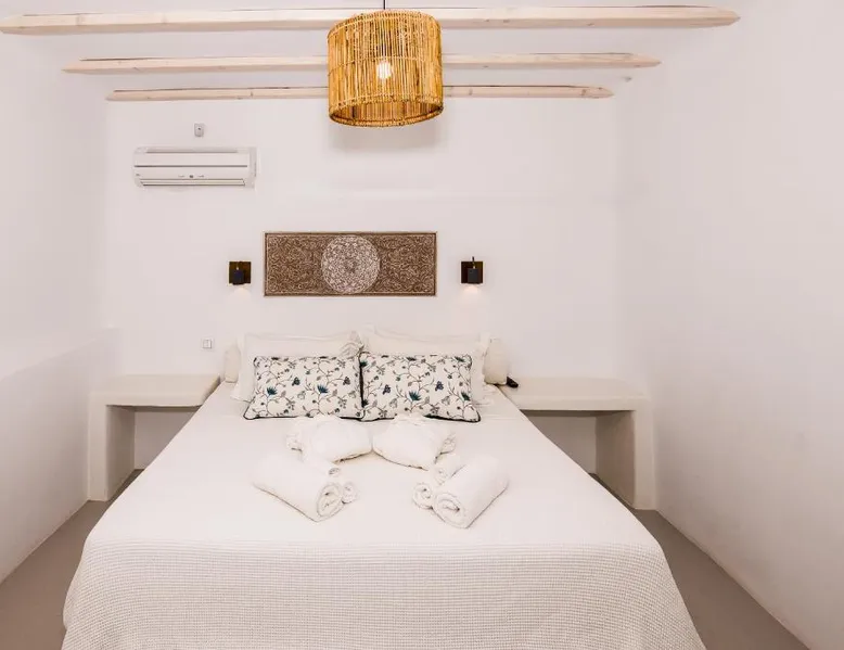Set just 656 feet from Paradise Beach, Eden View Suites & Villas features a two-building complex of self-catering units, each with a private, outdoor pool. Traditional, yet modern in style, each suite or maisonette at Eden View Suites & Villas opens to a spacious veranda with sea views. A 24-hour bus stop is 984 feet from the premises and can take you straight to the city center. The cosmopolitan Mykonos City is 3.7 mi away. Mykonos Airport is 3.1 mi from the property. Offering a private, outdoor terrace of 160 m2, this modernly decorated accommodations has a swimming pool and views of the sea. Kindly note that the double bed can be reversed into two single beds, upon request. Please note that this room type is located in building 10, on the top of the hill.