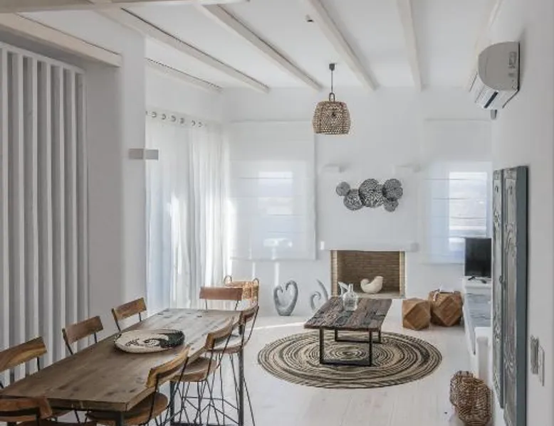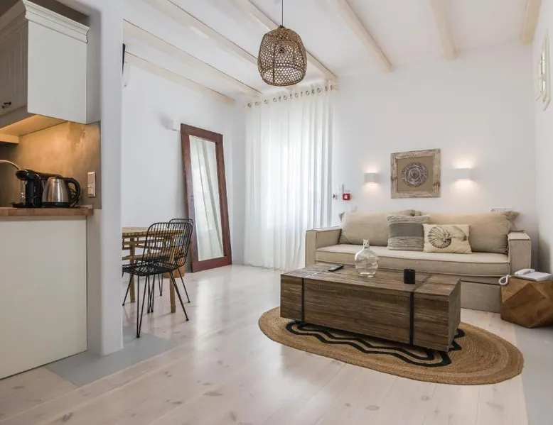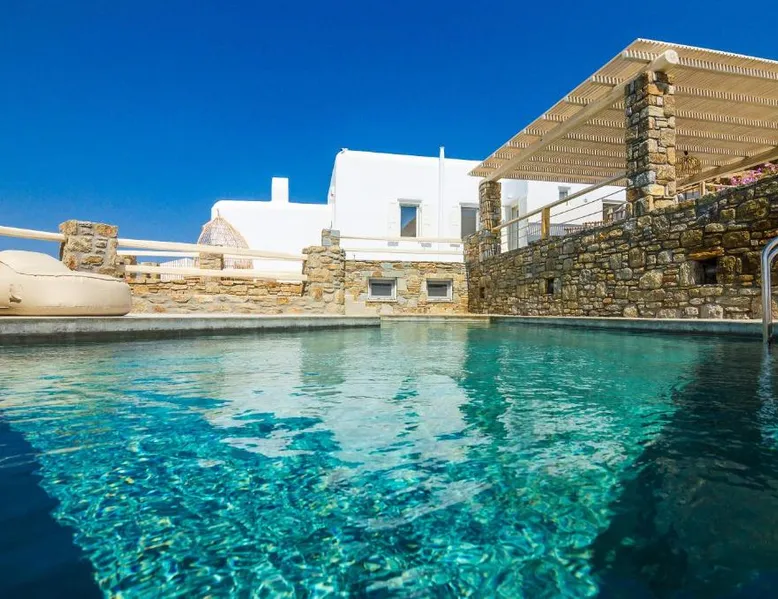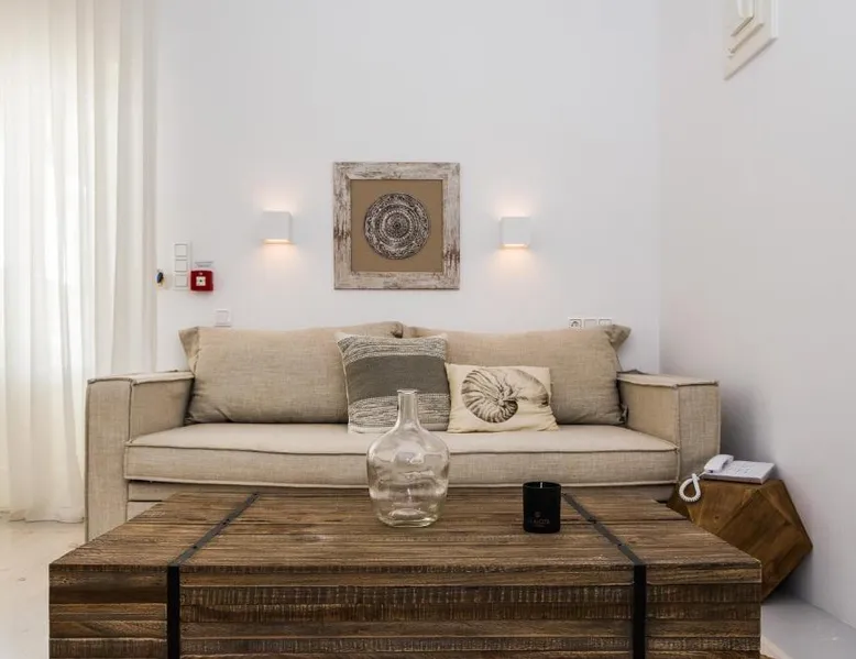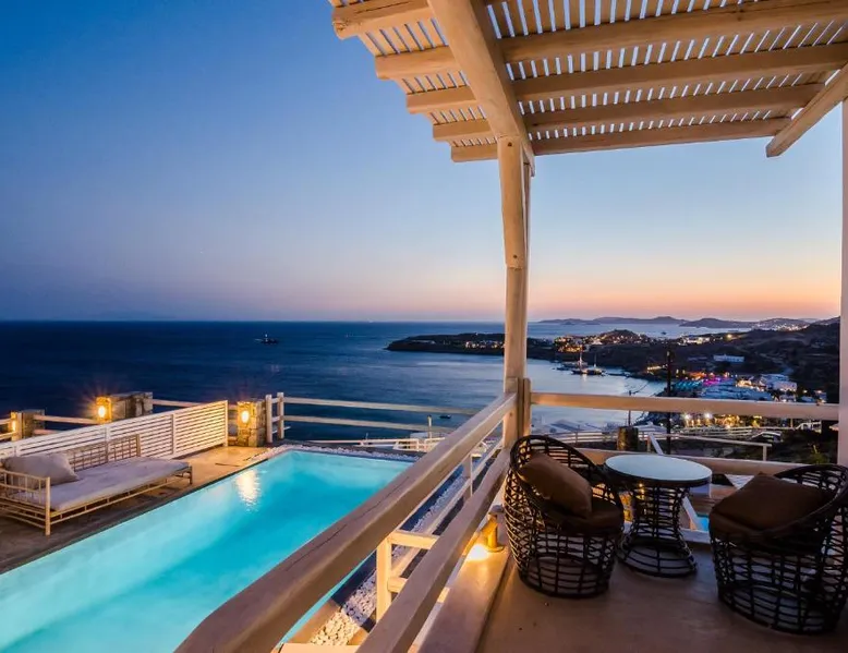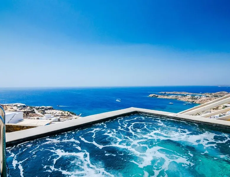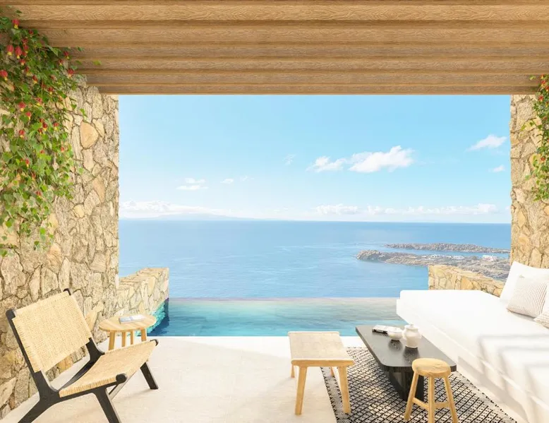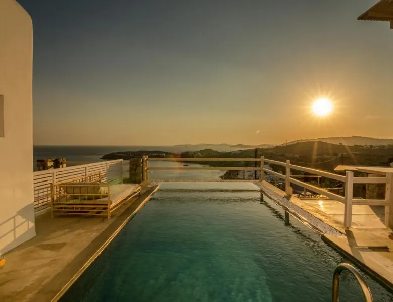 Set just 656 feet from Paradise Beach, Eden View Suites & Villas features a two-building complex of self-catering units, each with a private, outdoor pool. Traditional, yet modern in style, each suite or maisonette at Eden View Suites & Villas opens to a spacious veranda with sea views. A 24-hour bus stop is 984 feet from the premises and can take you straight to the city center. The cosmopolitan Mykonos City is 3.7 mi away. Mykonos Airport is 3.1 mi from the property. Offering a private, outdoor terrace of 160 m2, this modernly decorated accommodations has a swimming pool and views of the sea. Kindly note that the double bed can be reversed into two single beds, upon request. Please note that this room type is located in building 10, on the top of the hill.