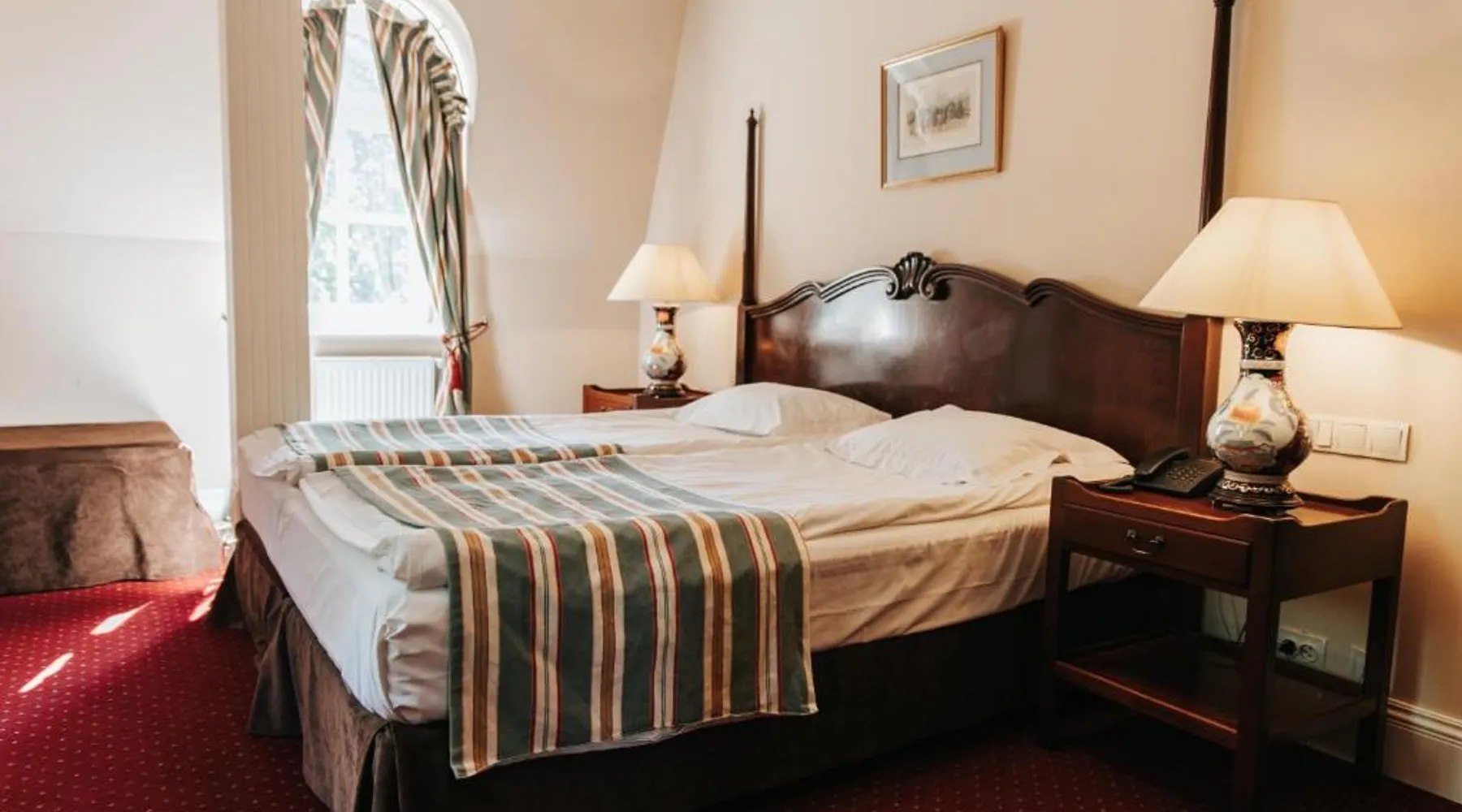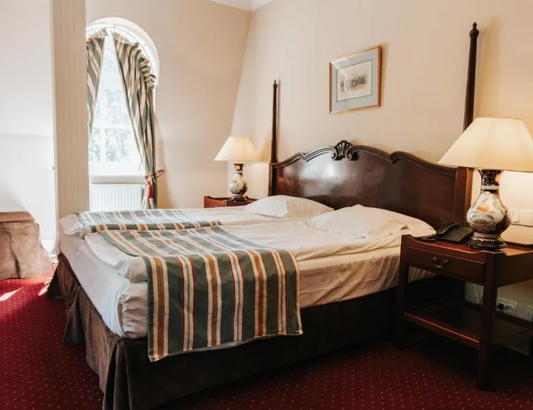 Dwór Sieraków is a historic nobleman palace surrounded by a 4-hectare picturesque park. It offers stylish rooms with dark wooden furniture and free Wi-Fi. The restaurant serves modern Polish cuisine. Each bright room at Dwór Sieraków has a private bathroom with bath or shower, as well as a wonderful view of the garden. There is also a TV and a telephone. Guests are welcome to dine in the restaurant serving a wide variety of dishes, characteristic for European and Polish courts. Special diet menus and packed lunches are available. There is also a bar, and the wine cellar arranges wine tasting. Dwór Sieraków offers a shuttle service and free private parking. It is located 2.5 mi from the Lake Dobczyckie and 4.3 mi from the popular Wieliczka Salt Mine. The PKP Train Station is 6.2 mi away. Stylish suite with dark wooden furniture and a view of the park.