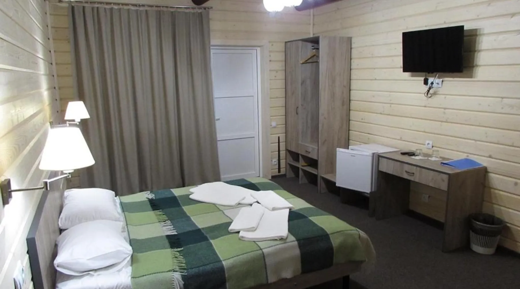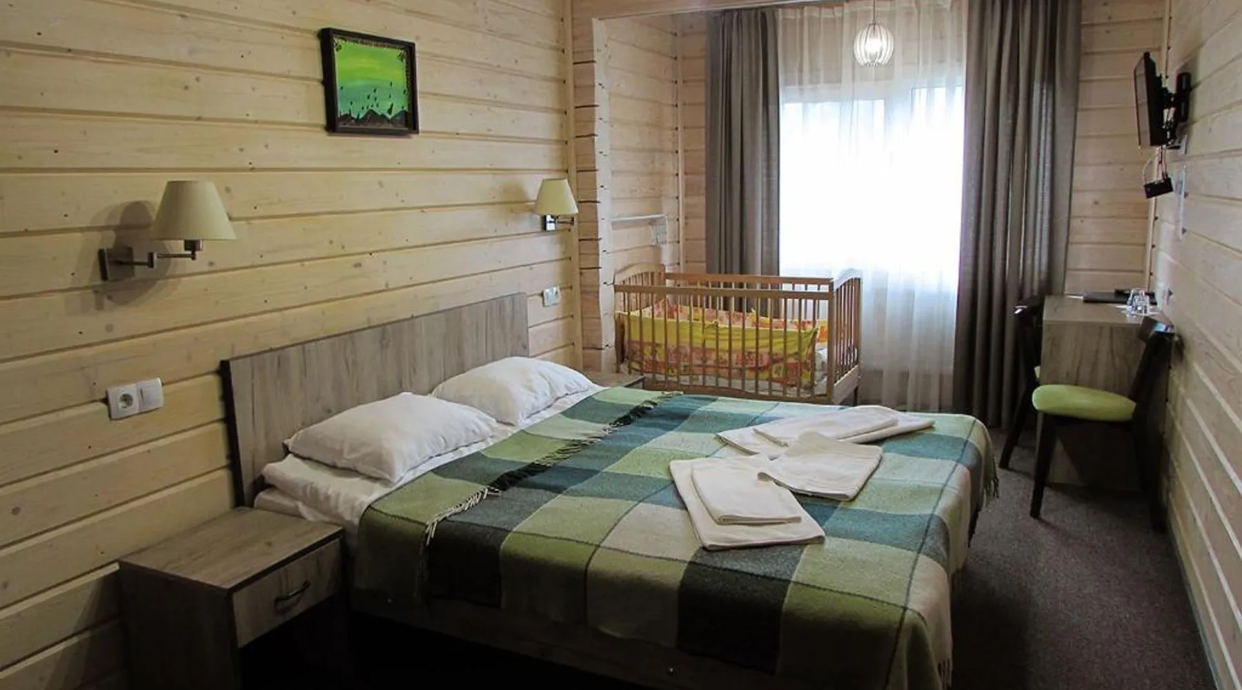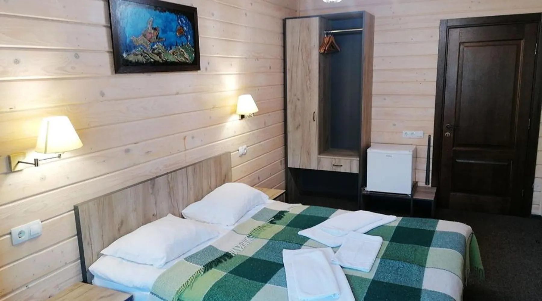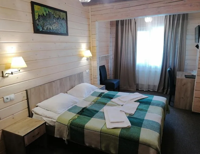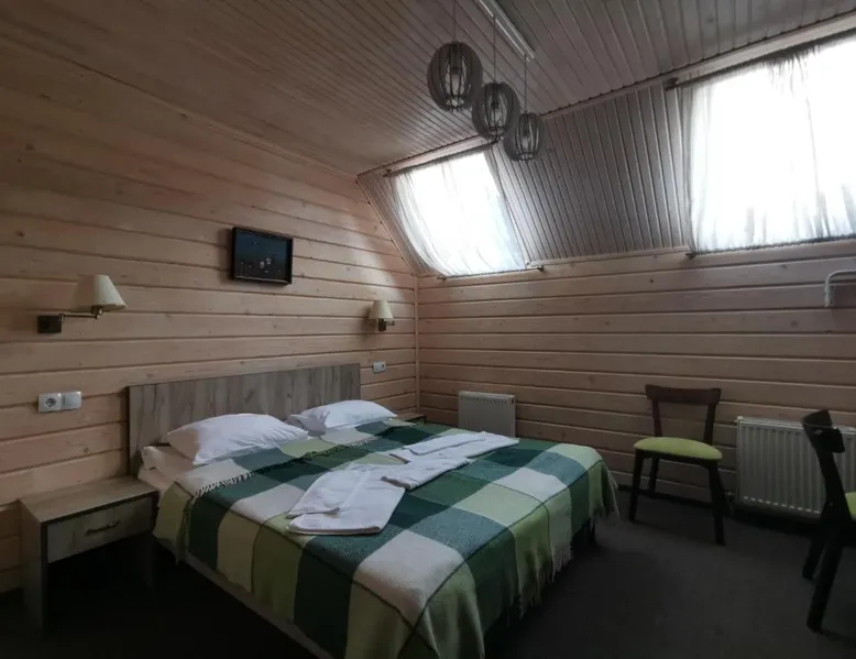 Comfortable Accommodations: Shale Na Berezi in Kvashi offers family rooms with mountain views. Each room includes a work desk, TV, and wardrobe. Guests enjoy free WiFi, a terrace, and free on-site private parking. Convenient Facilities: The hotel features a lounge, barbecue facilities, and a tour desk. Additional amenities include a shuttle service, full-day security, and room service. Dining Experience: An à la carte breakfast is available. The property offers a variety of dining options, including a bar. Guest Satisfaction: Highly rated for room cleanliness, convenient location, and room comfort. Film nights provide entertainment for guests. The quadruple room features a flat-screen TV with cable channels, a wardrobe, a safe deposit box, a carpeted floor as well as mountain views. The unit has 2 beds.