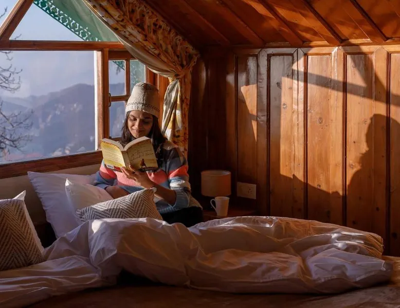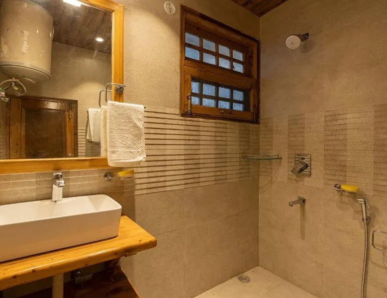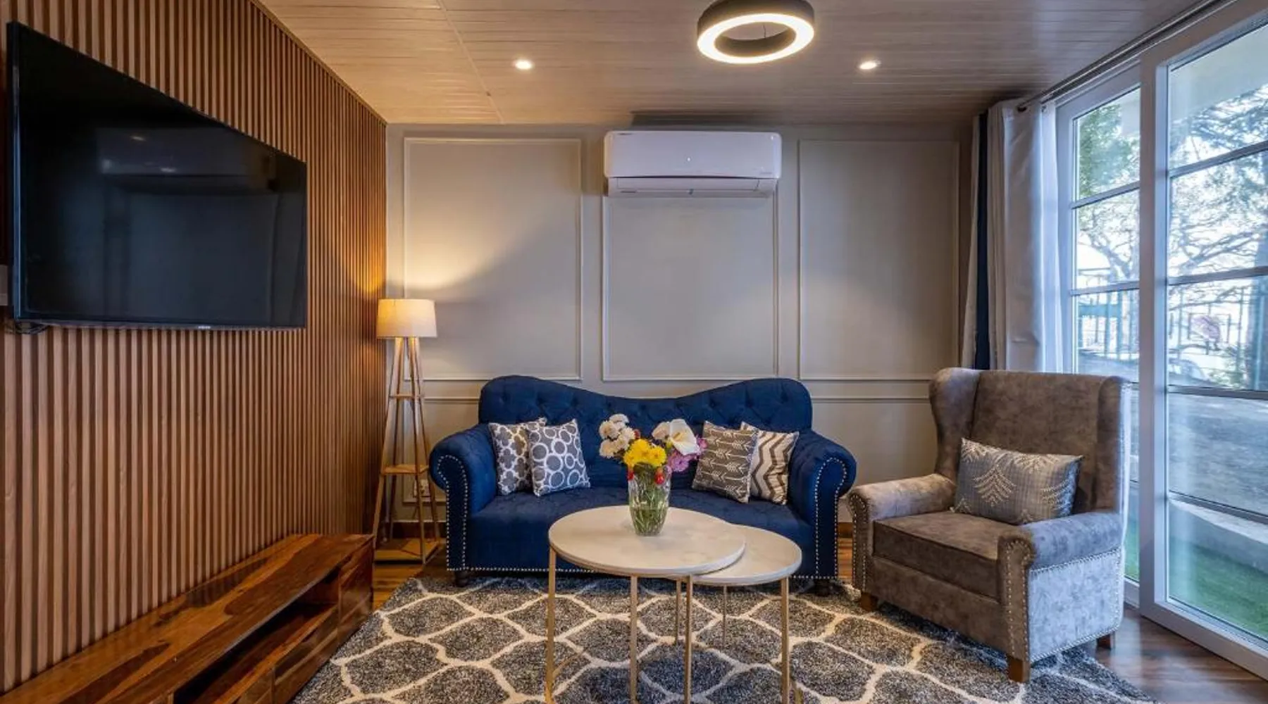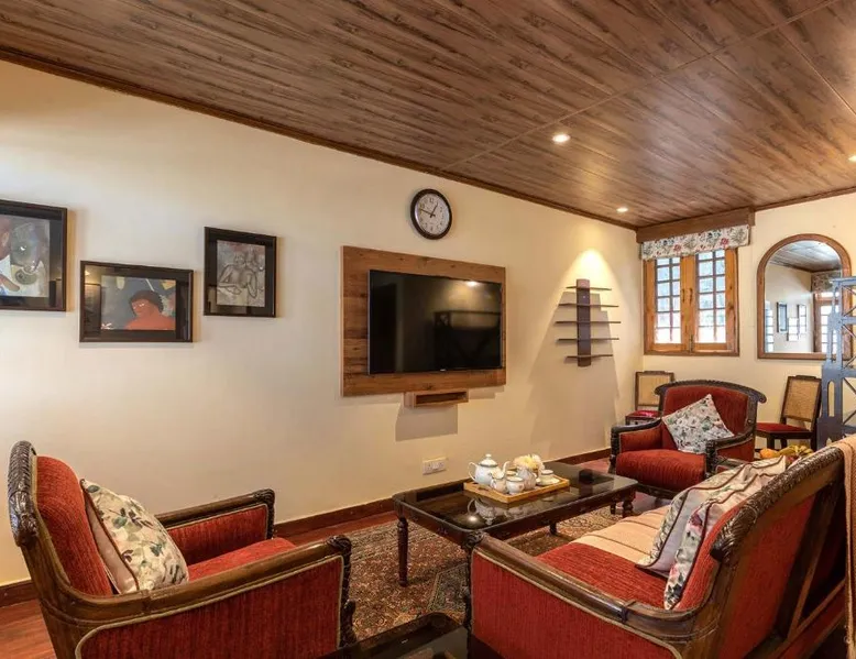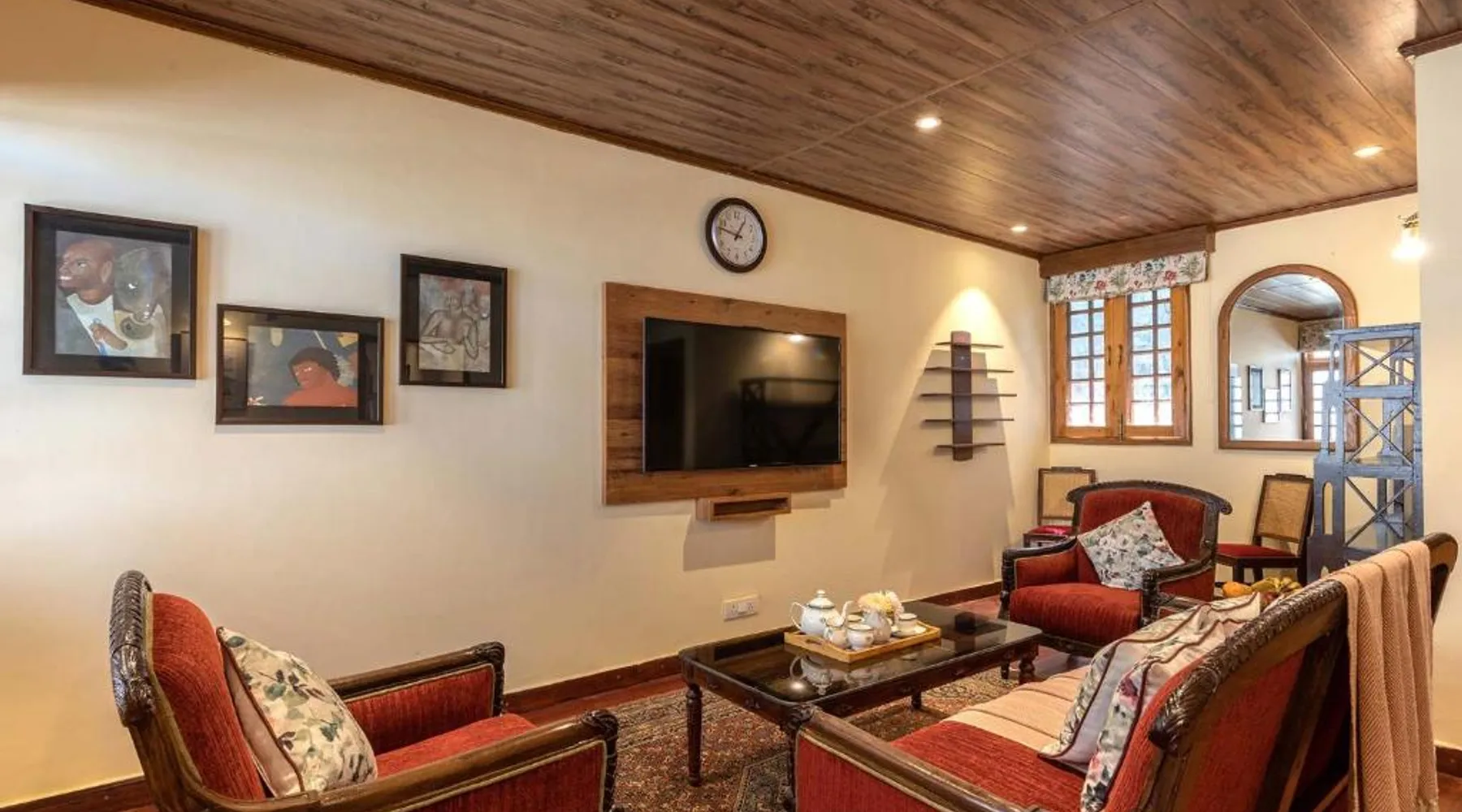 Comfortable Accommodations: Nau Nabh Cottage by VEO - Part of StayVista in Shimla offers a villa with free WiFi, air-conditioning, and a private bathroom. Guests enjoy garden and mountain views, a dining area, and a fully equipped kitchen with a refrigerator, microwave, oven, and TV. Outdoor Spaces: The property features an outdoor seating area with outdoor furniture, perfect for relaxation. Free on-site private parking is available for guests' convenience. Local Attractions: Located 18 mi from Simla Airport, the villa is close to Victory Tunnel (1.1 mi), The Ridge (4-minute walk), Circular Road (less than 0.6 mi), Jakhoo Gondola (8-minute walk), and Jakhu Temple (0.6 mi). Other attractions include Indian Institute of Advanced Study (4.3 mi) and Tara Devi Mandir (6.8 mi). Guest Satisfaction: Highly rated by guests, the villa ensures a pleasant stay with its excellent facilities and comfortable amenities. The villa features 2 bedrooms and 2 bathrooms with a shower and free toiletries. The air-conditioned villa provides a flat-screen TV, a tea and coffee maker, a seating area, a dining area as well as garden views. The unit offers 2 beds.