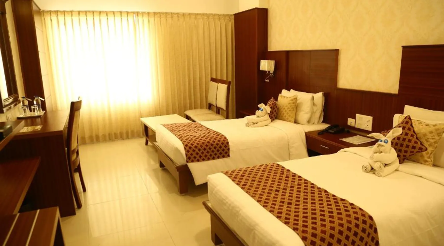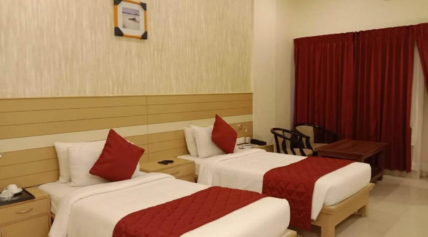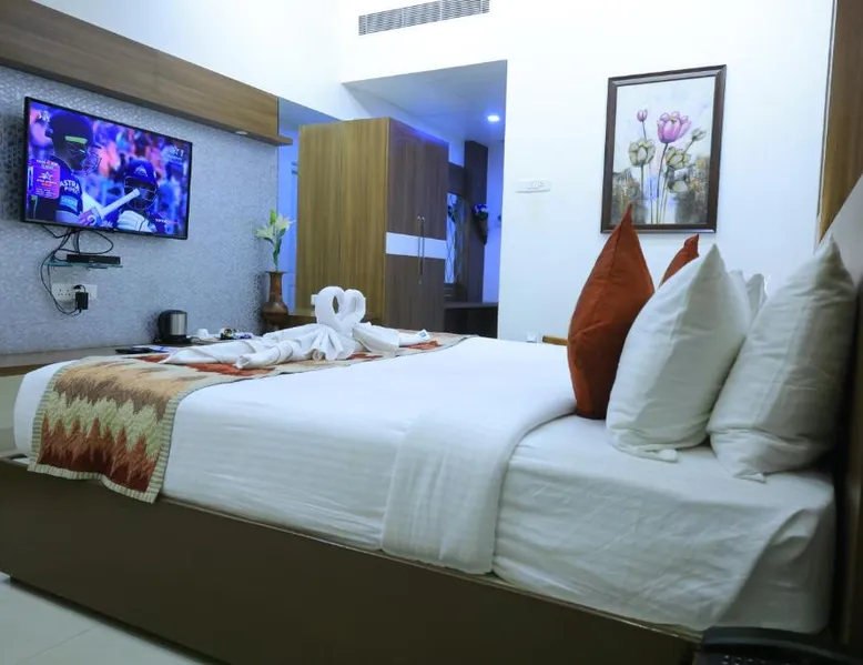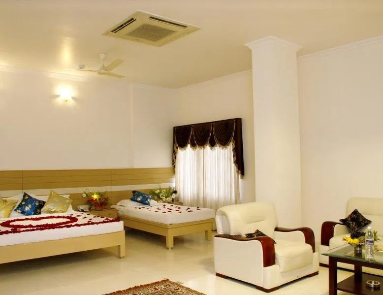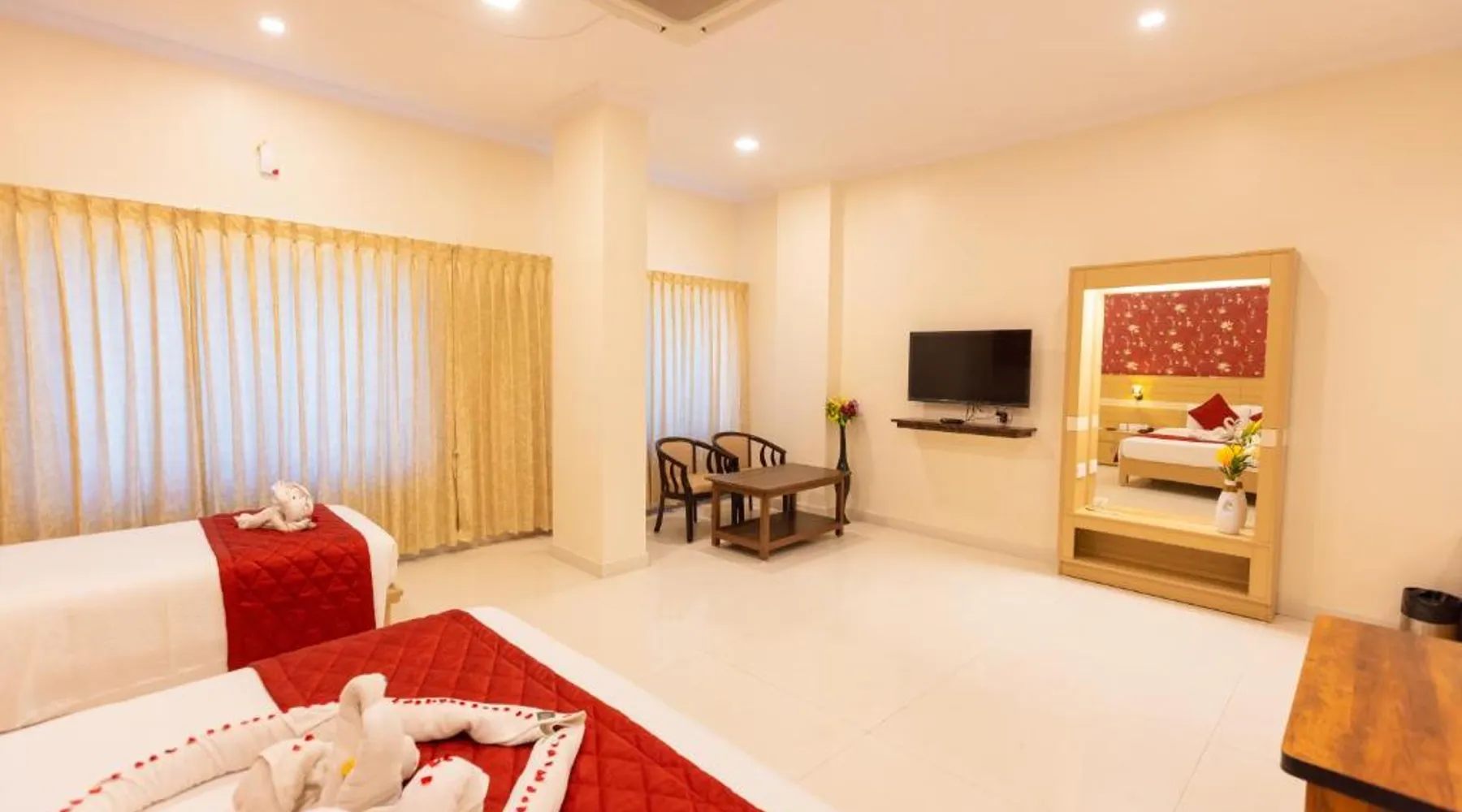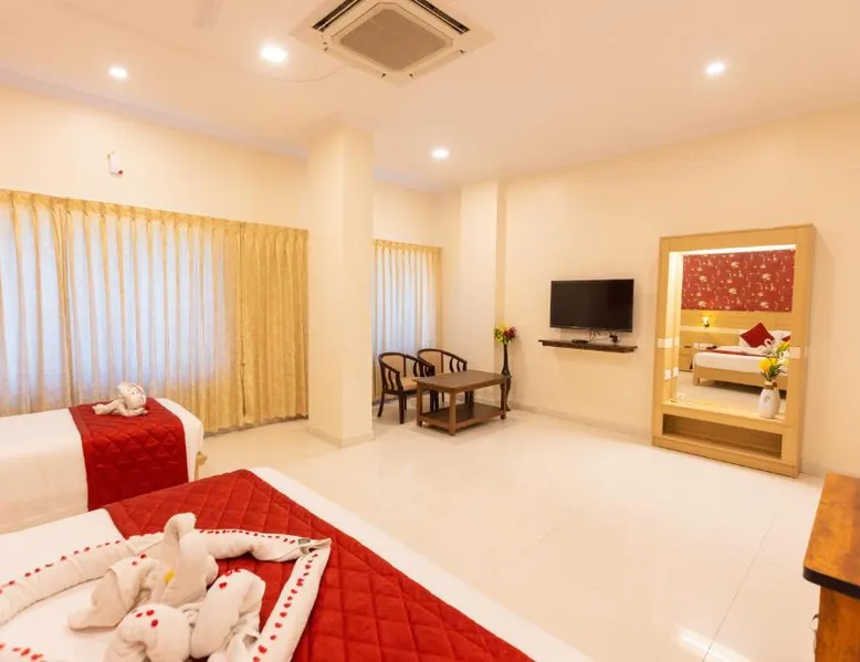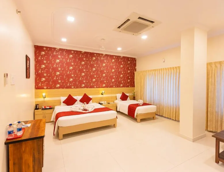 Comfortable Accommodations: Hotel DSF Grand Plaza in Tuticorin offers family rooms with air-conditioning, private bathrooms, and modern amenities. Each room includes a work desk, TV, and soundproofing for a pleasant stay. Dining and Leisure: Guests can enjoy a fitness center, restaurant, and bar. The family-friendly restaurant serves brunch, lunch, dinner, and high tea with a variety of cuisines, including Indian, Italian, and Chinese. Additional facilities include a hot tub, indoor and outdoor play areas, and a games room. Convenient Services: The hotel provides free on-site parking, a 24-hour front desk, concierge service, and a tour desk. Special diet menus are available, and the property offers room service, car hire, and a minimarket. Location and Access: Located 9.9 mi from Tuticorin Airport, the hotel offers easy access to local attractions. This triple room's standout features are the hot tub and fireplace. The spacious air-conditioned triple room features a flat-screen TV with satellite channels, soundproof walls, a tea and coffee maker, executive lounge access as well as city views. The unit has 2 beds.