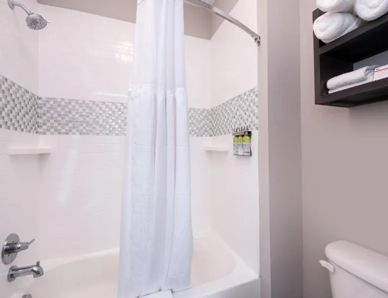 Comfortable Accommodations: Staybridge Suites - Lake Charles by IHG in Lake Charles offers family rooms with air-conditioning, kitchenettes, and private bathrooms. Each room includes a work desk, sofa bed, and free WiFi. Exceptional Facilities: Guests can enjoy a fitness center, seasonal outdoor swimming pool, and a lounge. Additional amenities include a minimarket, business area, and outdoor seating. Delicious Breakfast: A continental and American buffet breakfast is served daily, featuring warm dishes, fresh pastries, fruits, and juices. Prime Location: Located 4.3 mi from Lake Charles Regional Airport, the hotel is near attractions such as L'Auberge Casino (1.9 mi) and McNeese State University (2.5 mi). Highly rated for room cleanliness and family-friendly environment. The spacious suite has private bathroom fitted with a bath and a shower. The unit has 4 beds.