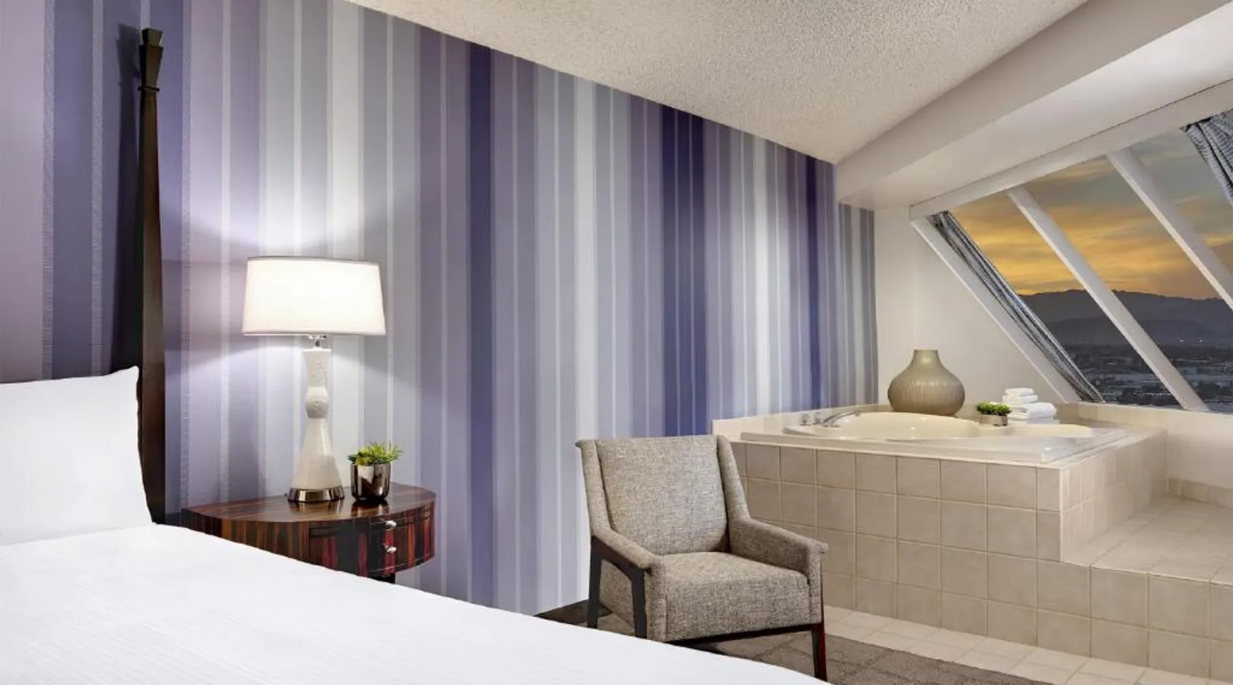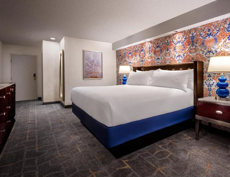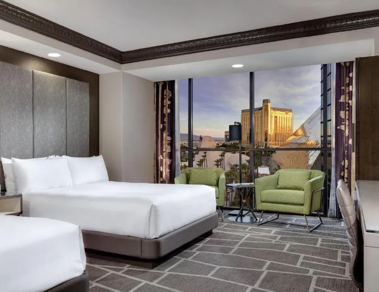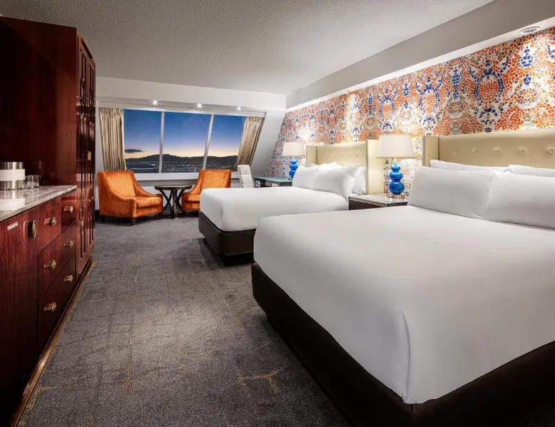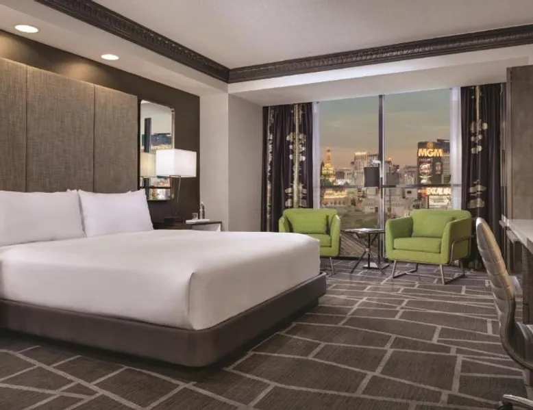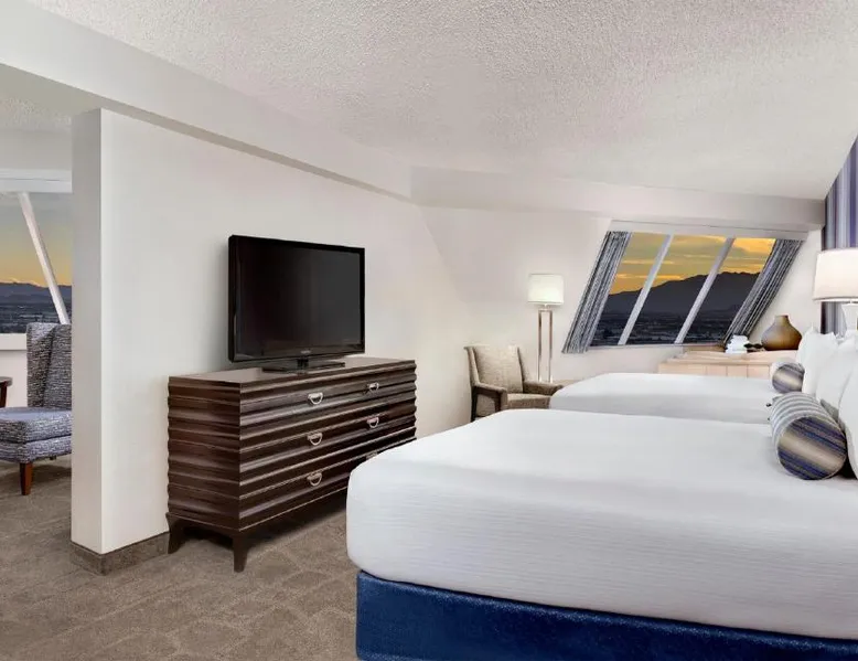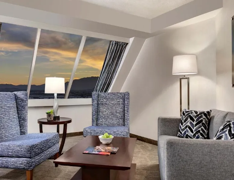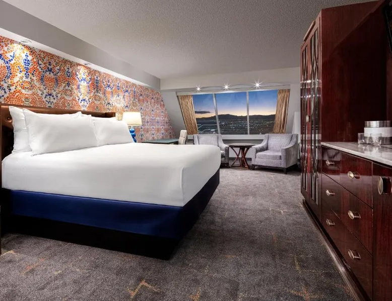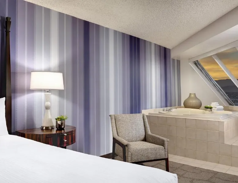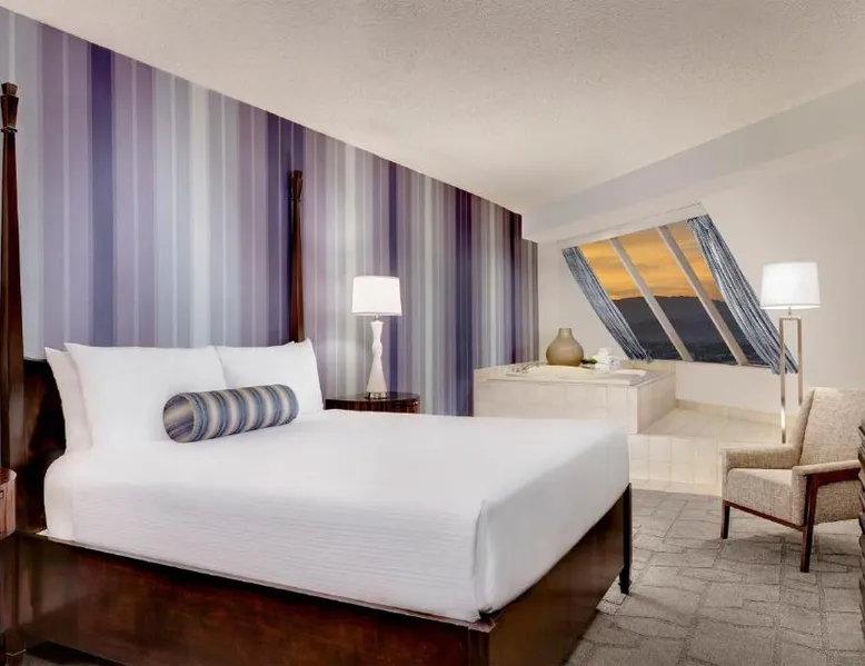 Known for its iconic pyramid shape, Luxor is located on the Las Vegas Strip and features a casino and live entertainment. It provides a full-service spa, 4 large seasonal pools and a hot tub. Tower Premier Rooms offer multiple charging and power outlets, a multi-purpose element that doubles as wardrobe, storage, work surface and media center and a bathroom with separate shower and bathtub. Nurture Spa and Salon offers an assortment of beauty treatments. A steam bath, dry sauna and hot tubs are available at the spa. Bolder and brighter dining options await at Luxor Las Vegas including a steakhouse, cafe and deli. Casino Luxor contains 120,000 square feet of slots and table games including poker. BetMGM Sportsbook at Luxor, a betting arena, with plasma TVs provide entertainment. Please note: Per Luxor policy, please ensure the original credit card used at the time of booking is presented during check-in. This spacious suite consists of 1 bedroom, a seating area and 1 bathroom with a walk-in shower and a bath. This suite is air-conditioned and features a flat-screen TV with satellite channels, a wardrobe, a safe deposit box and a tiled floor. The unit offers 1 bed.